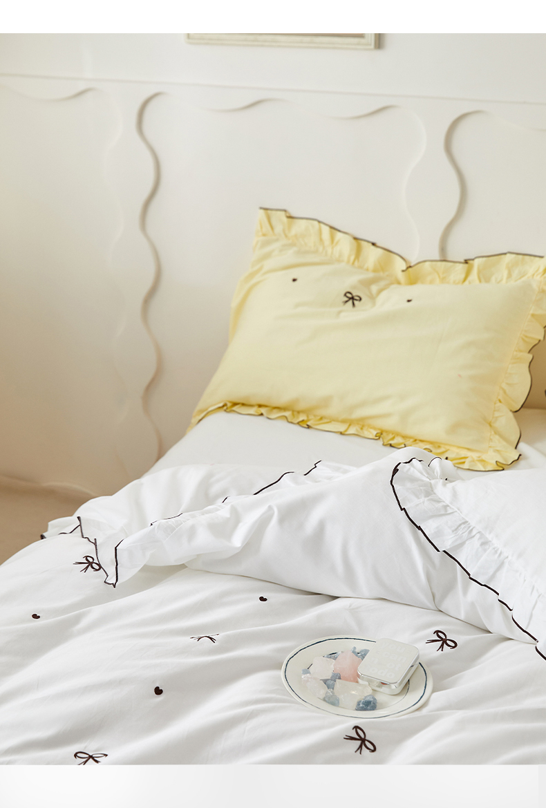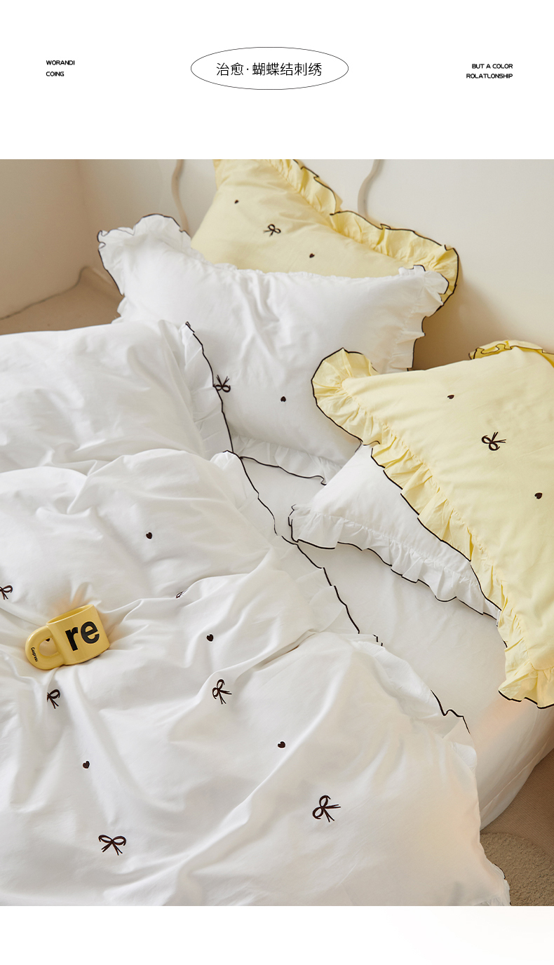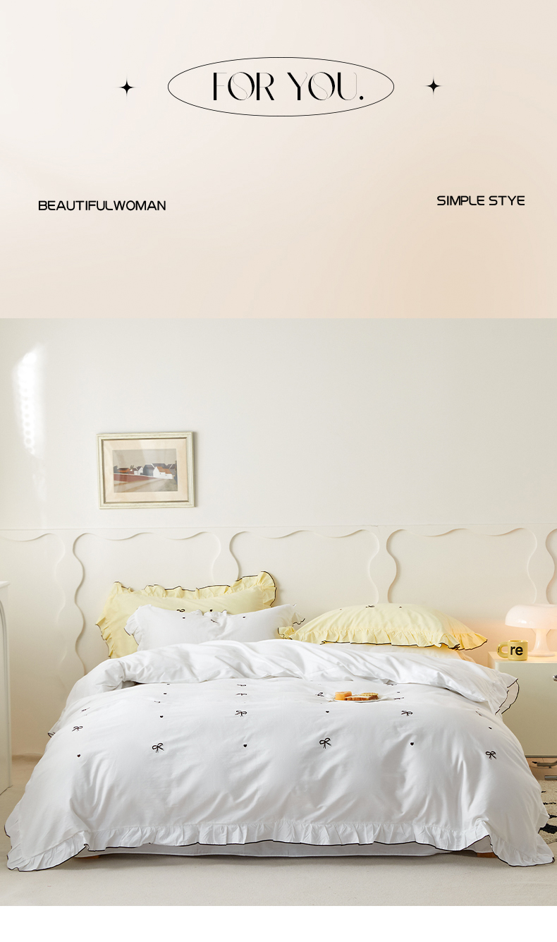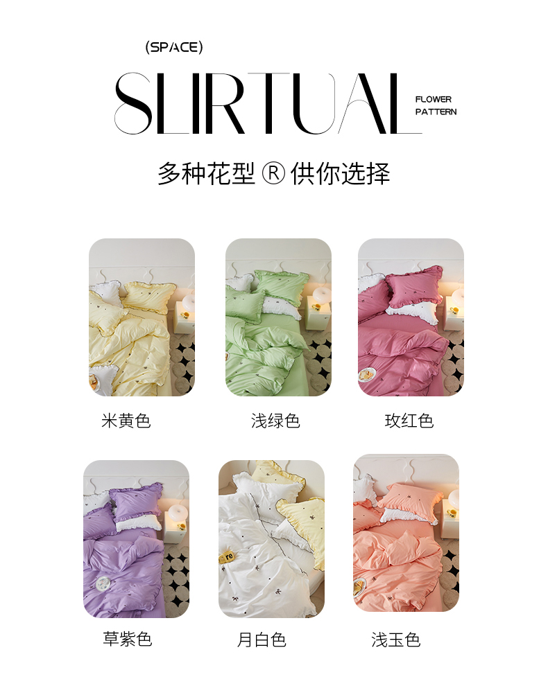 (总)梦可莱 2024新款亲肤刺绣荷叶边四件套-心灵迷恋,豆沙,奶油粉,奶油黄,牛油果绿,清新绿,香芋紫