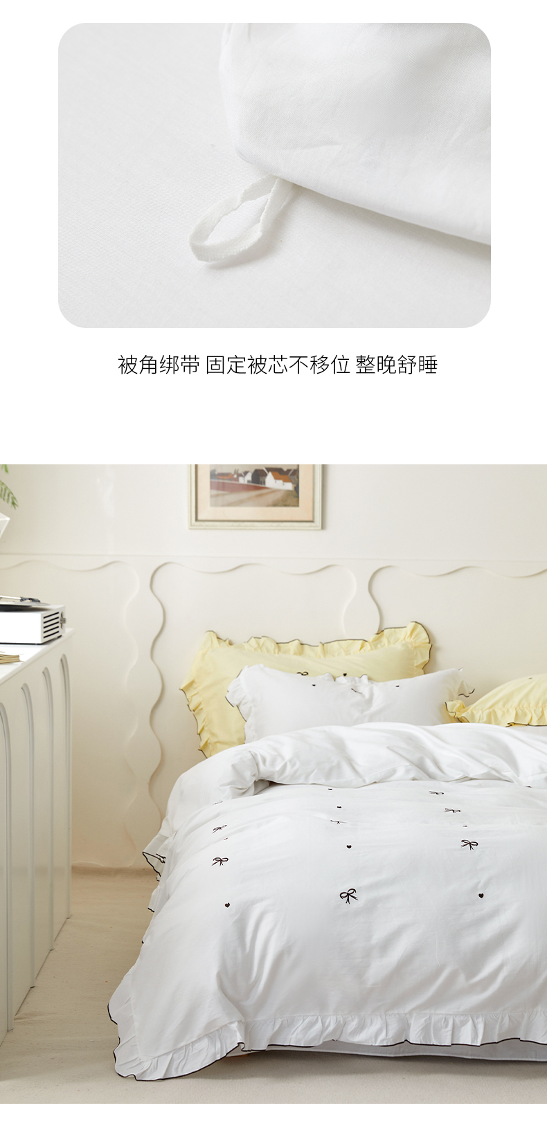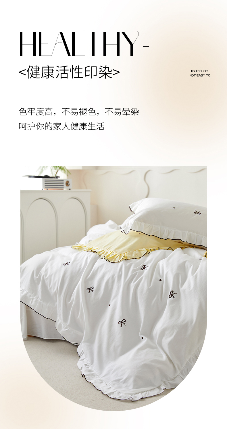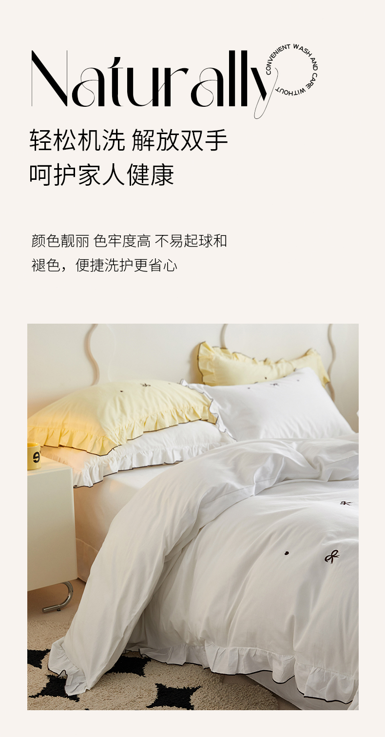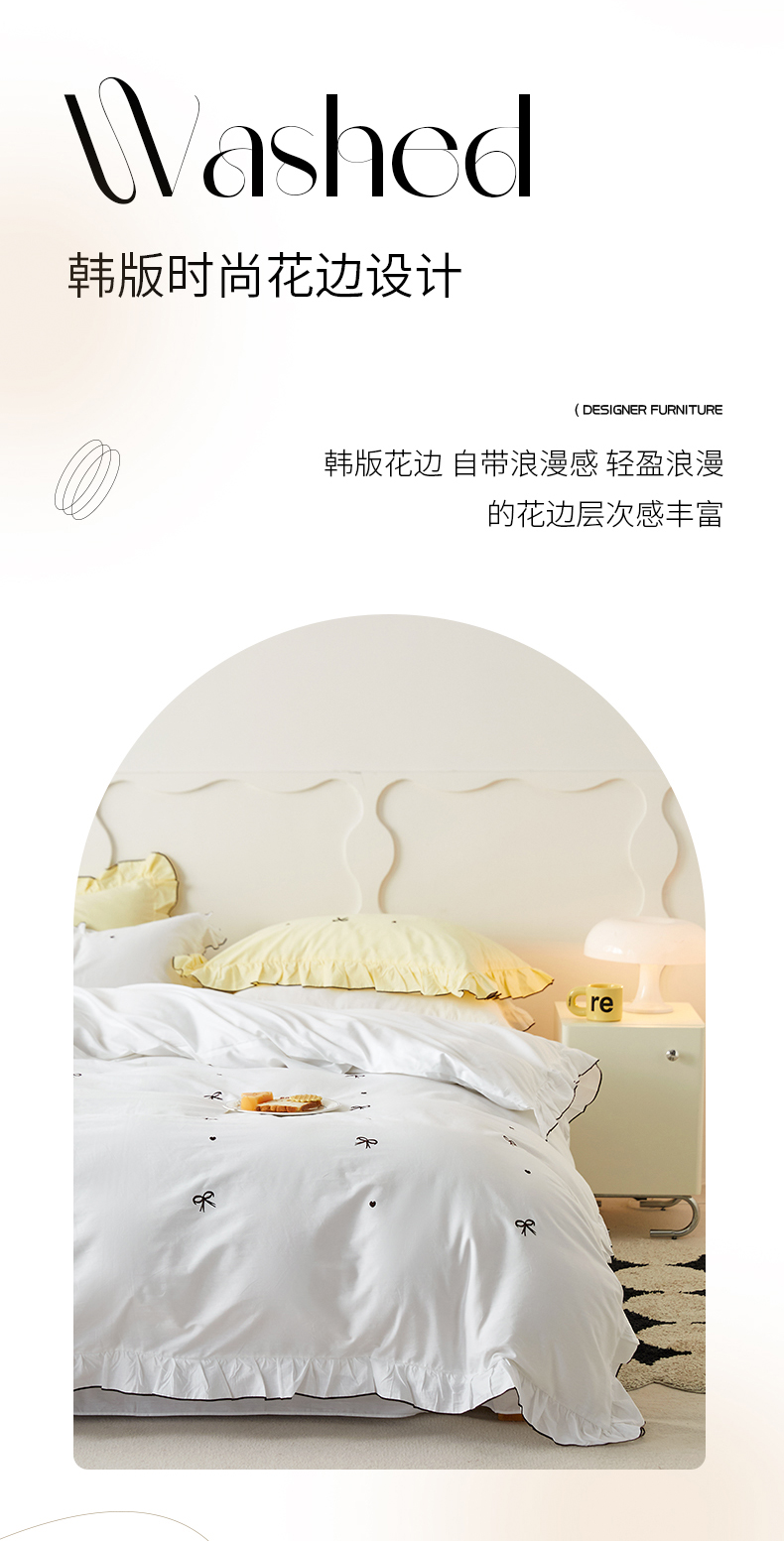 (总)梦可莱 2024新款亲肤刺绣荷叶边四件套-心灵迷恋,豆沙,奶油粉,奶油黄,牛油果绿,清新绿,香芋紫