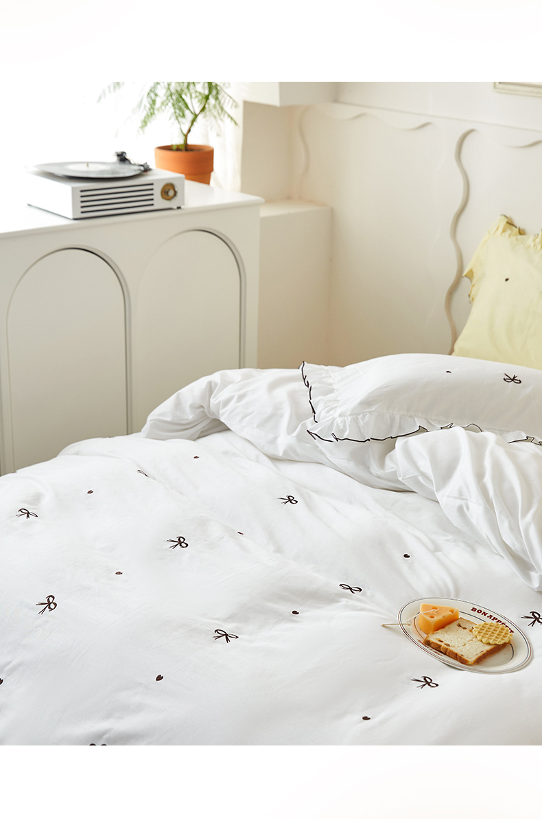 商品名称:梦可莱家居 2023新款韩版花边刺绣洛丽塔四件套 洛丽塔-月白色