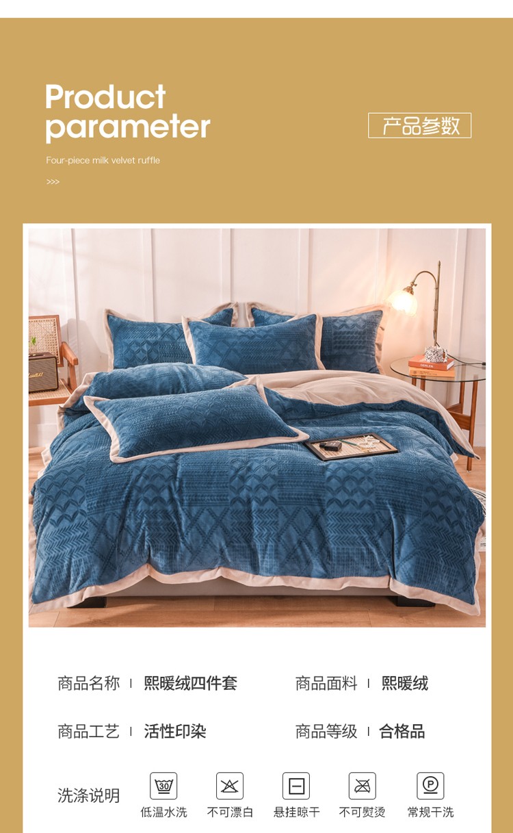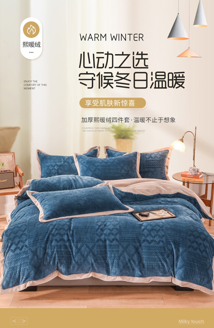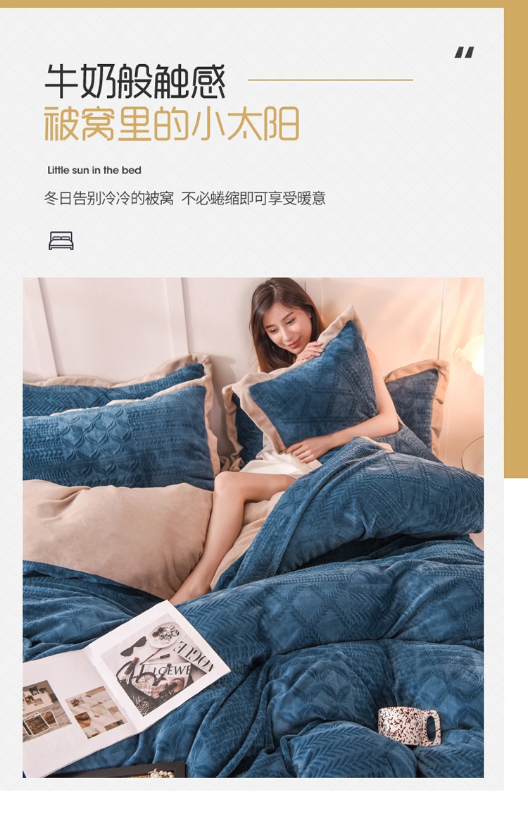 欧冠 2023秋冬新款唯爱雕花A版260克牛奶绒四件套-相机款 唯爱-宝蓝
