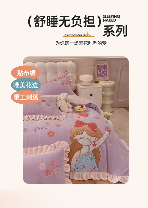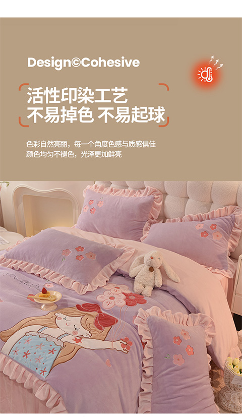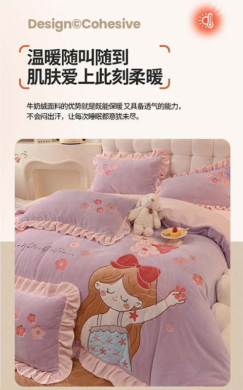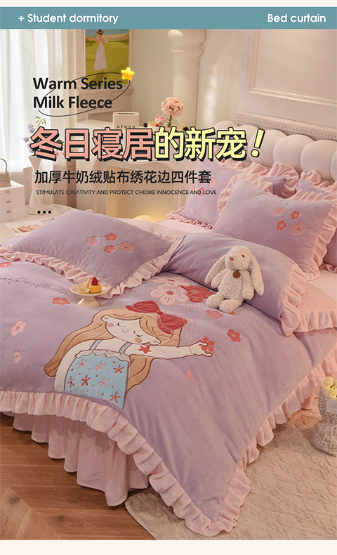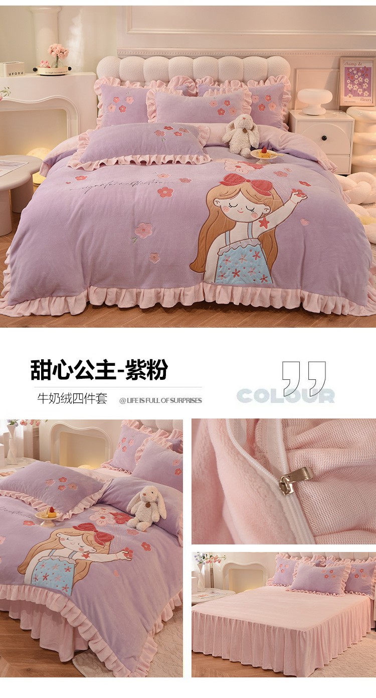 当前位置: 91家纺网 > 商品网购 > 床品套件 > 四件套 > 牛奶绒四件套 > 欧冠 2023新款高档贴布绣甜心公主牛奶绒四件套 甜心公主-粉紫