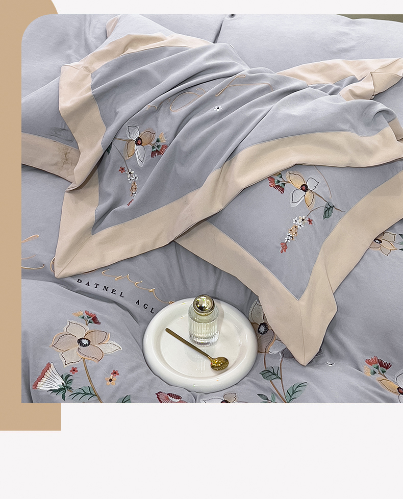 丝印良品 2023新款秋冬保暖云锦棉刺绣宽边盛夏光年系列四件套 盛夏光年-银灰