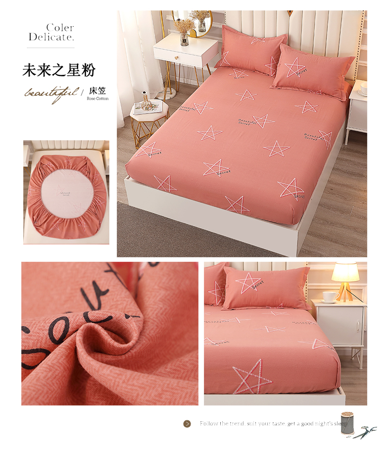 晶缦家纺 2023新款典雅系全棉活性磨毛多规格单品床笠 未来之星粉
