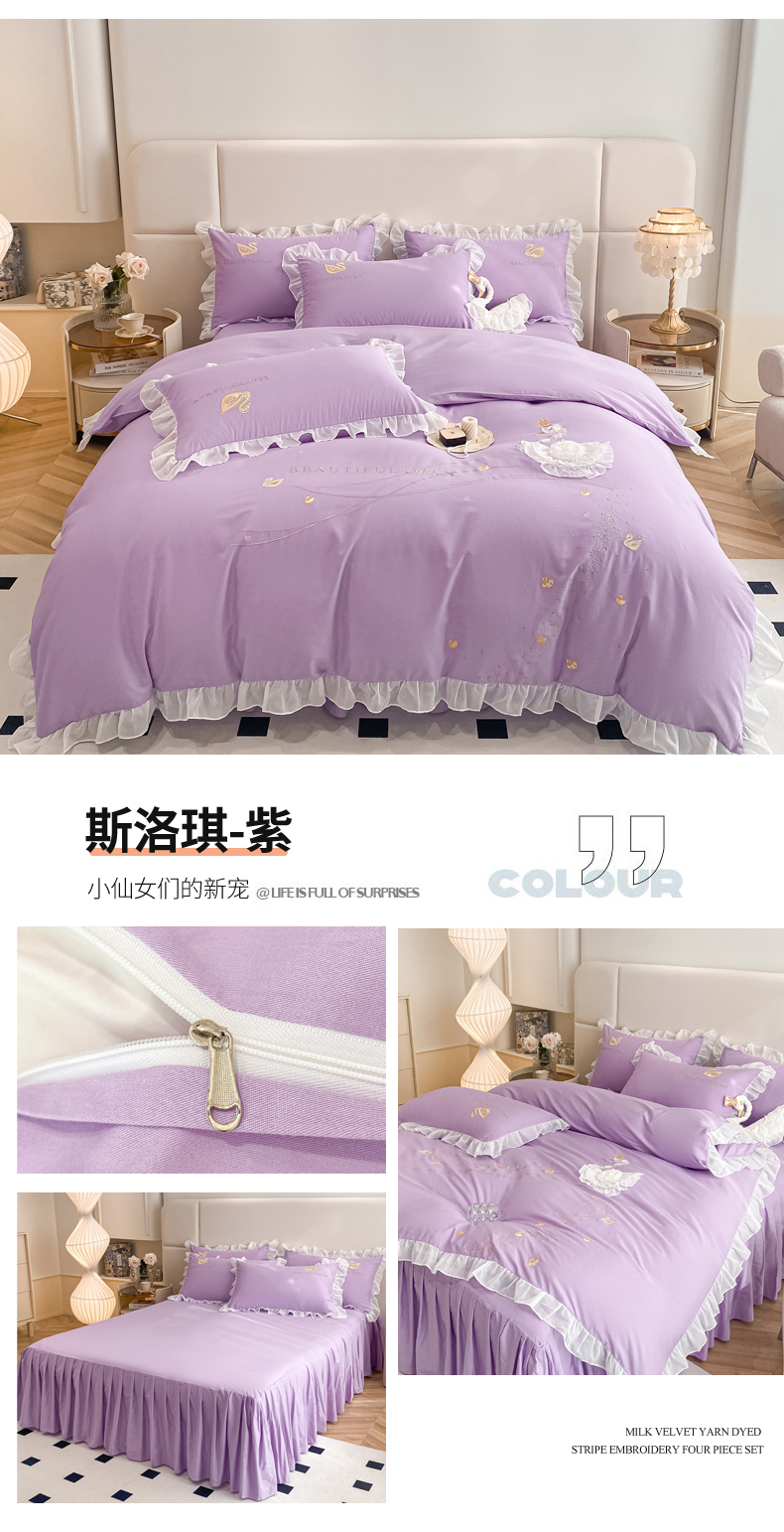 (总)丝印良品 2025新款加厚牛奶绒刺绣床裙款四件套,草莓-奶白粉,草莓-奶白,草莓-湖水蓝,草莓-落樱粉,草莓-薰衣紫