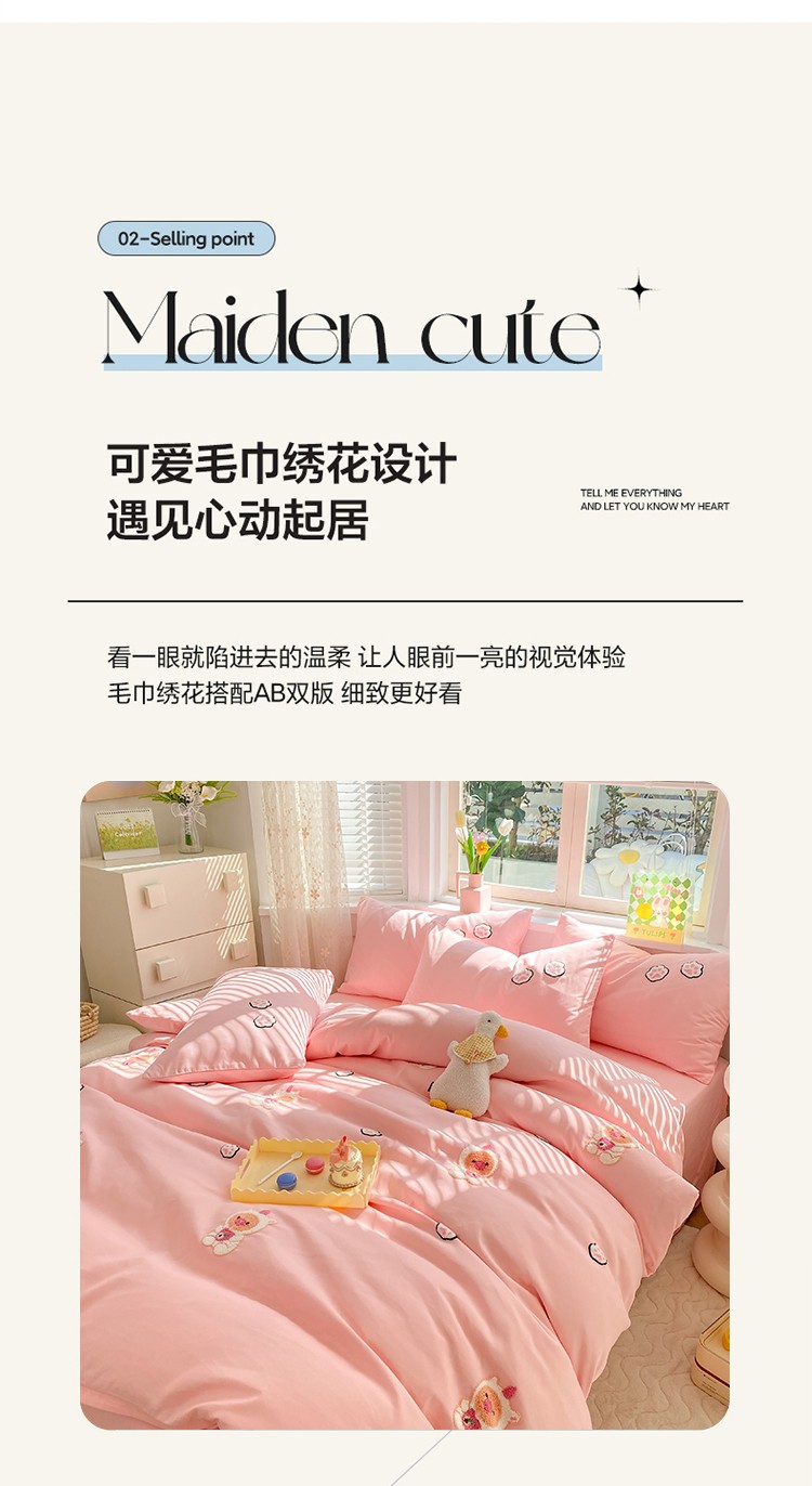 商品名称:欧冠 2023新款秋冬保暖专版水洗棉麻毛巾绣四件套 奶茶宝宝