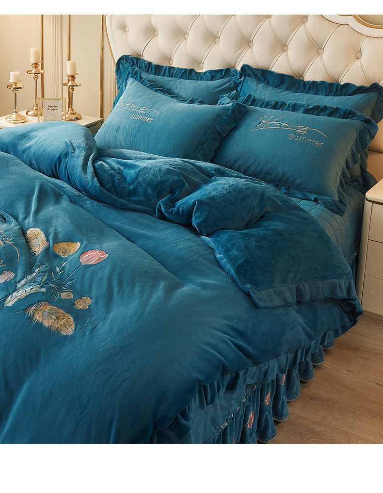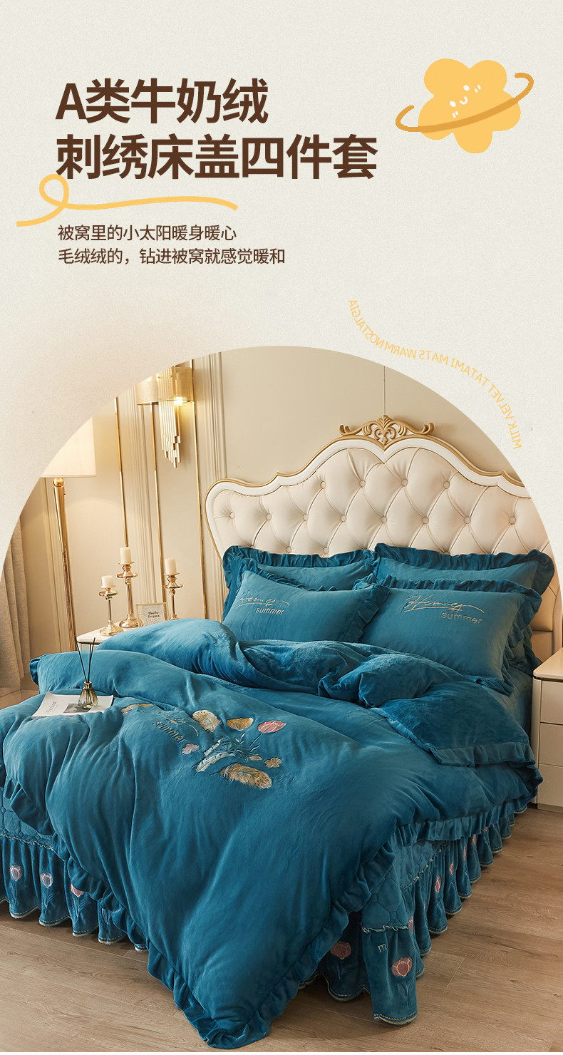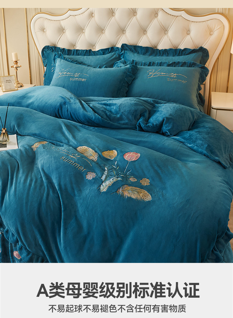 当前位置: 91家纺网 > 商品网购 > 床品套件 > 四件套 > 牛奶绒四件套 > 恒爱 2023新款A类牛奶绒羽毛床盖四件套 羽毛-橄榄绿