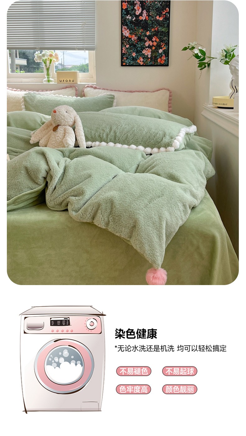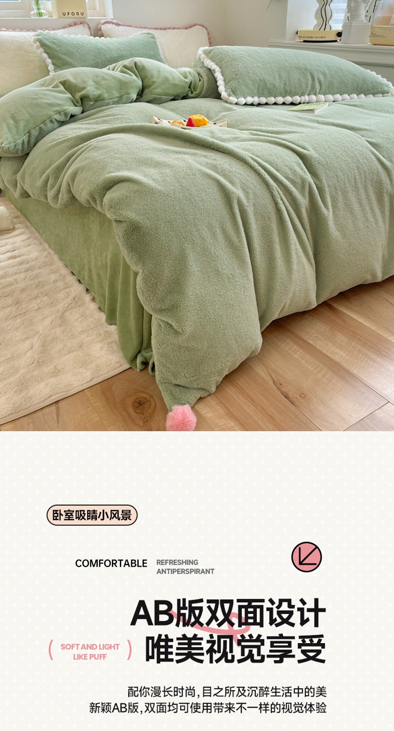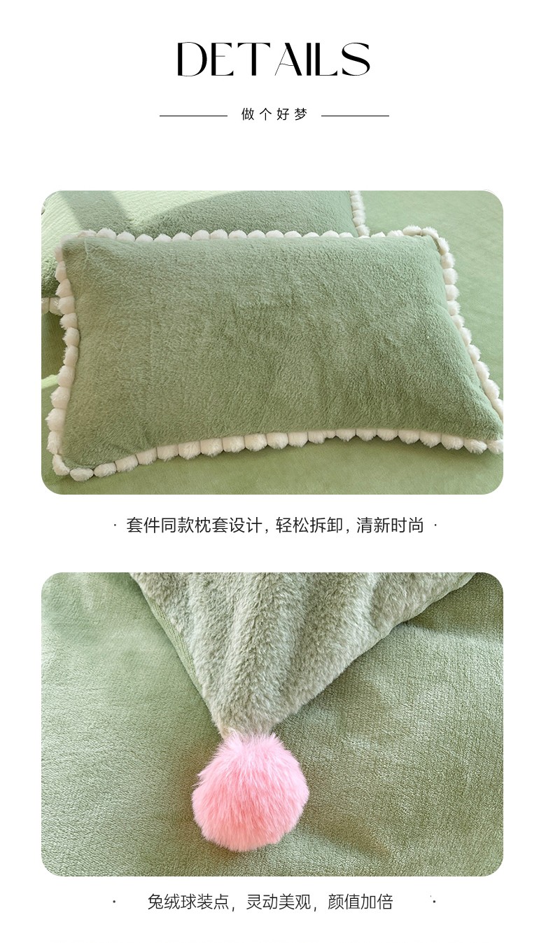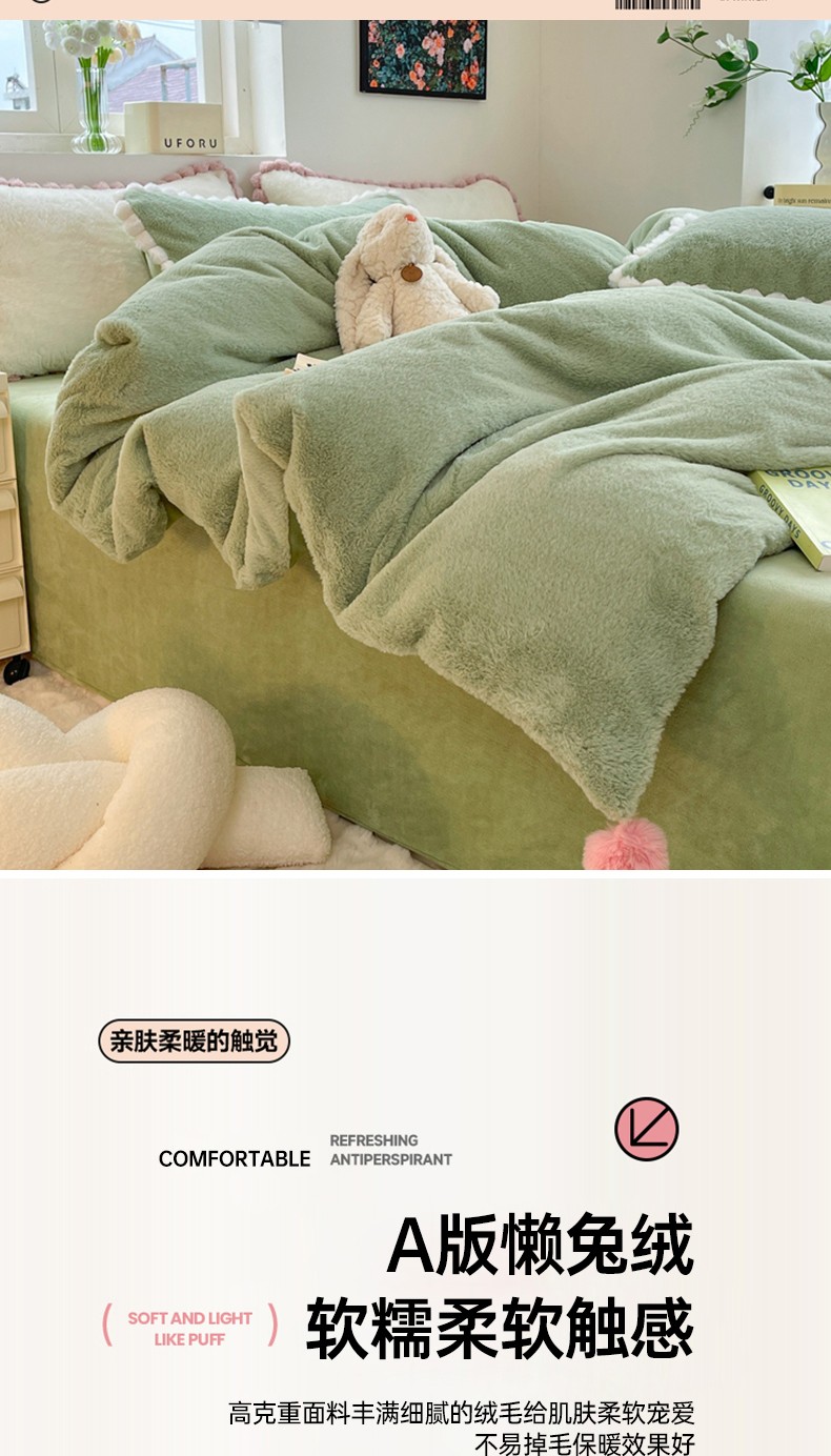 商品名称:艾米家居 2023新款秋冬懒兔绒四件套-球球款 果绿