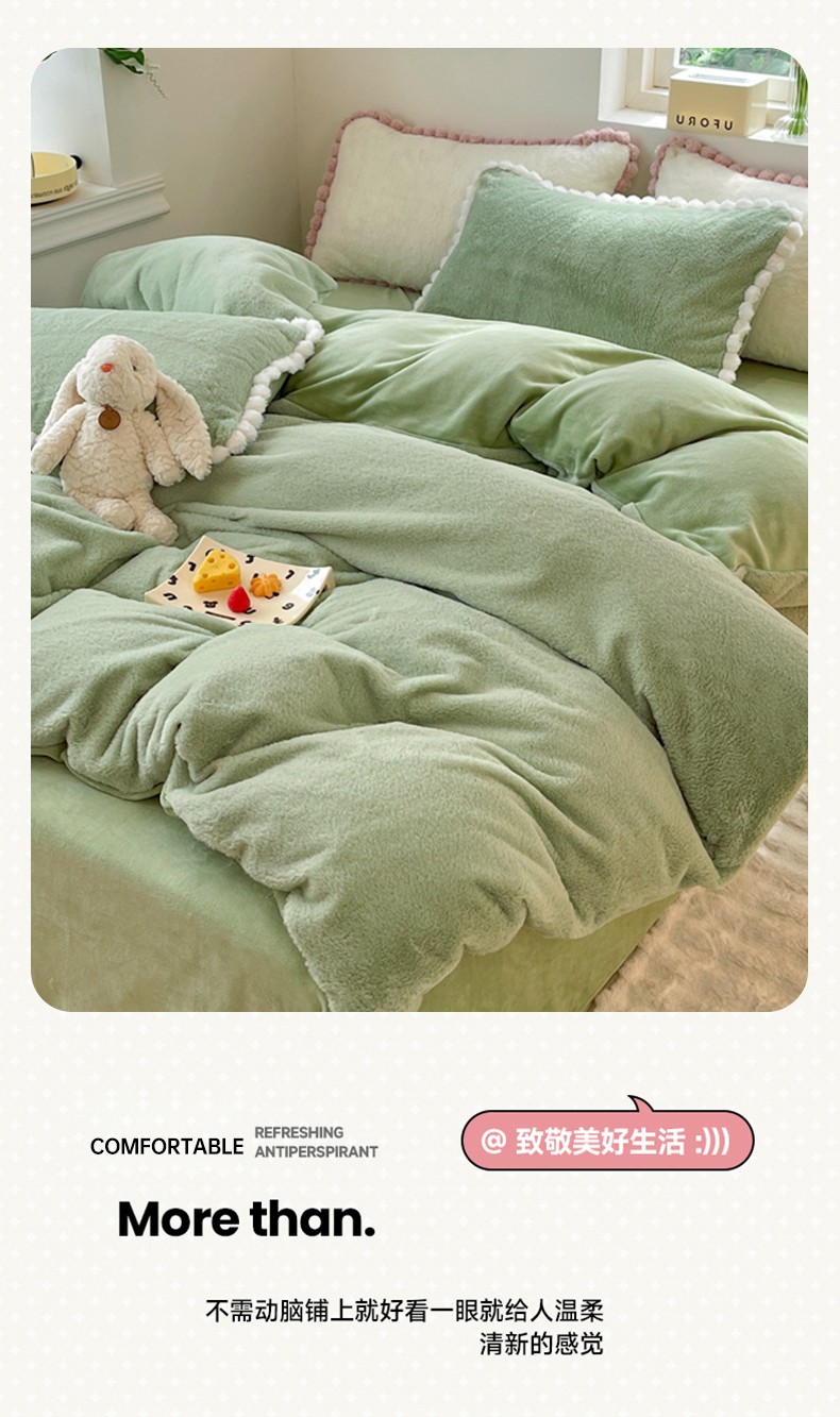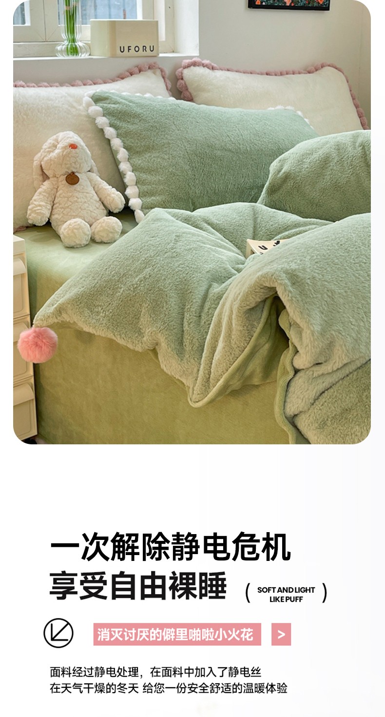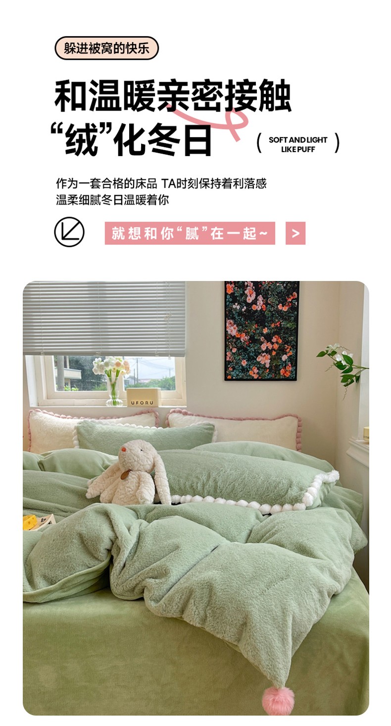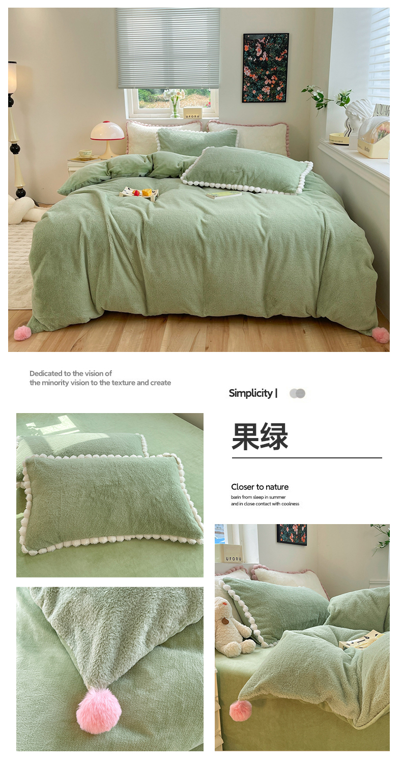 商品名称:艾米家居 2023新款秋冬懒兔绒四件套-球球款 果绿