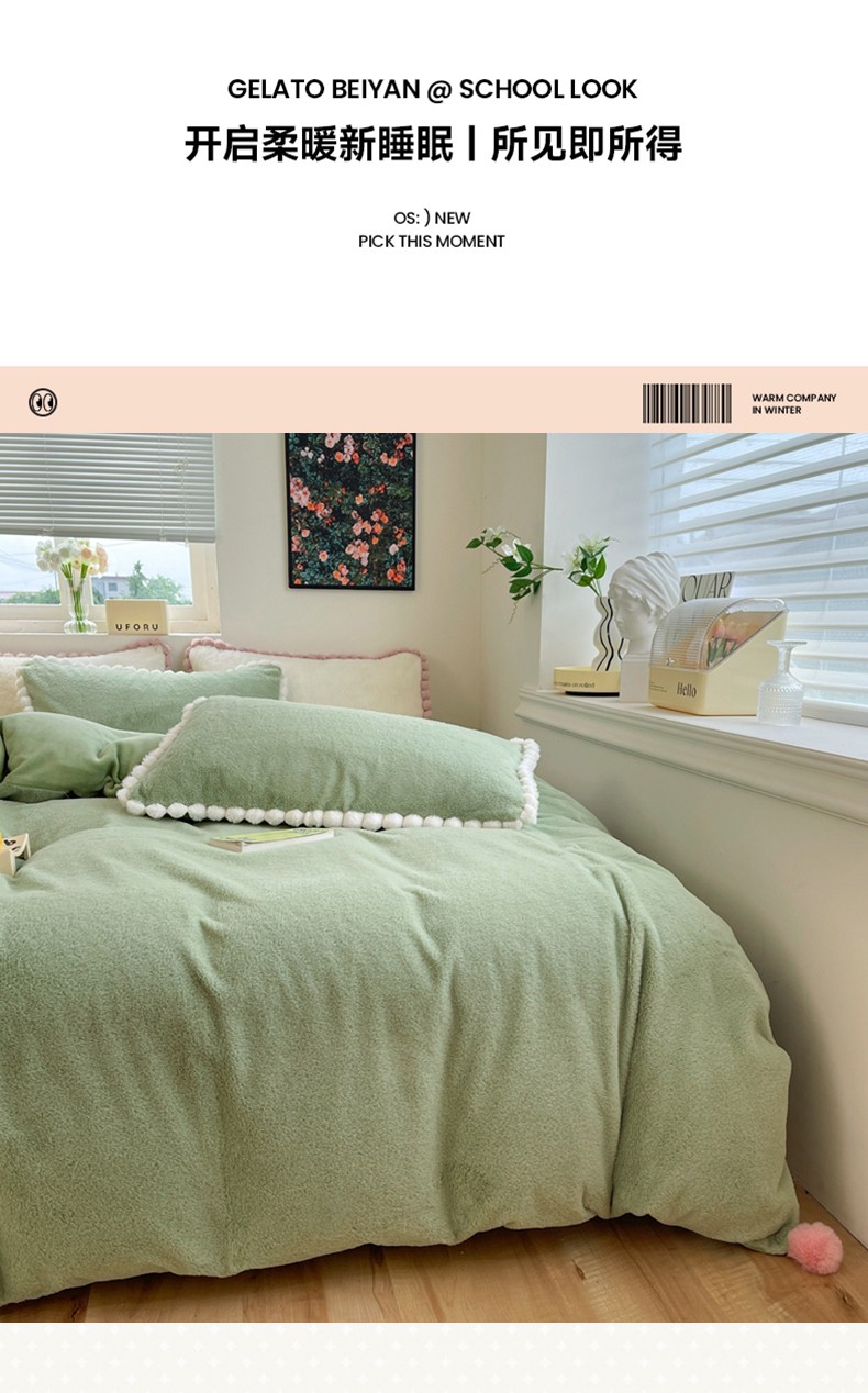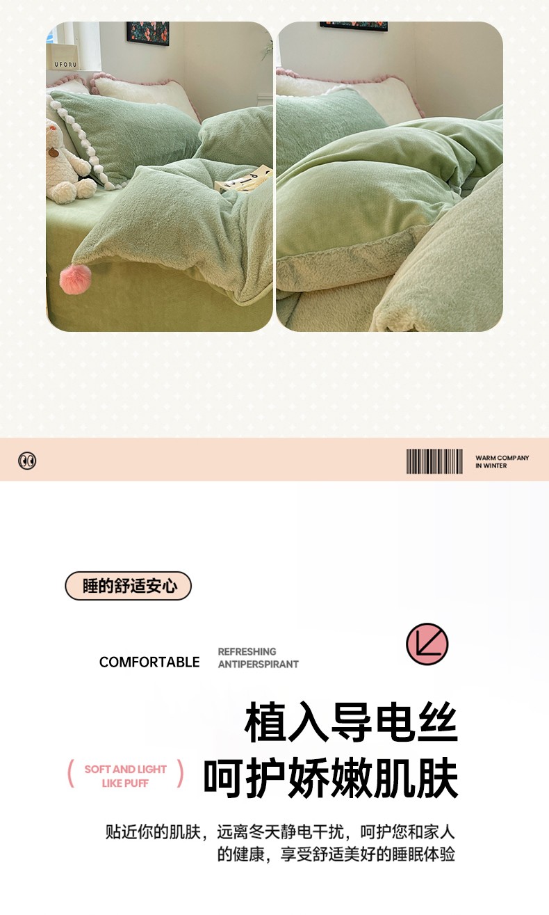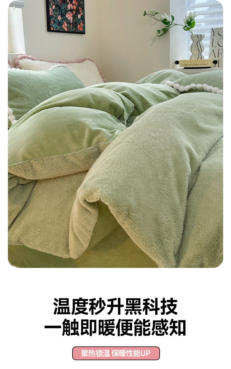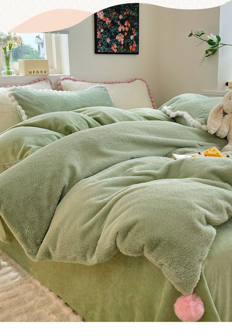 商品名称:艾米家居 2023新款秋冬懒兔绒四件套-球球款 果绿
