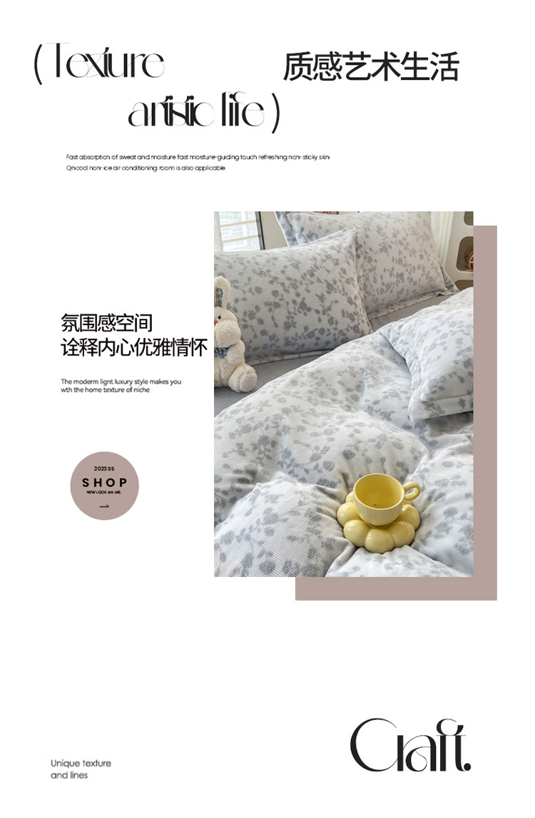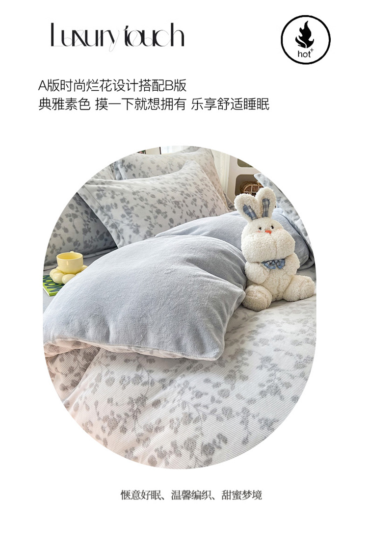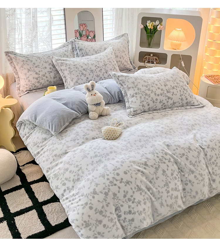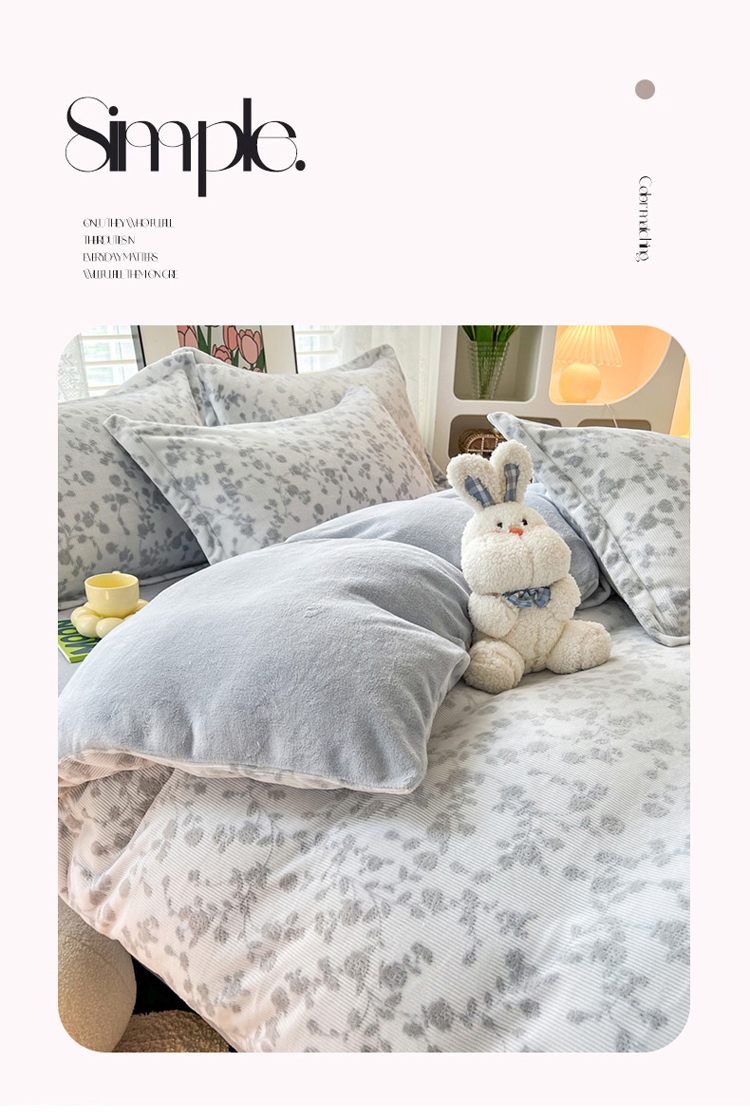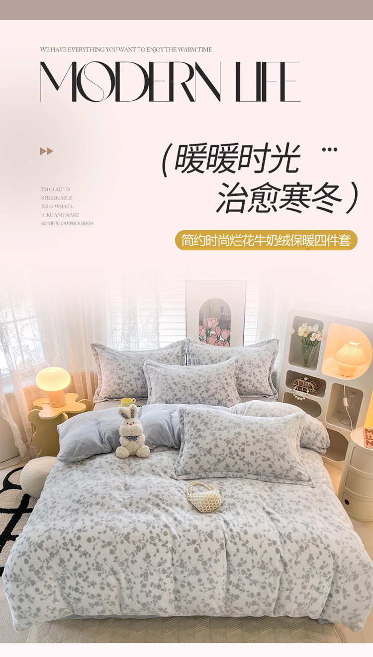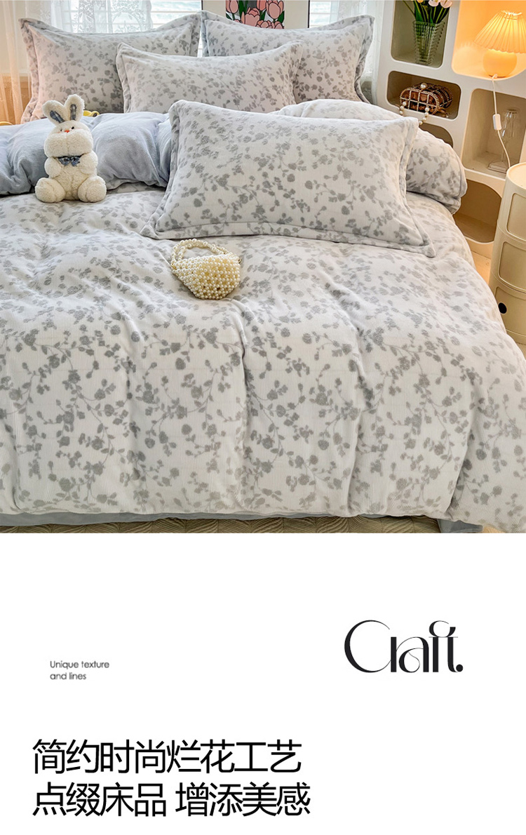 寐居家纺 2023新款高克重剪花印花牛奶绒四件套 悠若-蓝灰