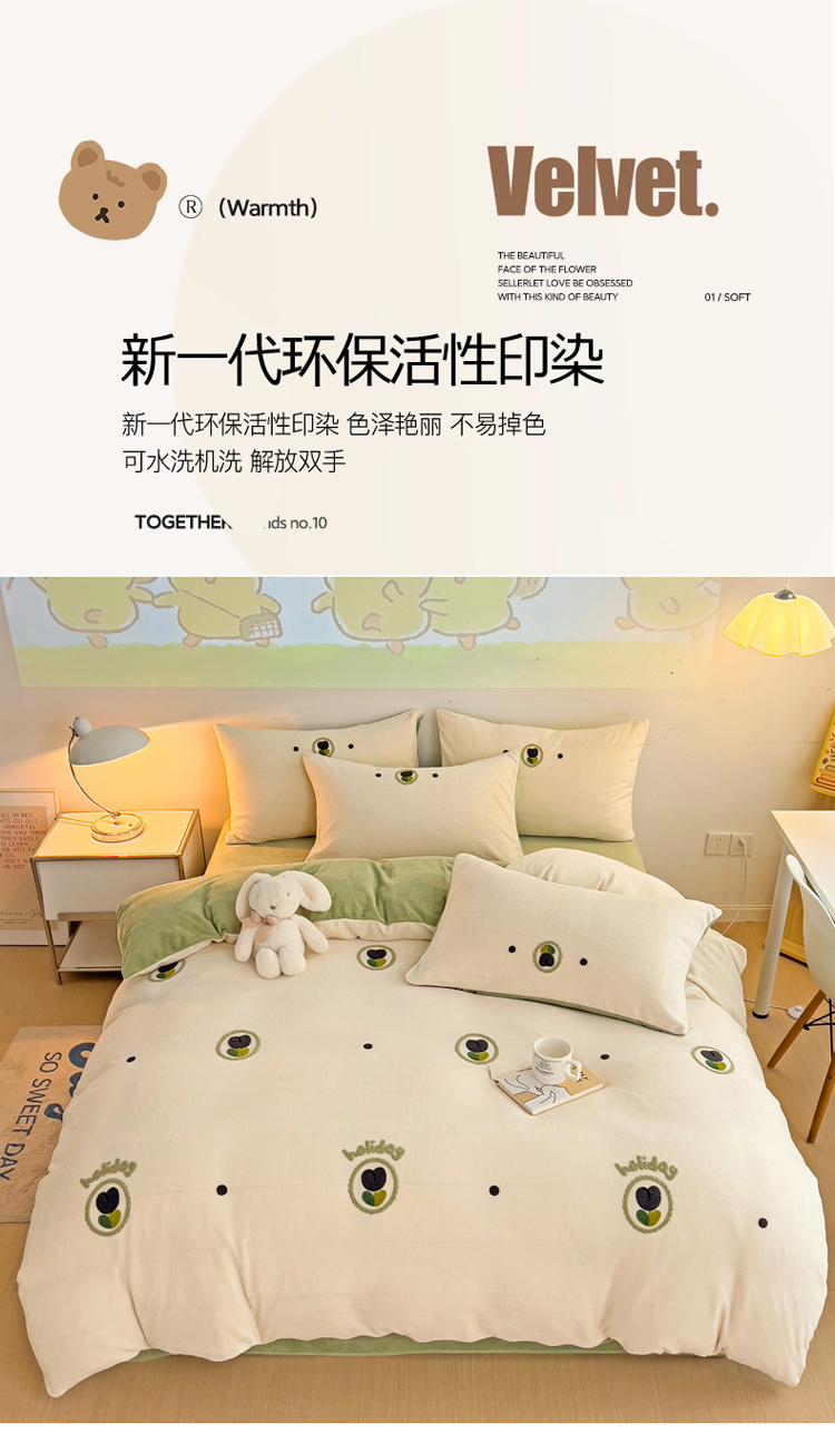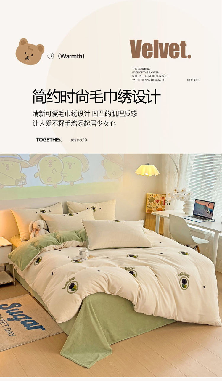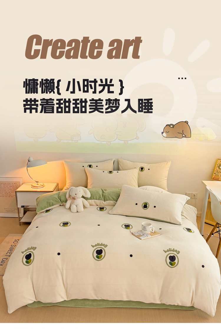 (总)寐居家纺 2025新款毛球毛巾绣牛奶绒四件套,毛球球·巴克汪仔,毛球球·豆蔻女孩,毛球球·奶黄拉布,毛球球·心动KT喵,组合图仅供展示不可下单