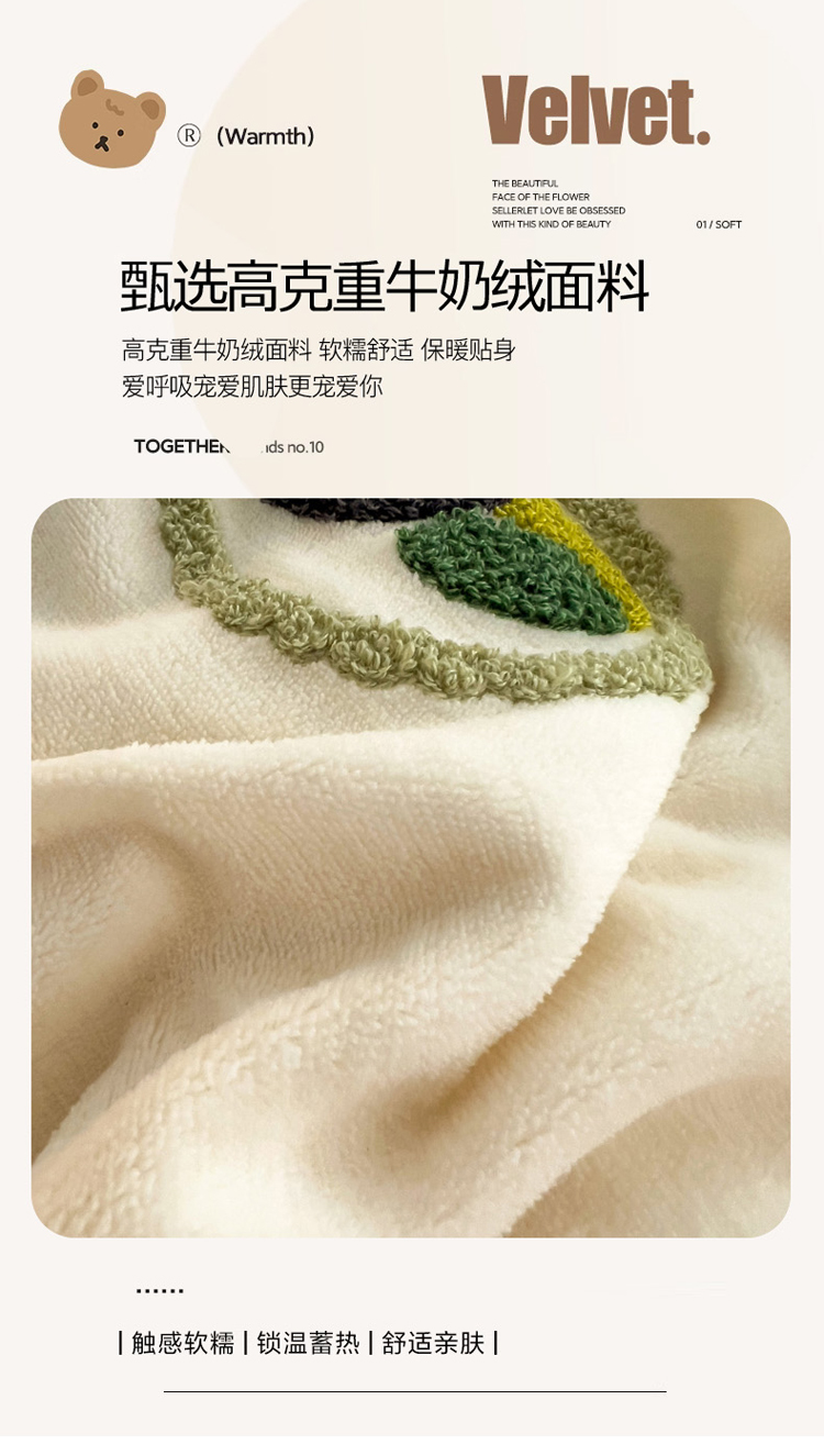(总)寐居家纺 2025新款A类牛奶绒毛巾绣床盖,组合,格纹萌犬,红果果,萌兔有约,年年有鱼,甜心小骑,星伴小象