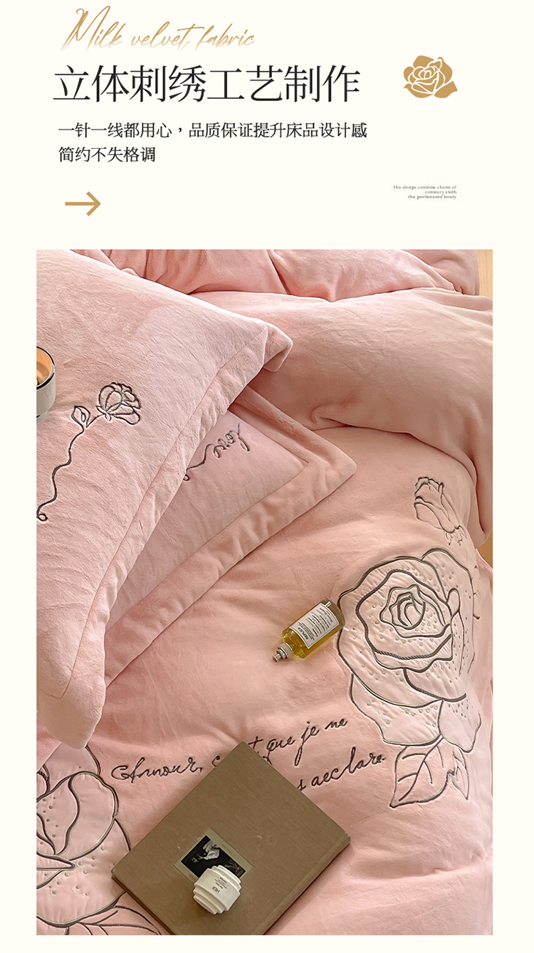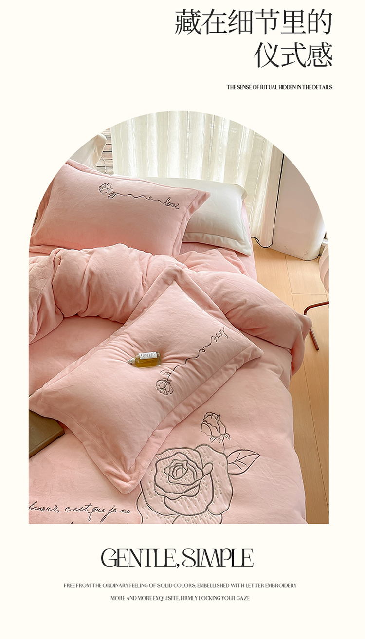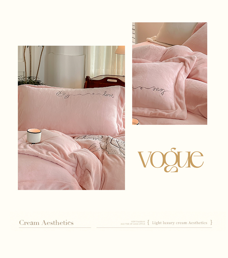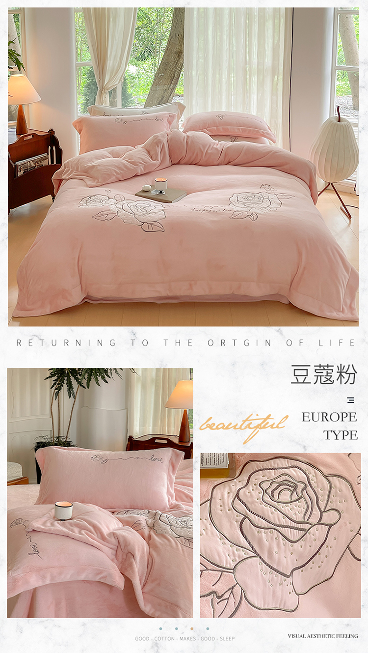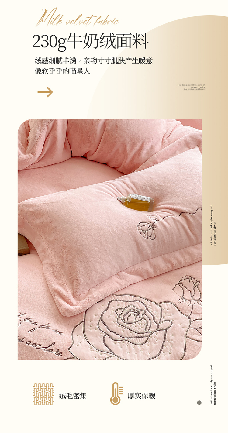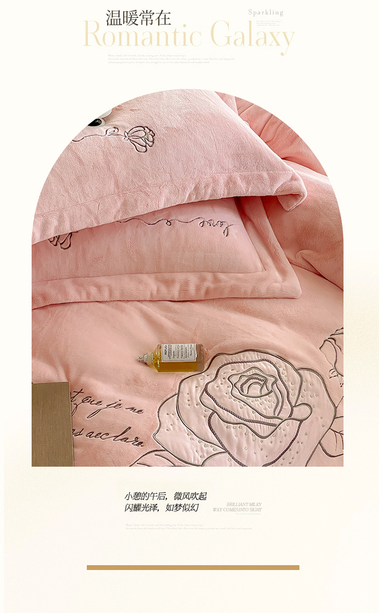 商品名称:名品优仓 2023新款高克重230g牛奶绒绣花温妮莎系列四件套 豆蔻粉