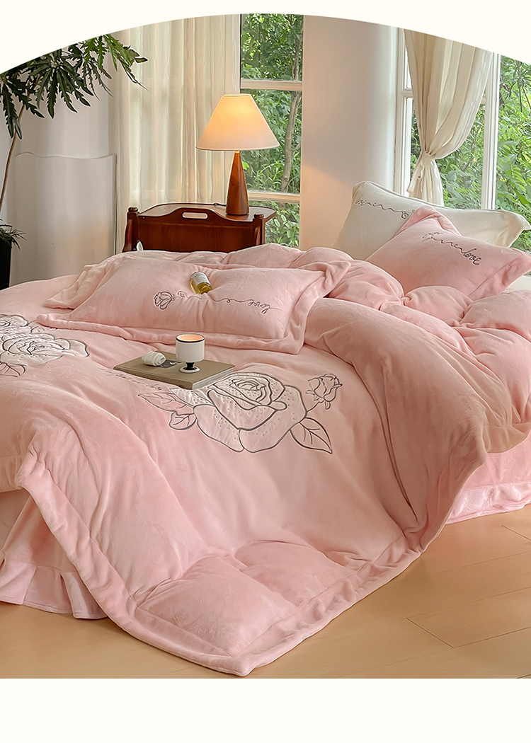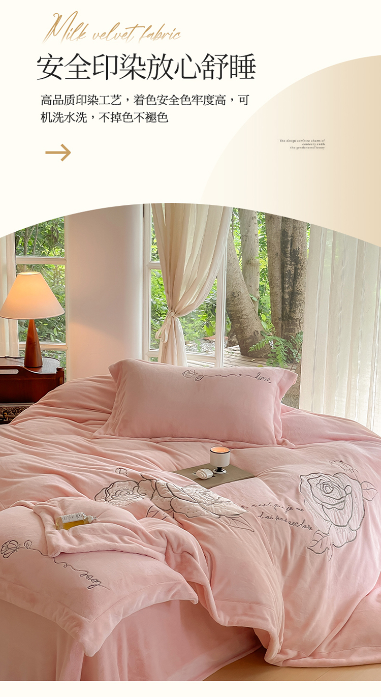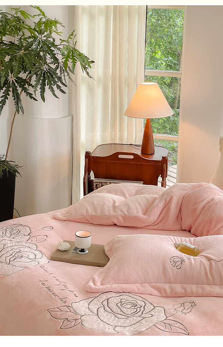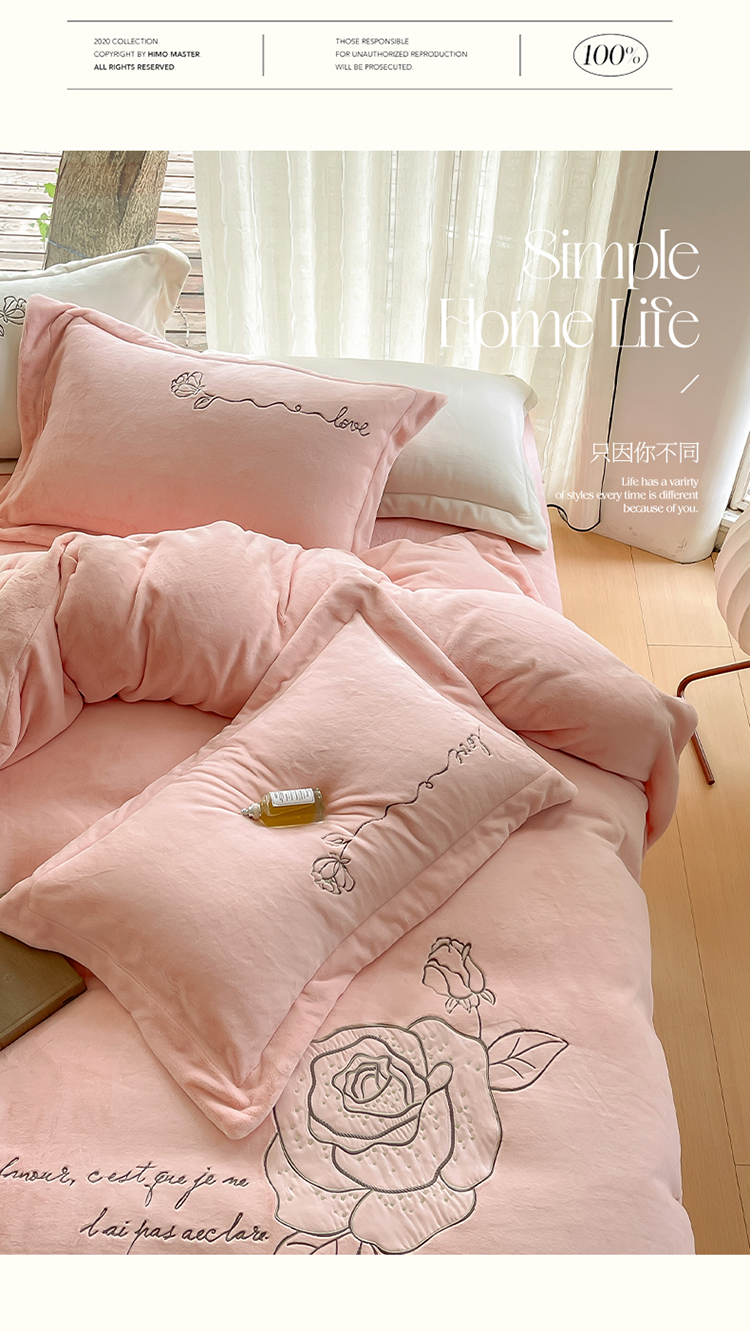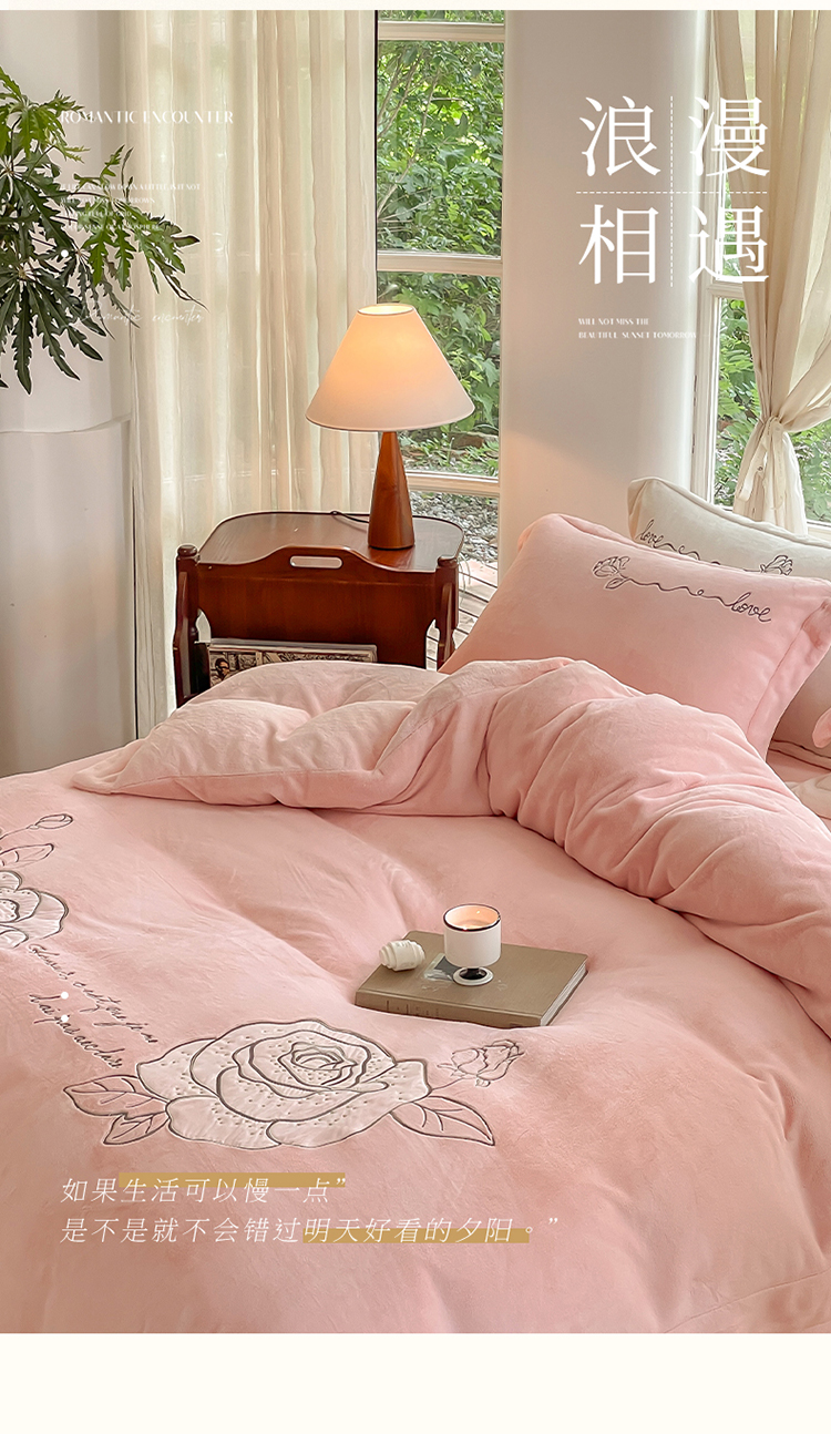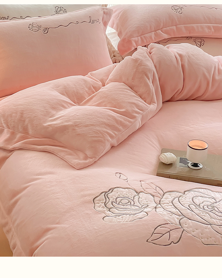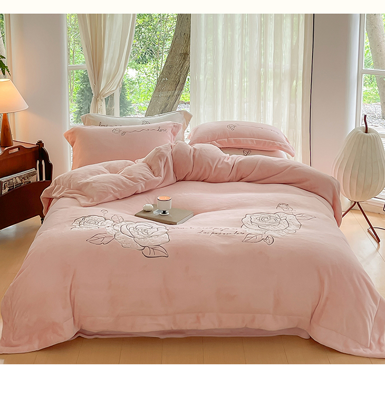 商品名称:名品优仓 2023新款高克重230g牛奶绒绣花温妮莎系列四件套 豆蔻粉