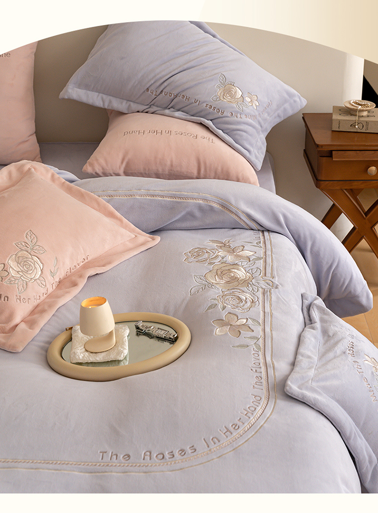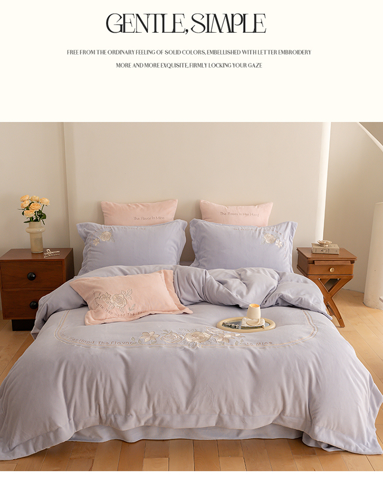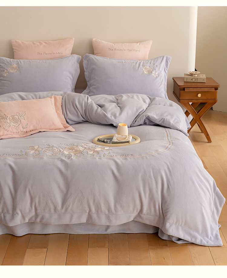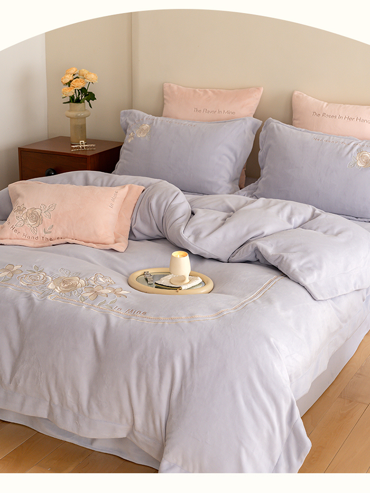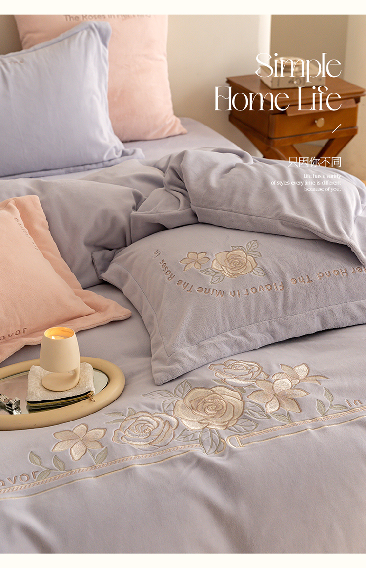 名品优仓 2023新款高克重230g牛奶绒绣花蔓璃系列四件套 风铃紫
