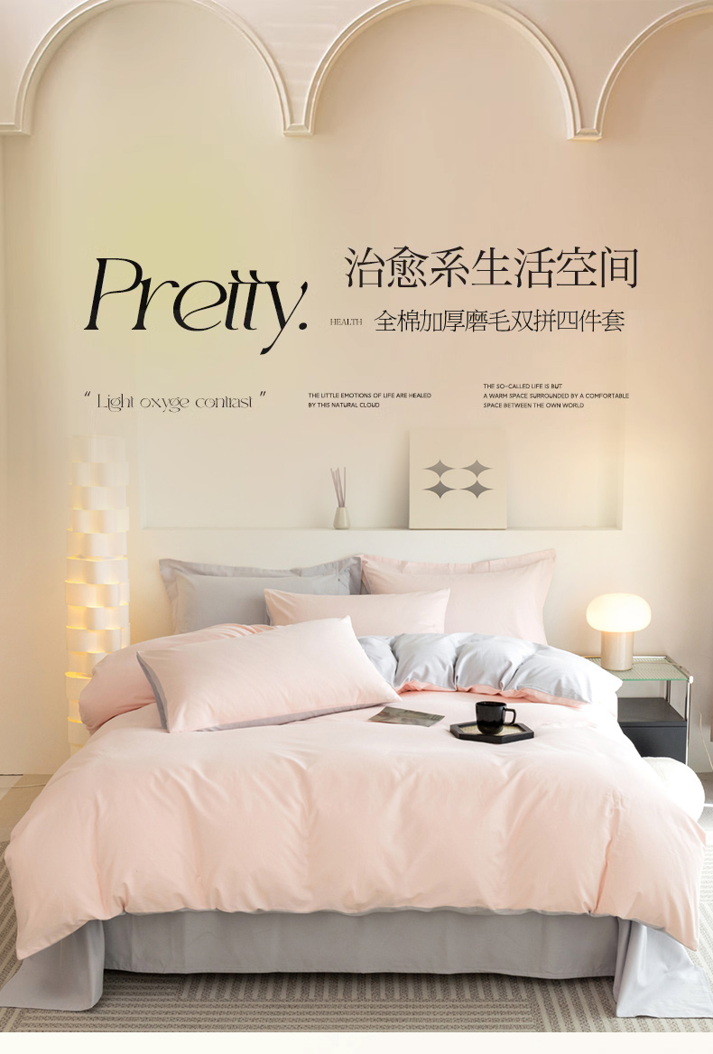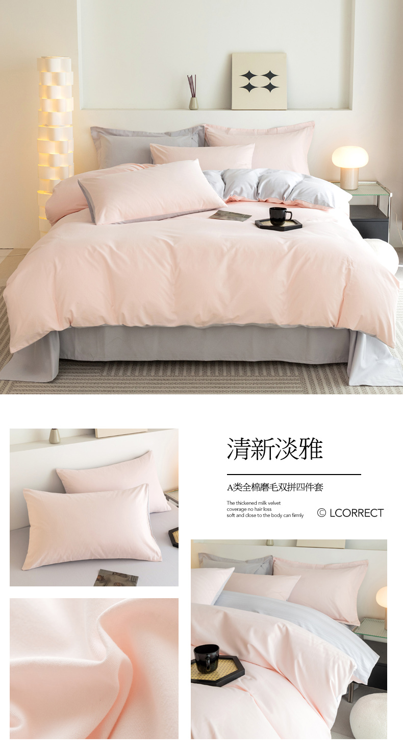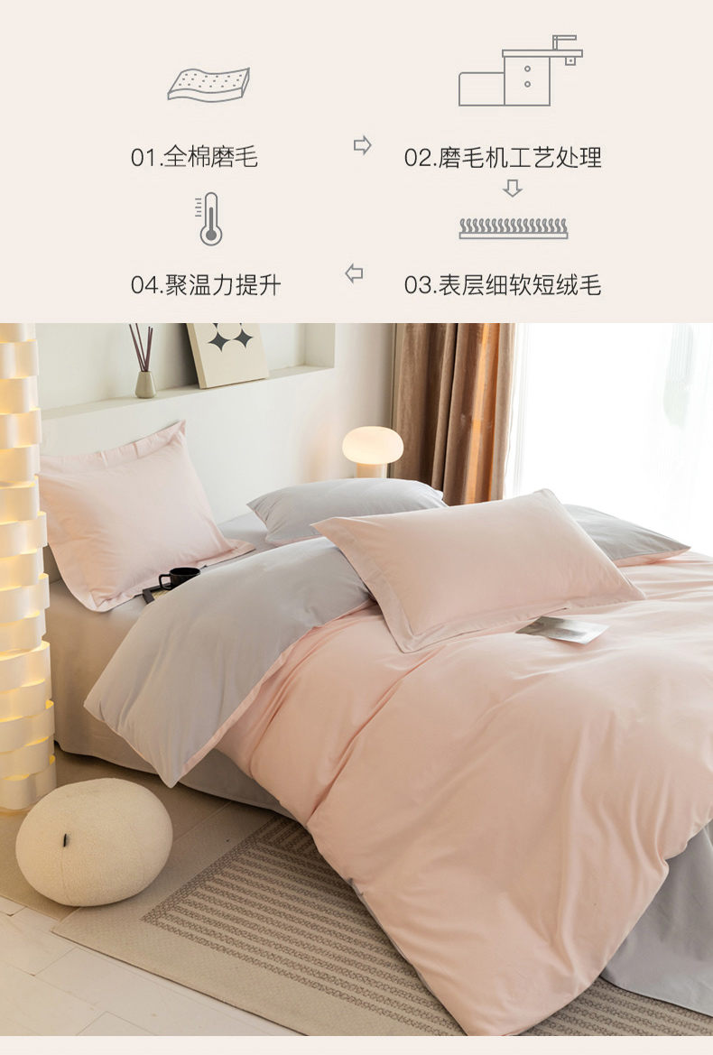 寐居家纺 2023新款全棉磨毛纯色四套件 清新淡雅