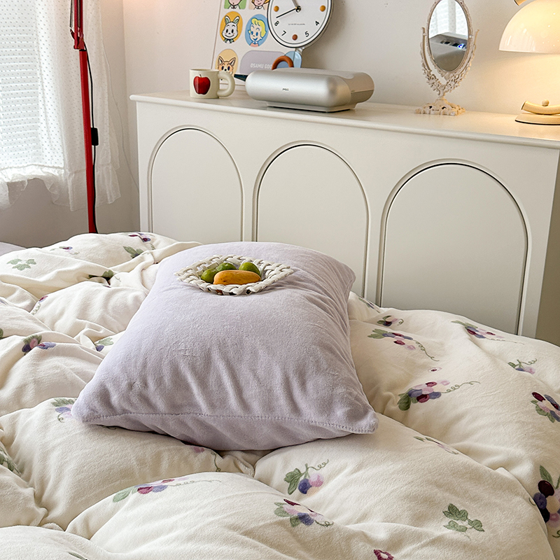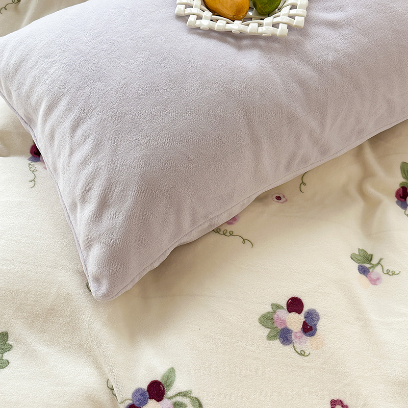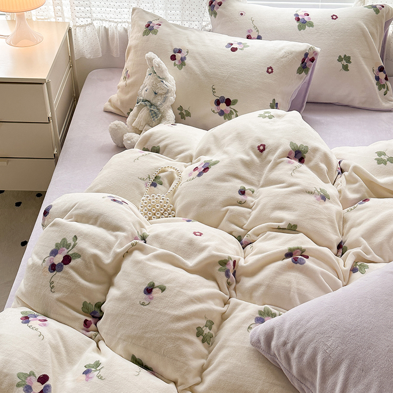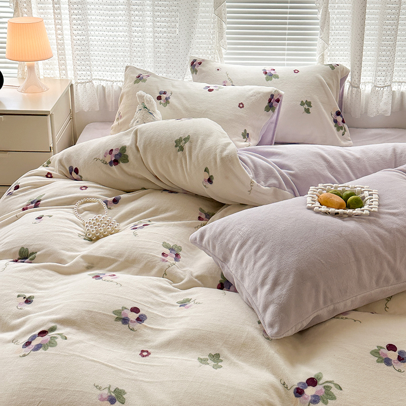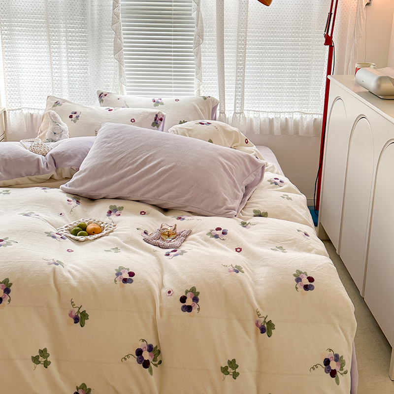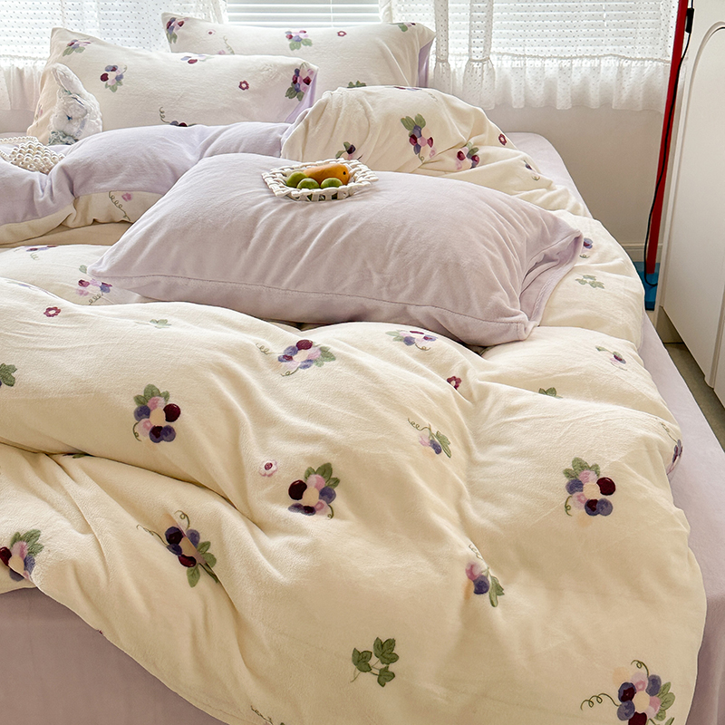 昔可家纺 2023新款高克重印花牛奶绒小清新系列四件套 紫色葡萄