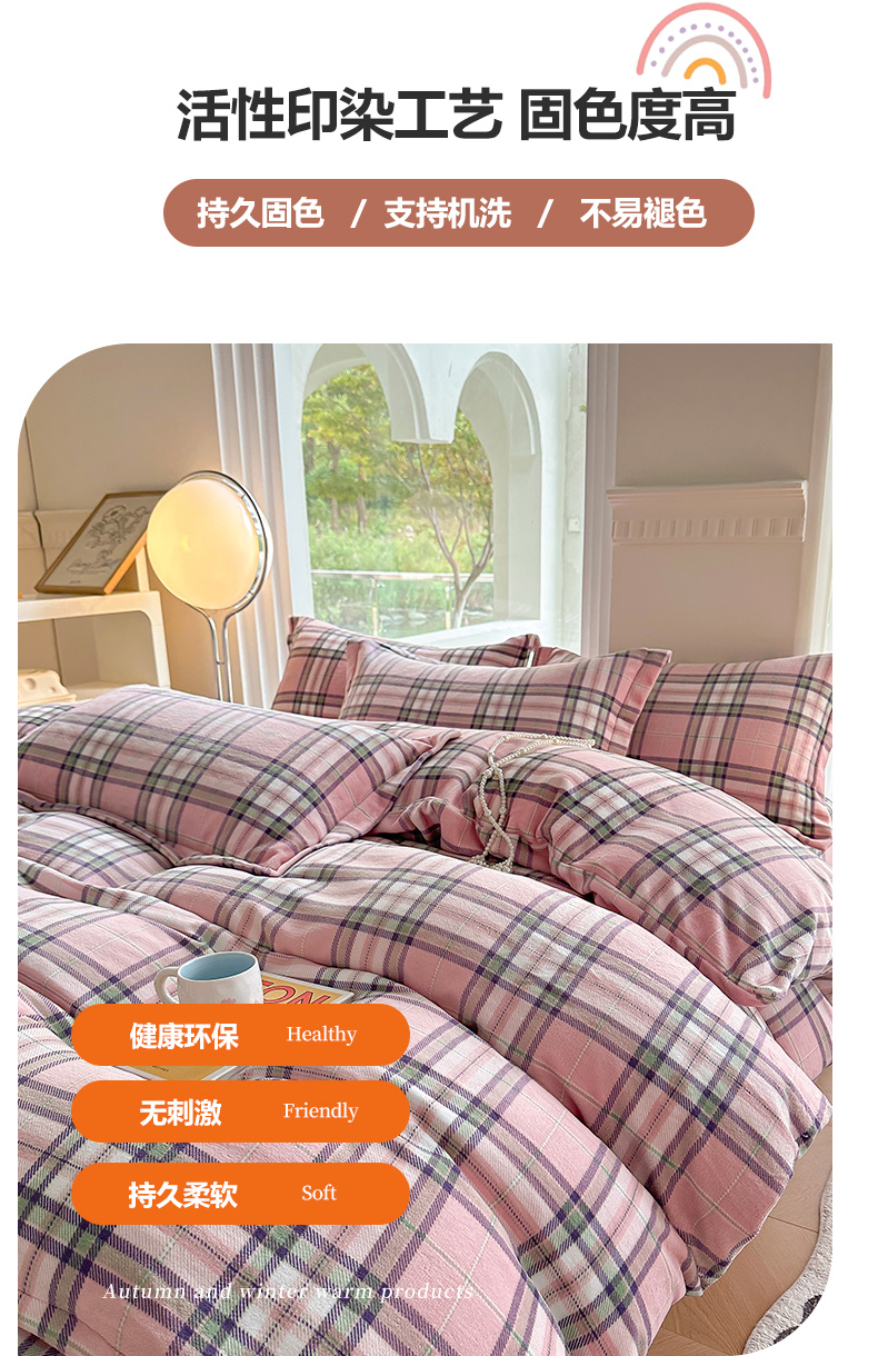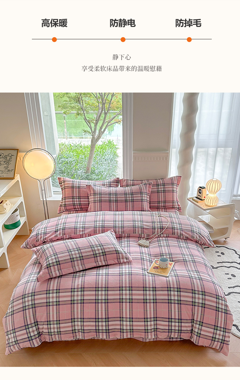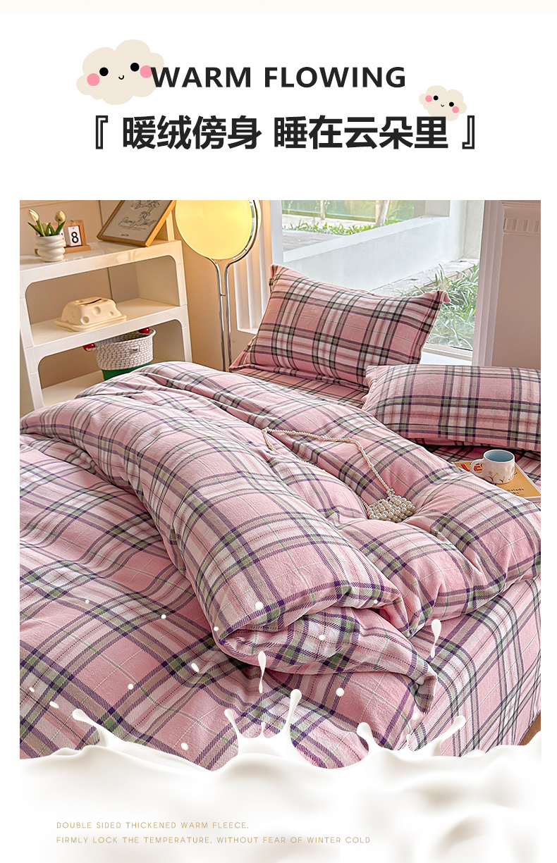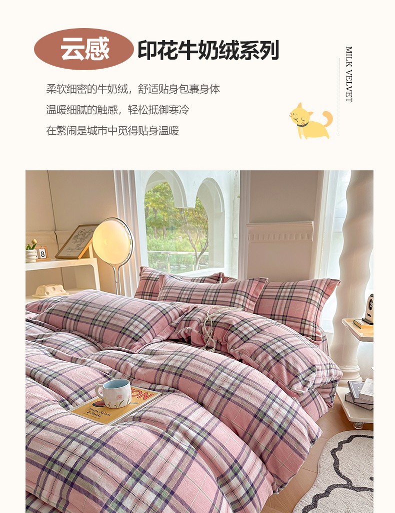 (总)胜权家纺 2024新款小香风牛奶绒夹棉床盖四件套-芭莎系列,芭莎-粉,芭莎-绿,芭莎-紫,芭莎-米