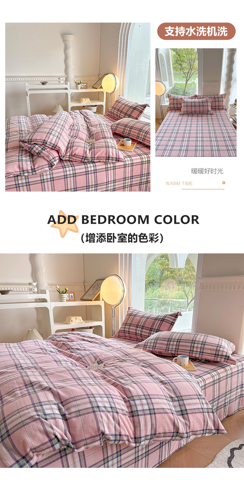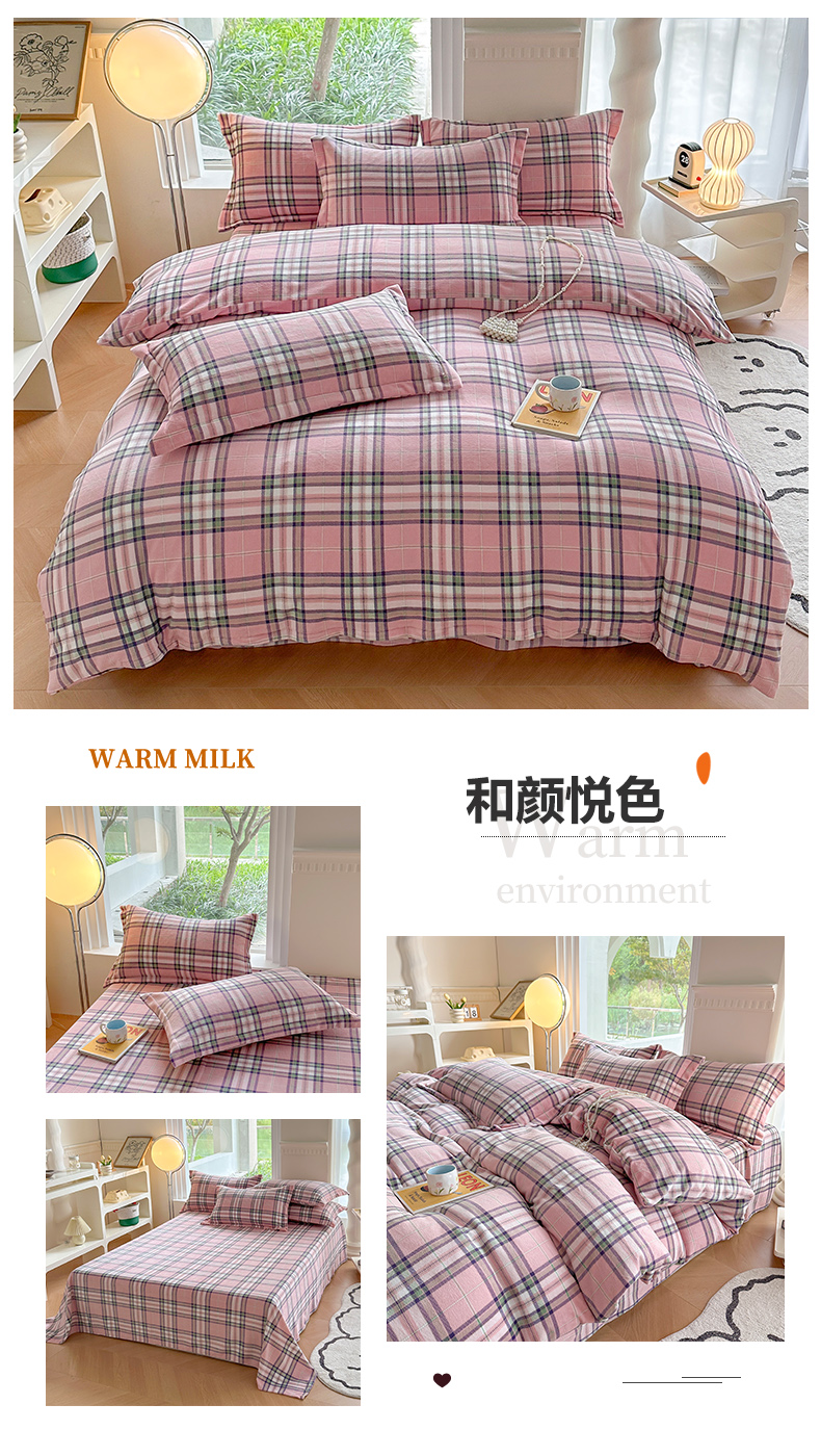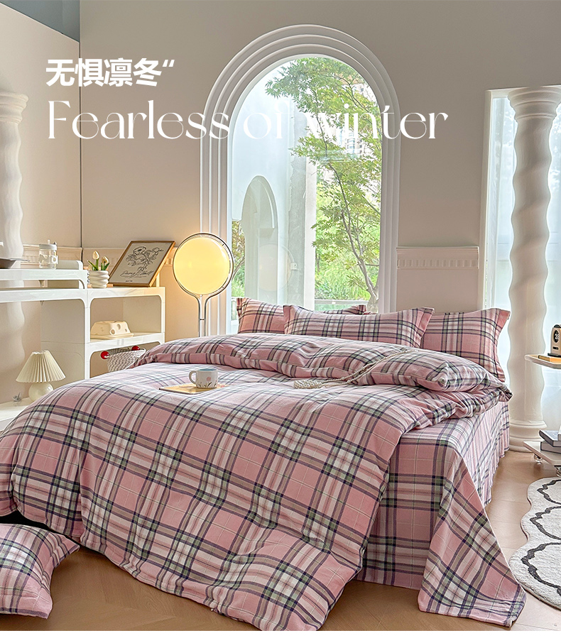 (总)胜权家纺 2024新款小香风牛奶绒夹棉床盖四件套-芭莎系列,芭莎-粉,芭莎-绿,芭莎-紫,芭莎-米