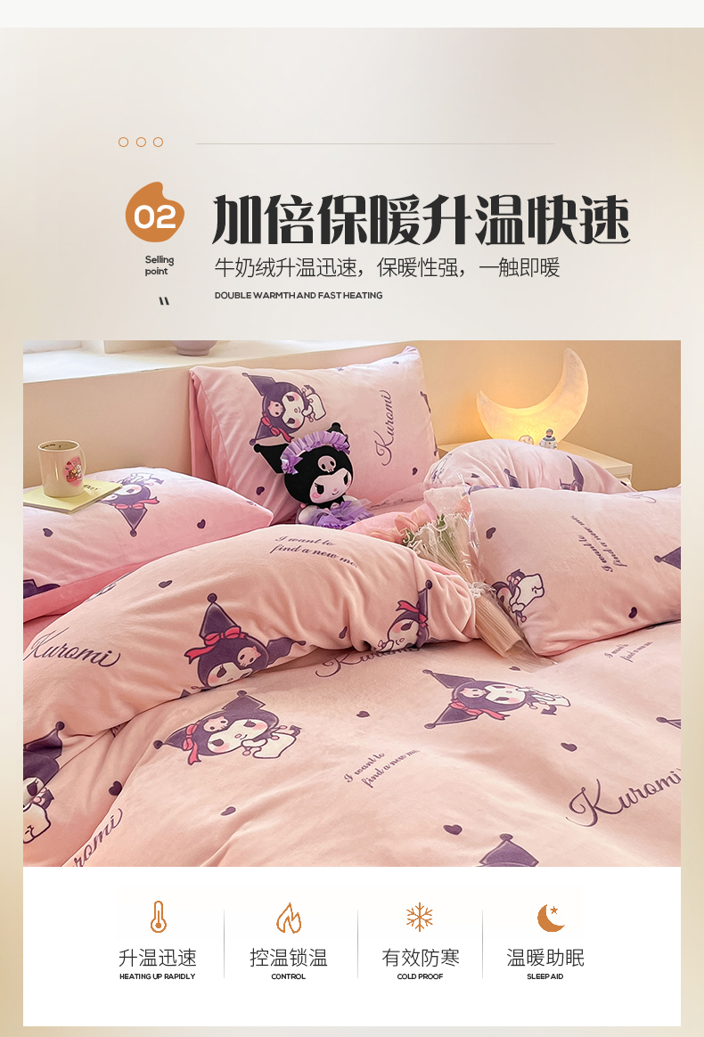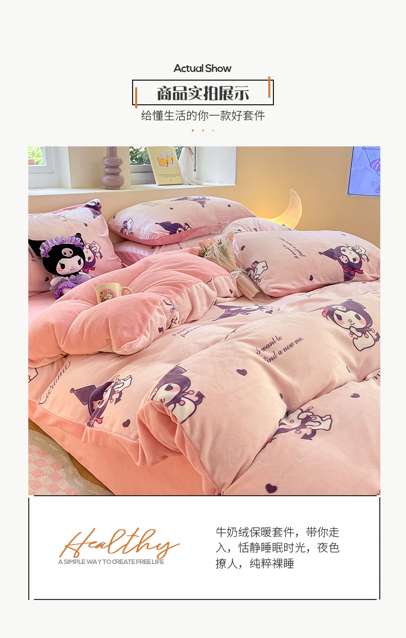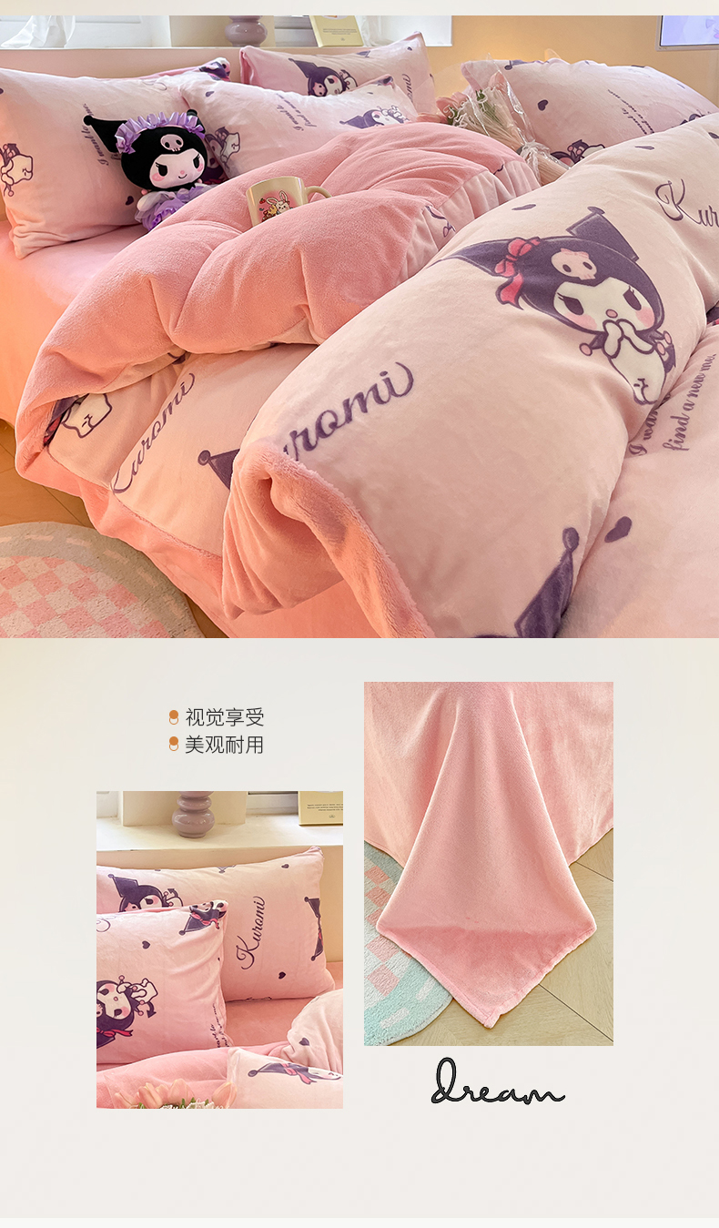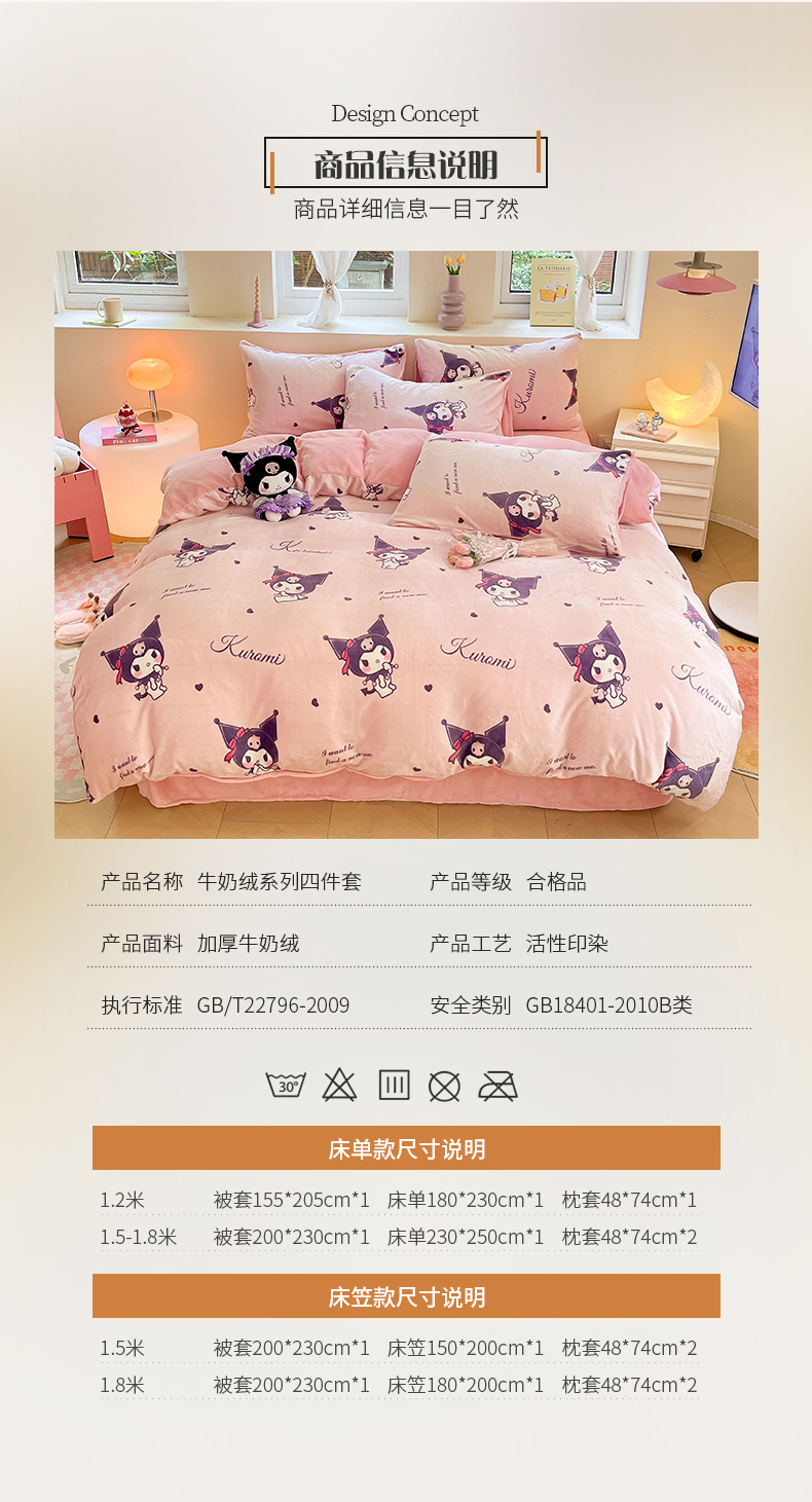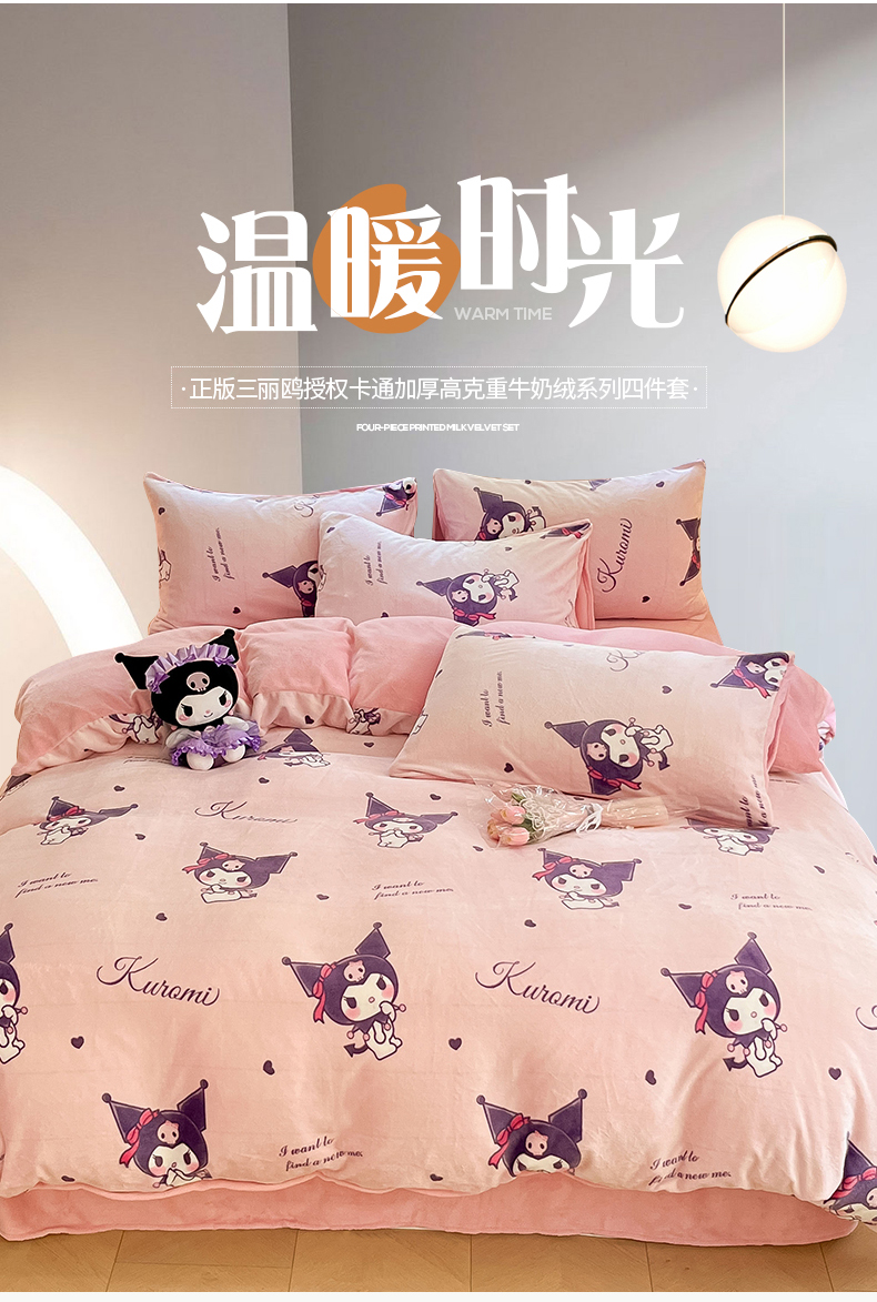 当前位置: 91家纺网 > 商品网购 > 床品套件 > 四件套 > 牛奶绒四件套 > 桃子 2023新款正版三丽鸥授权卡通加厚高克重牛奶绒系列四件套 绒三丽鸥-可爱库洛米