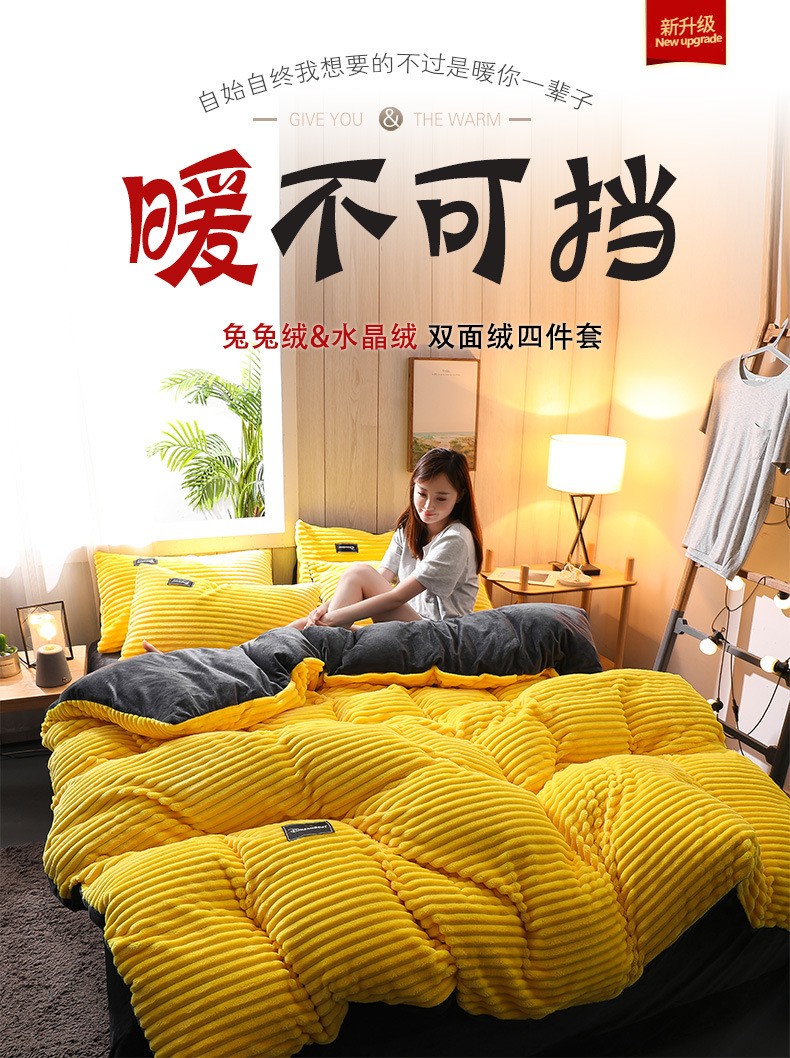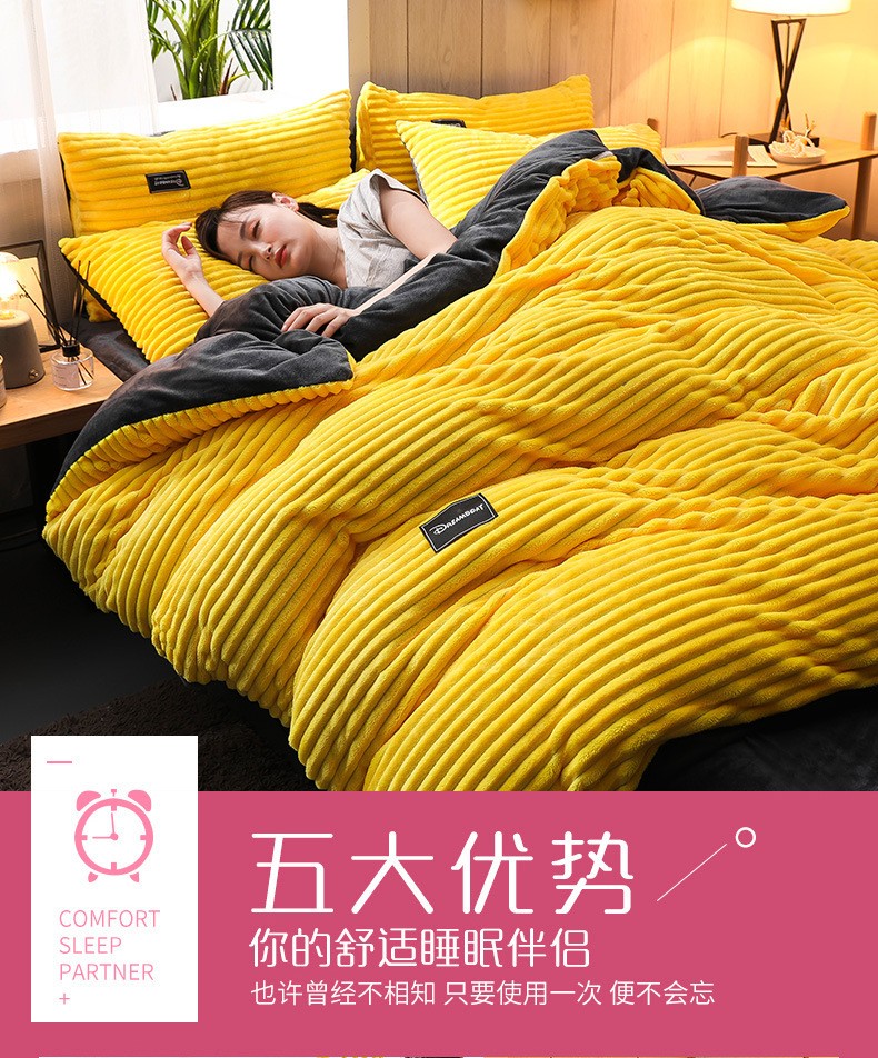 (总) 蒂凡羽 2025新款魔法绒牛奶绒珊瑚绒水晶法莱绒四件套,白粉色,深士灰色,黑暗条纹,深灰色,藕粉色,酒红色,柠檬黄,绿松石,翡翠绿,湖蓝色,藏蓝色,豆沙粉,豆沙灰,咖啡色,卡色,驼色