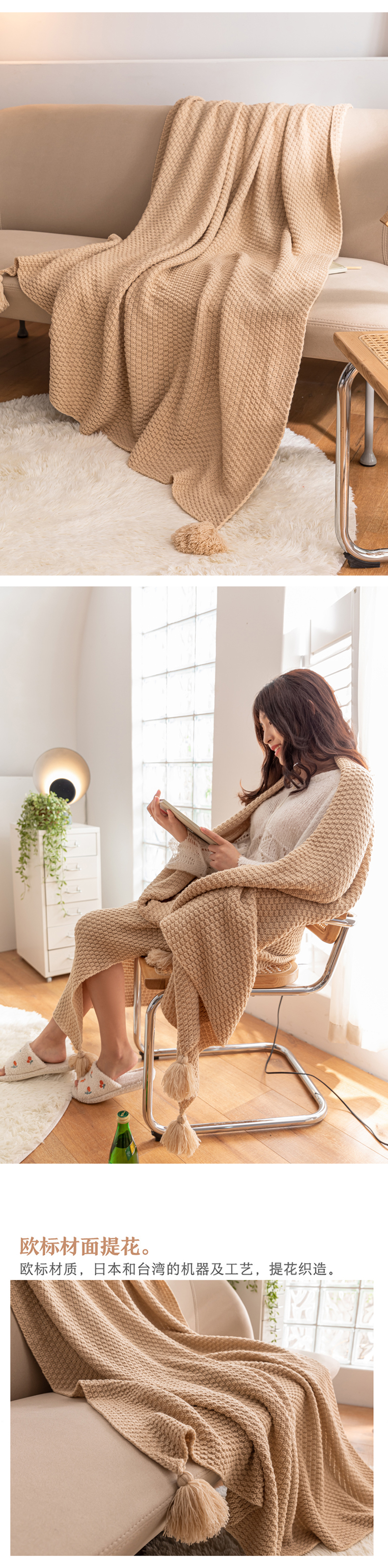 商品名称:朴尔家纺 2023新款北欧纳维亚系列日光流苏针织毯 浅咖色