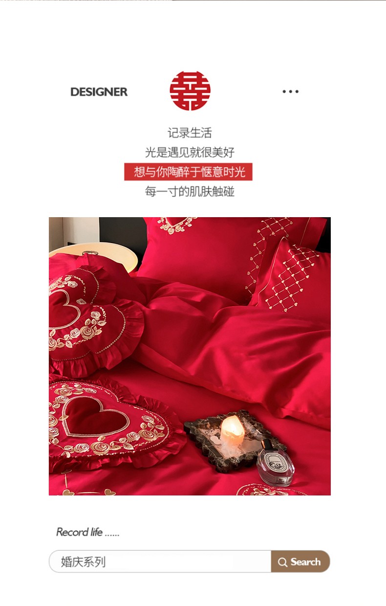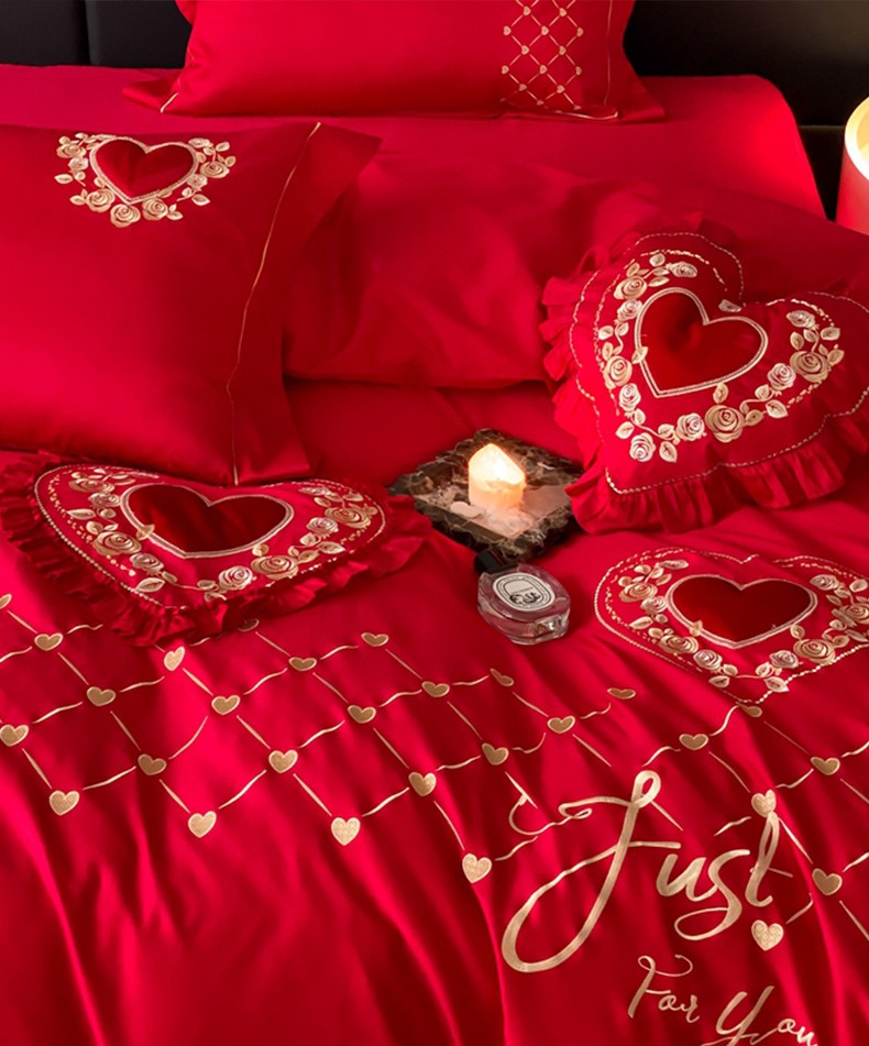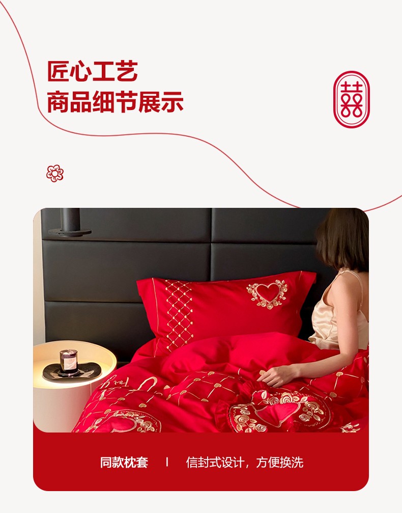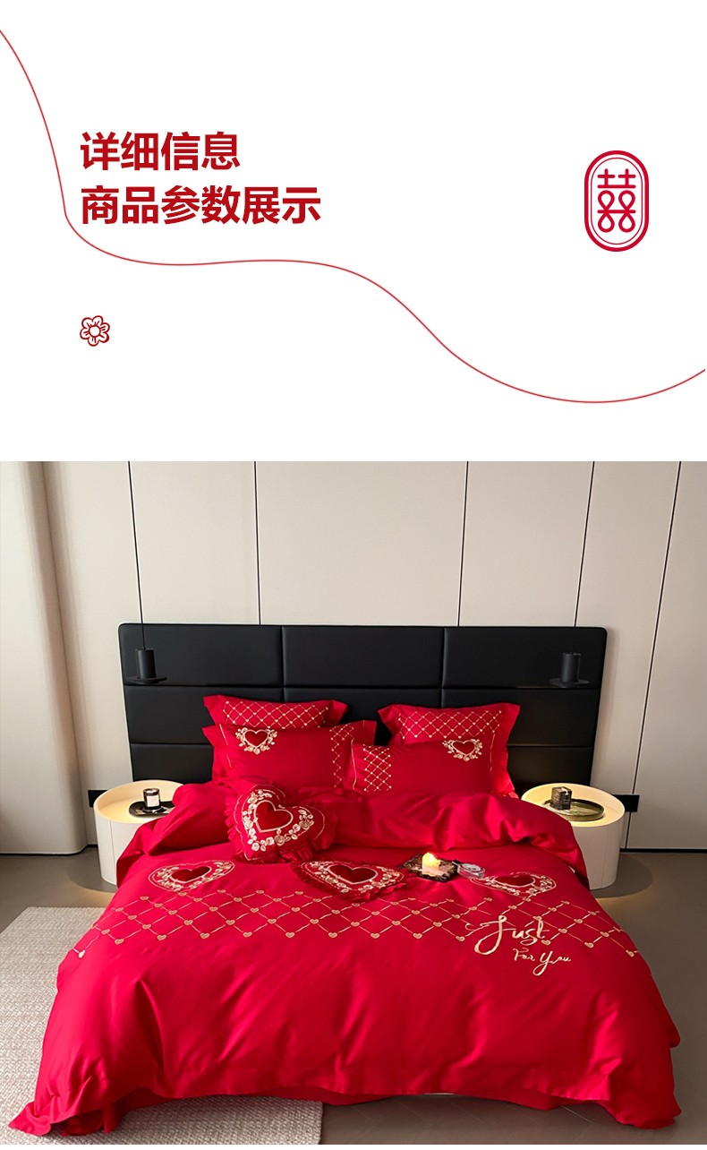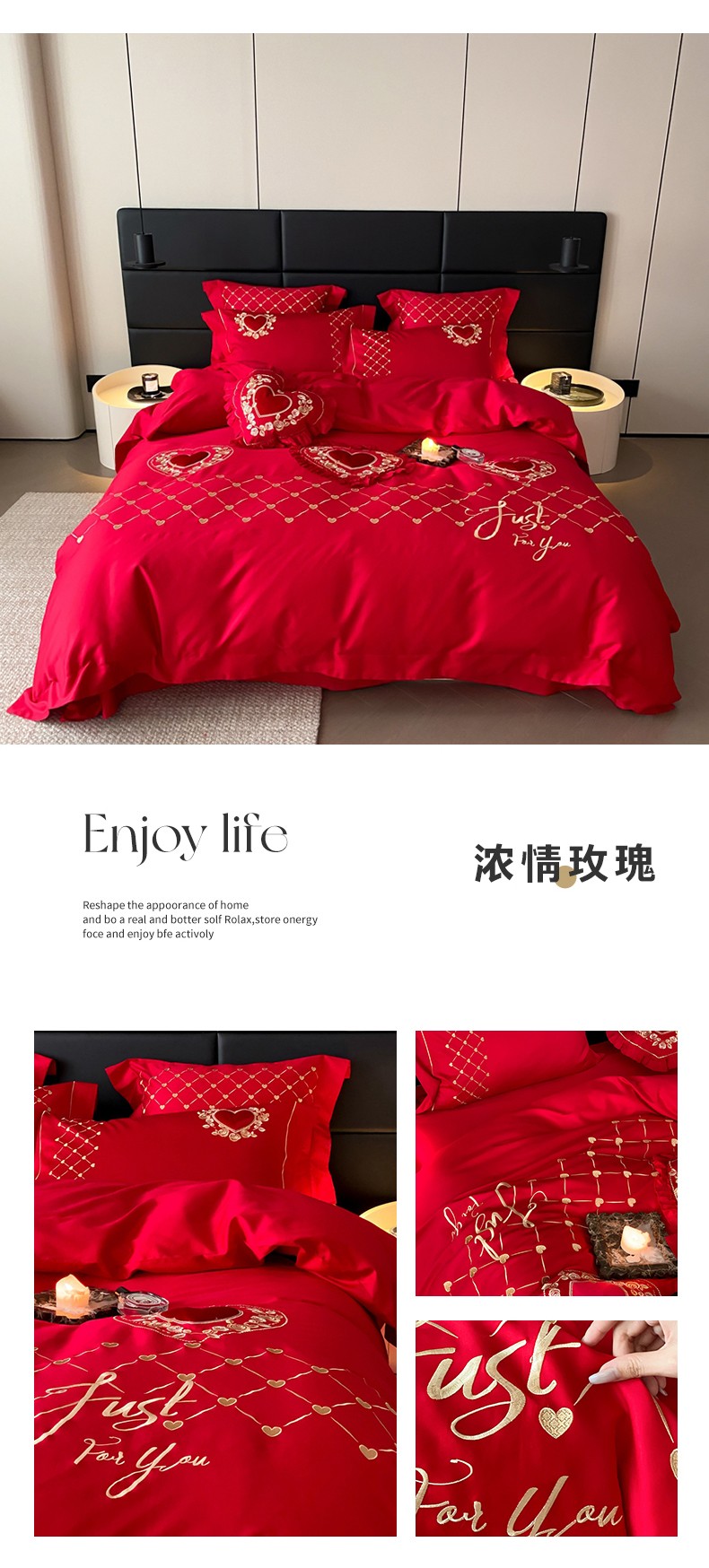 商品名称:用心 2023新款长绒棉婚庆四件套高端绣花简约家居 浓情玫瑰