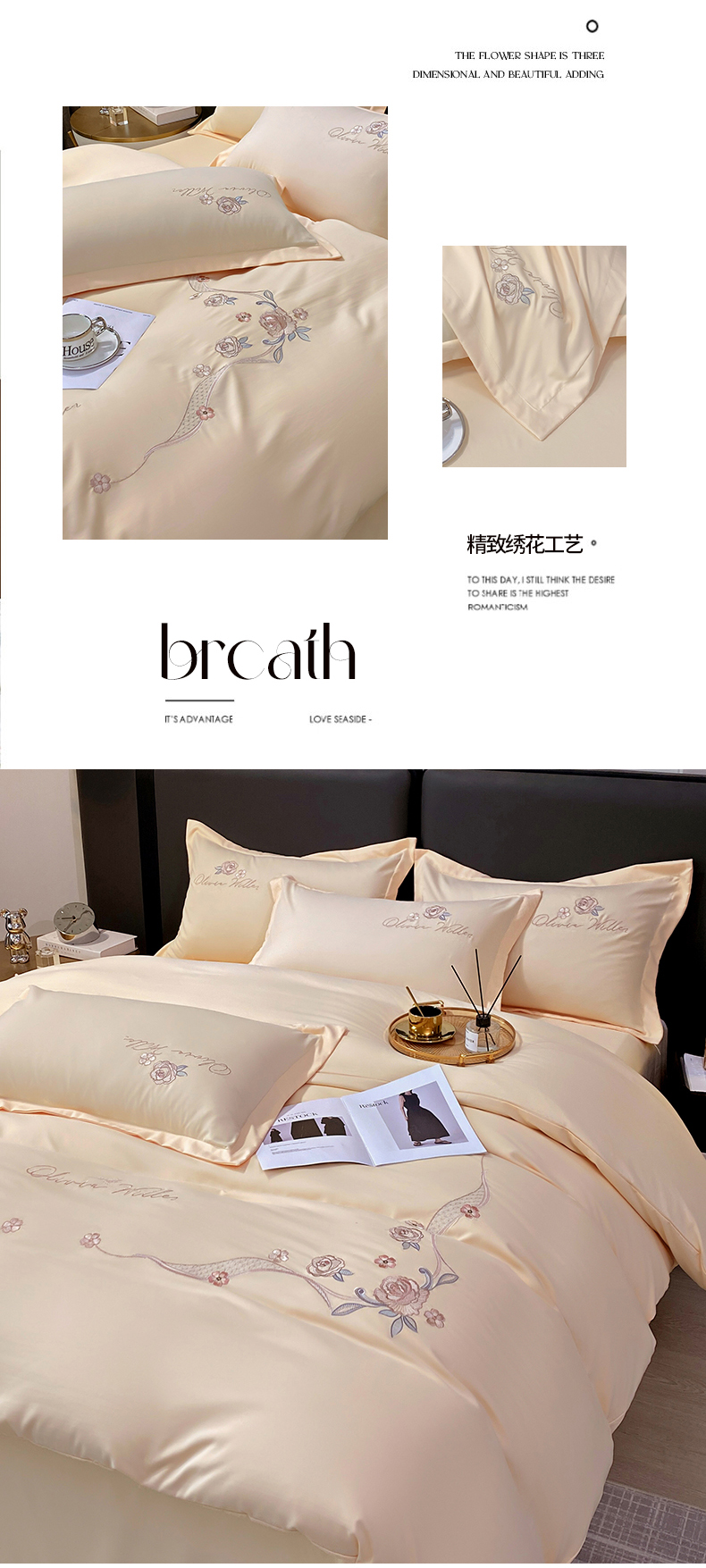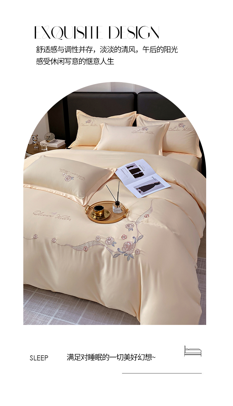 帛缔思 2023新款轻奢长绒棉绣花四件套-古典韵味 古典韵味-优雅米