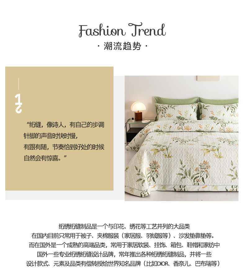 商品名称:优乐家纺 2023新款夹棉绗缝套件及单品系列-单床盖 沁香