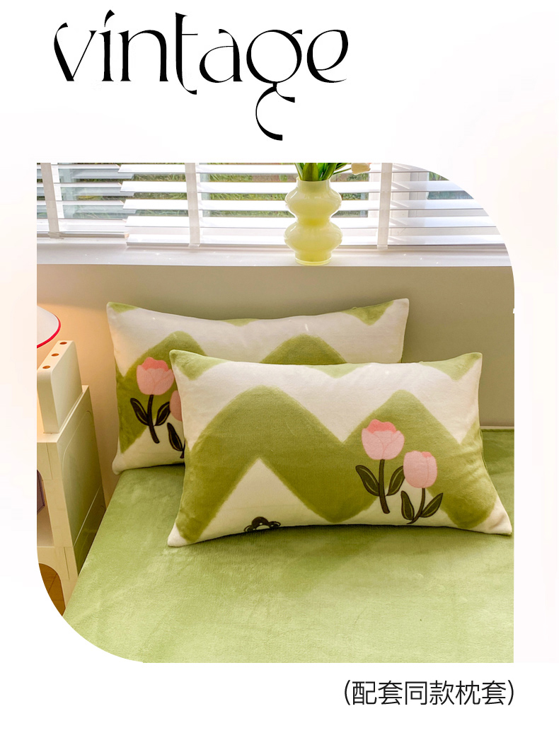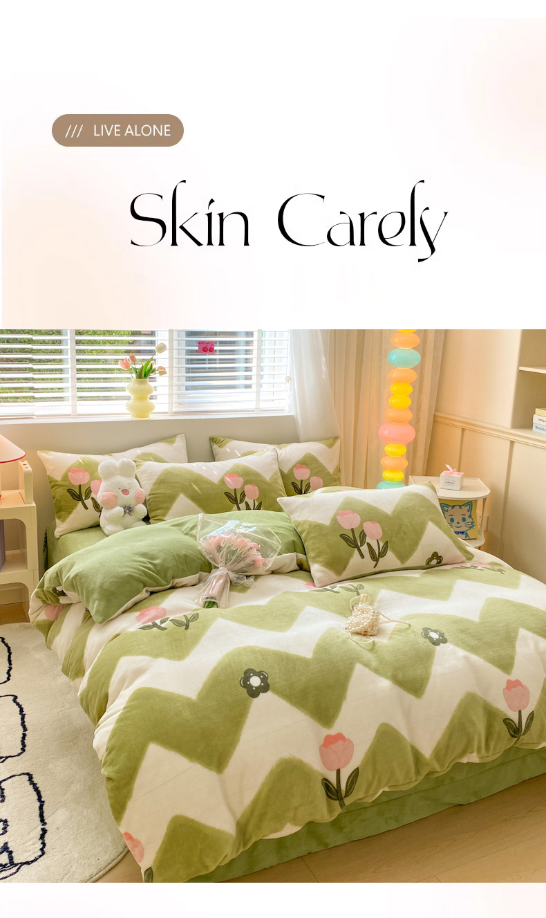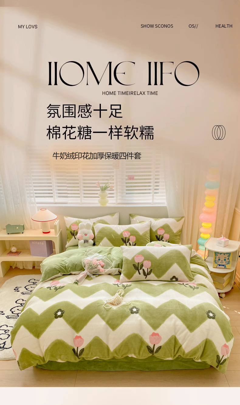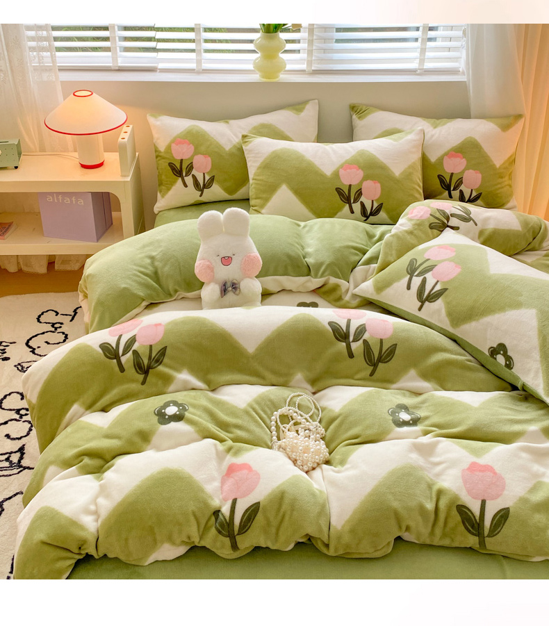 恋佳居 2025新款小清新印花牛奶绒保暖四件套 粉色郁金香