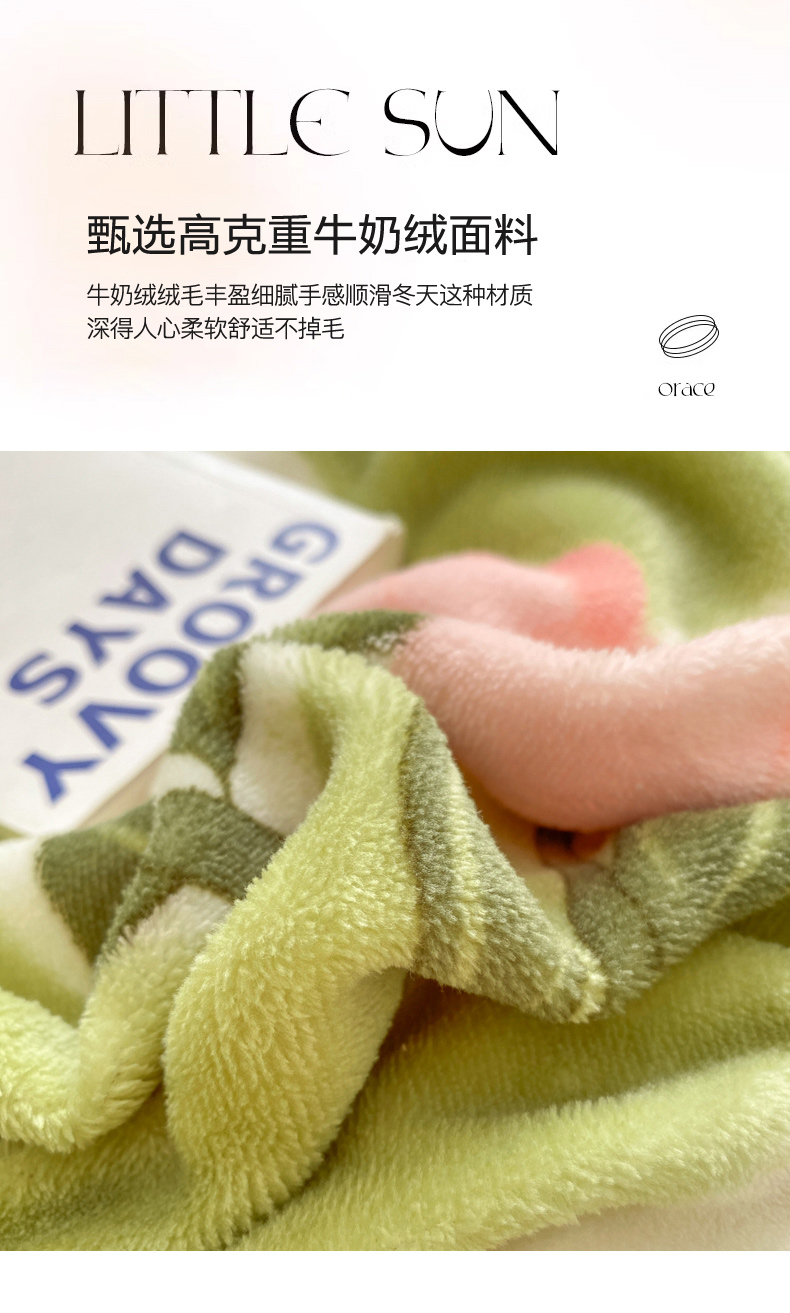 (总)恋佳居 2025新款太阳花舒棉绒被套毯毛毯子,黑色,焦糖色,绿色,奶油橘,奶油咖