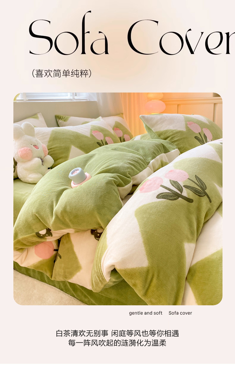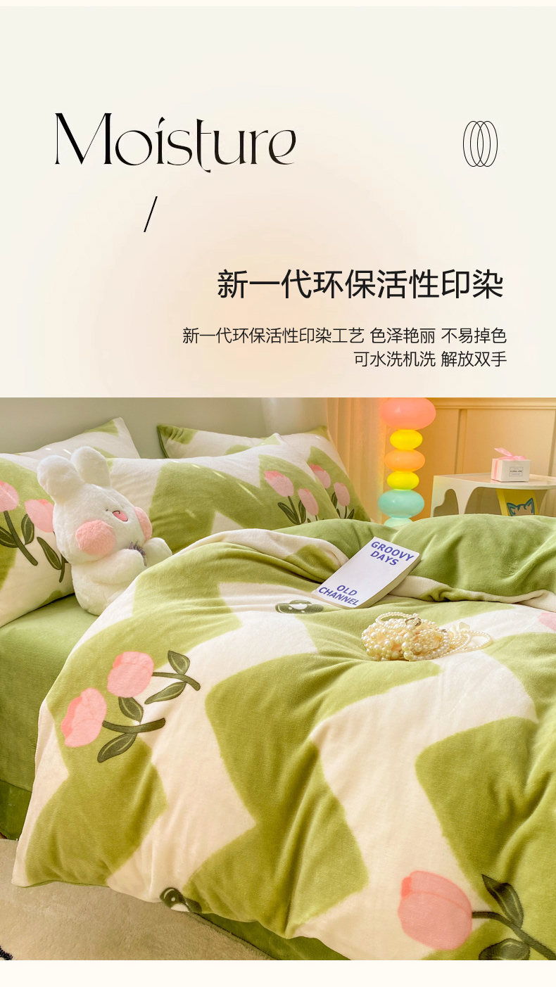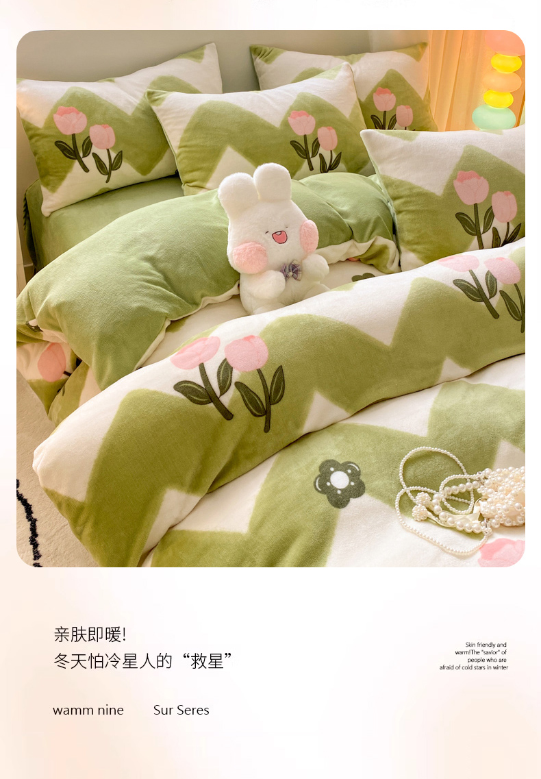 商品名称:恋佳居 2025新款小清新印花牛奶绒保暖四件套 粉色郁金香