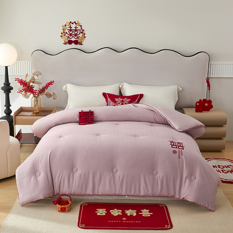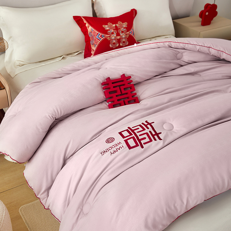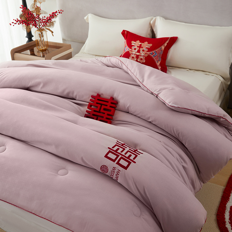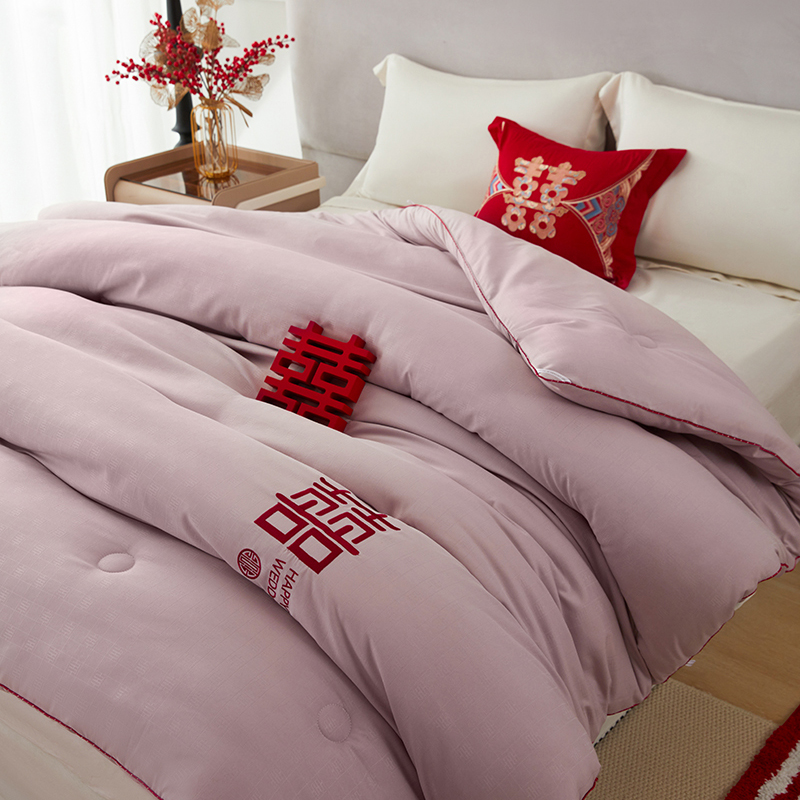 丽卡家纺 2023新款大豆纤维澳棉提花被子被芯-双喜临门 双喜临门-豆沙