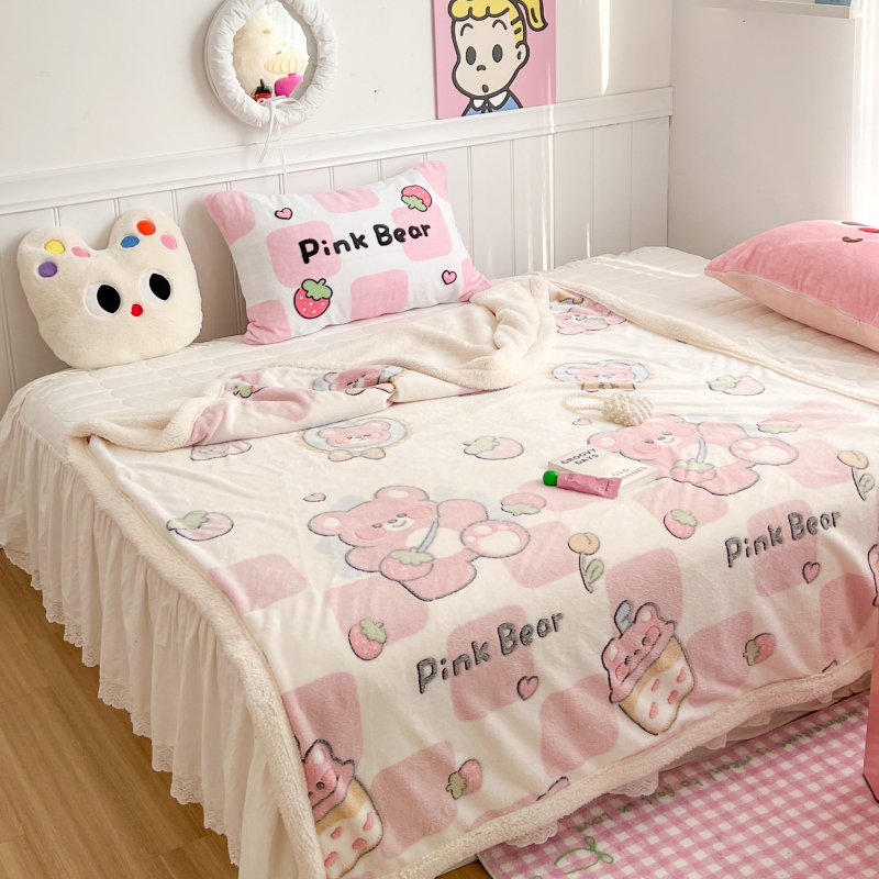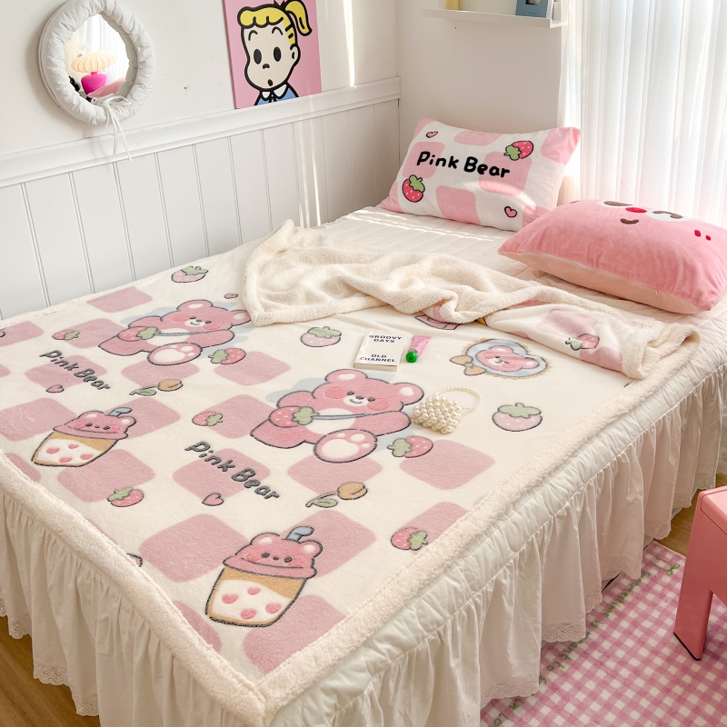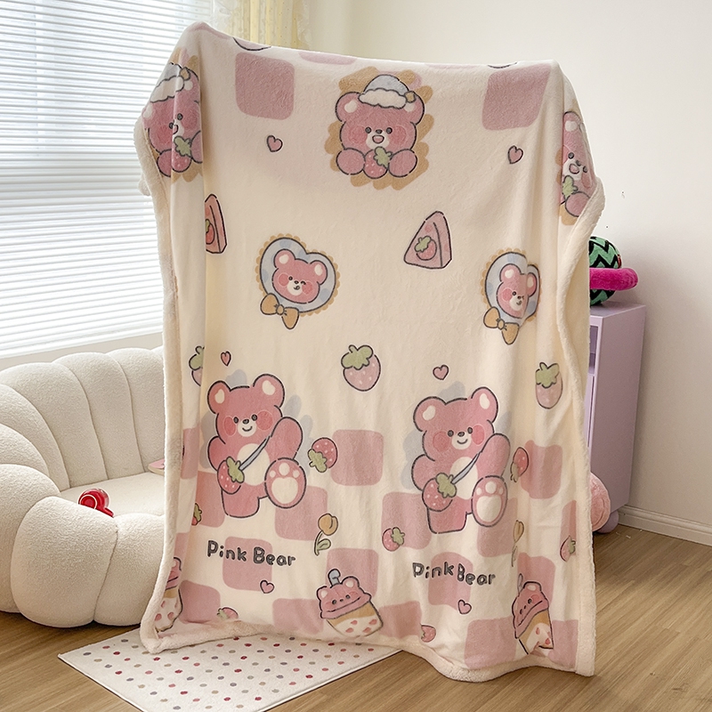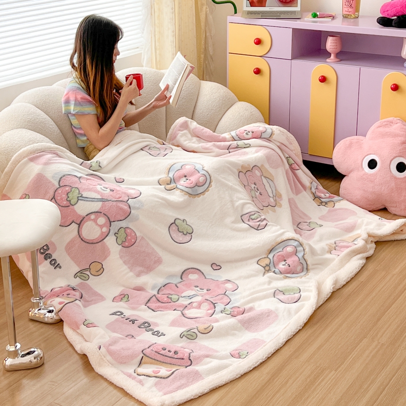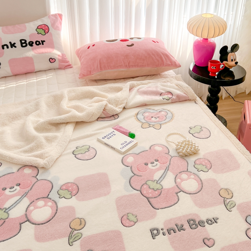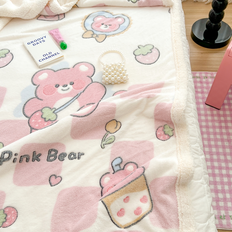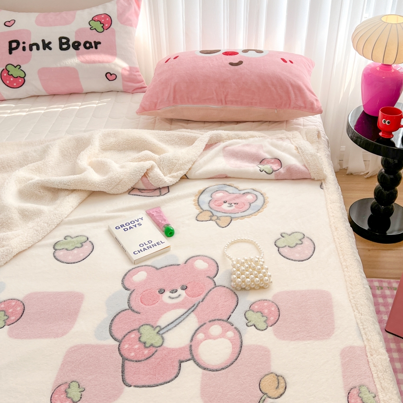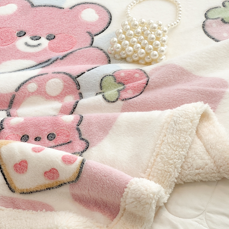 商品名称:顾里家纺 2023新款ins韩风∙雪花立体羊羔绒毯 草莓熊仔