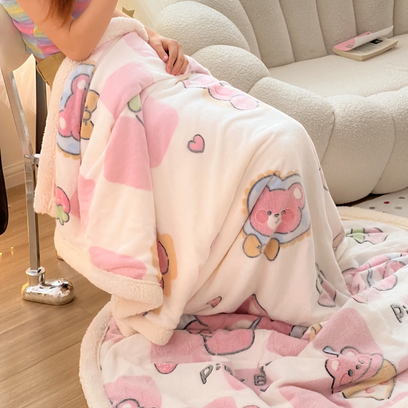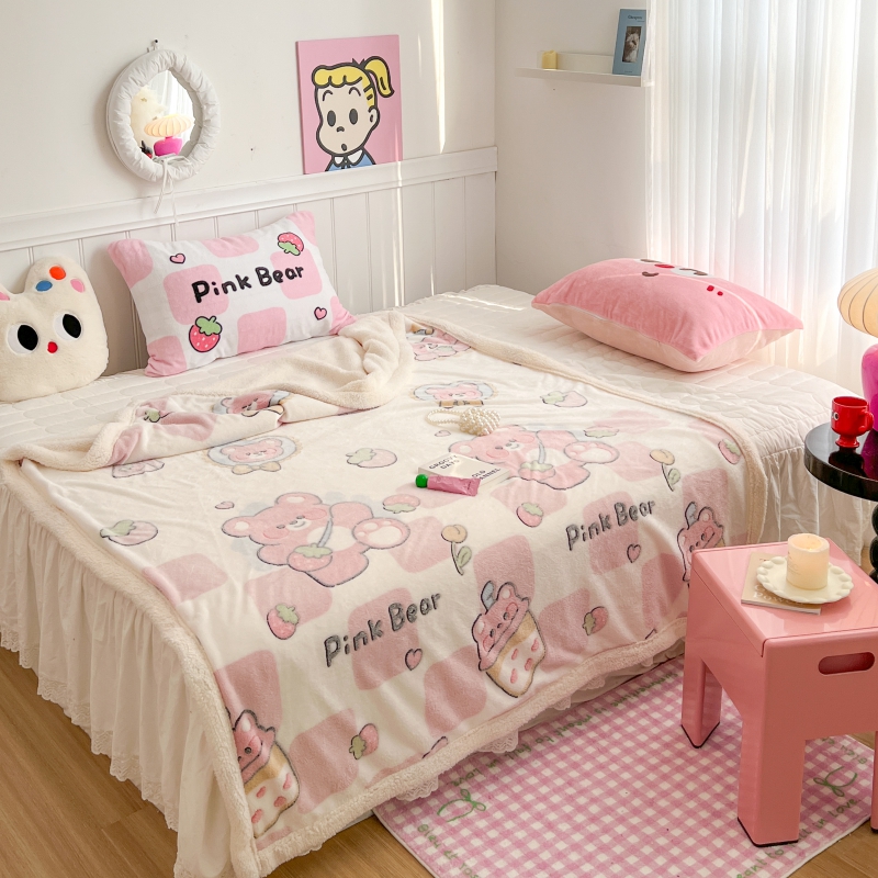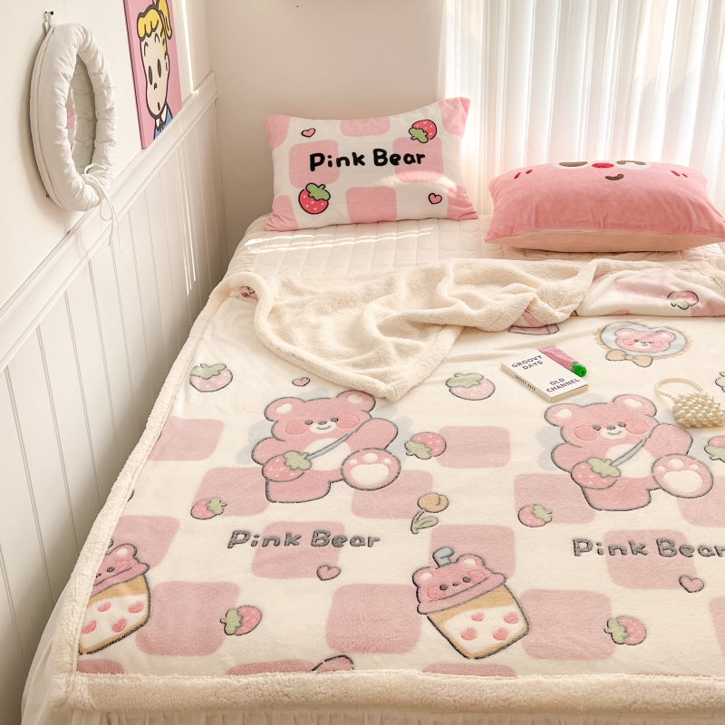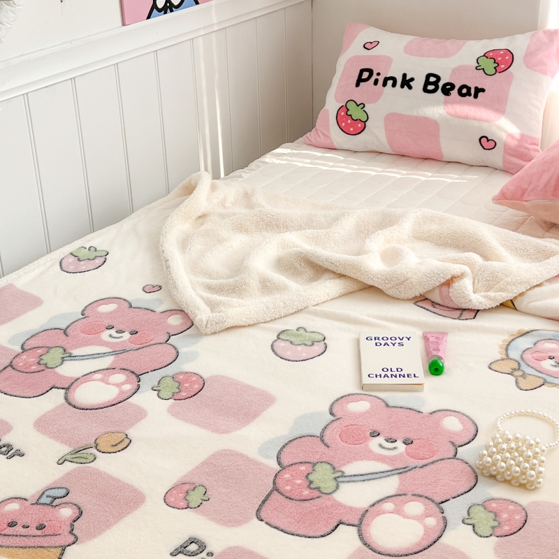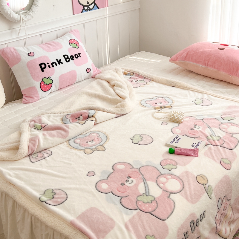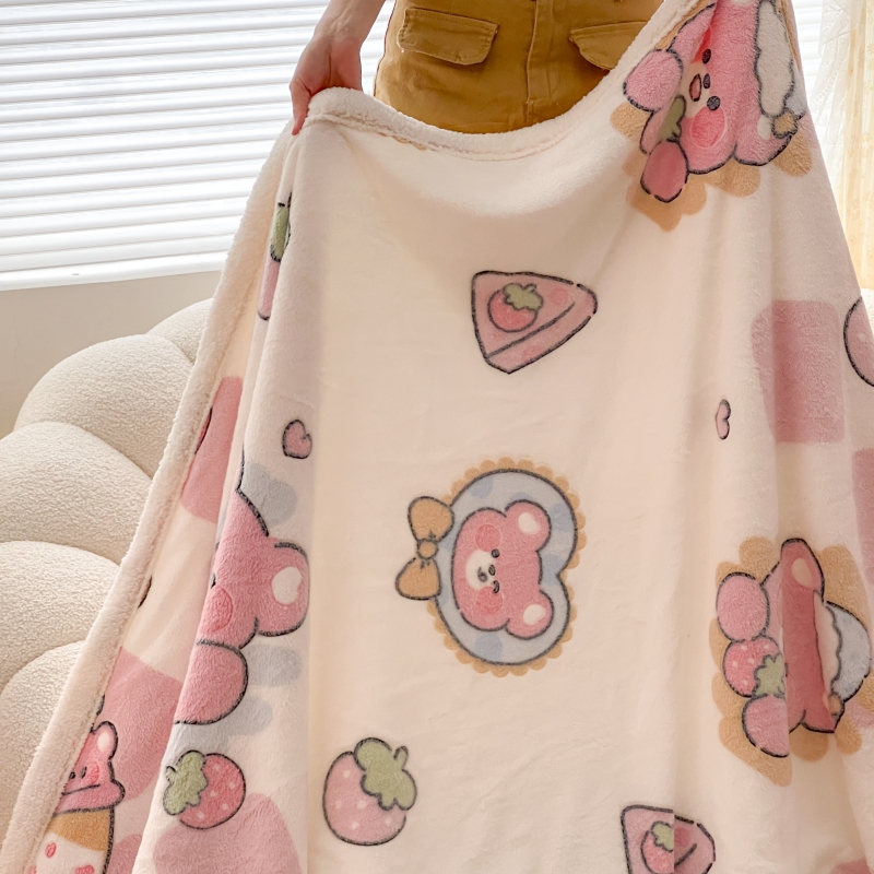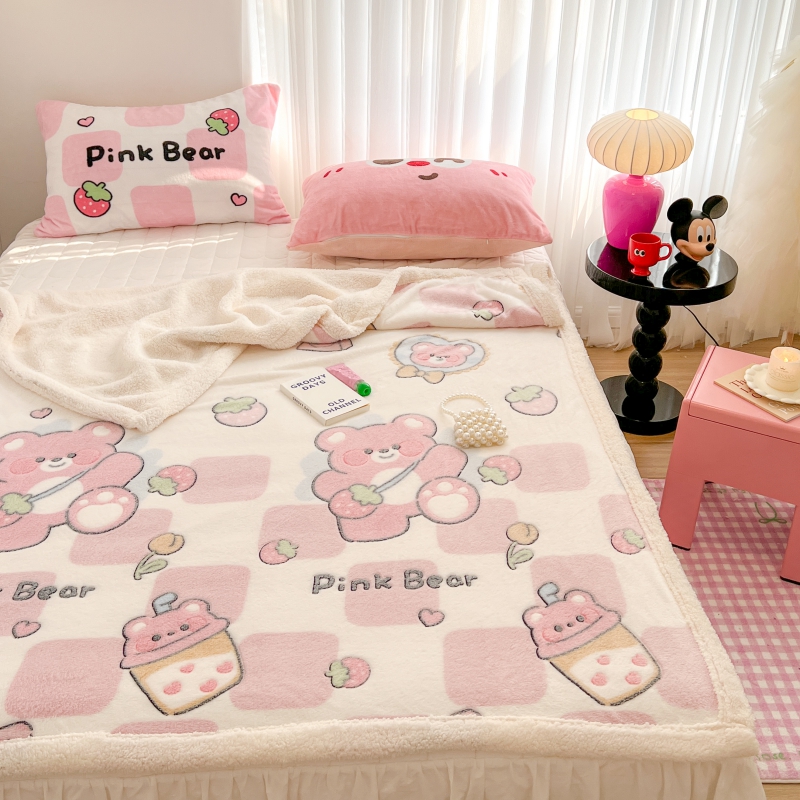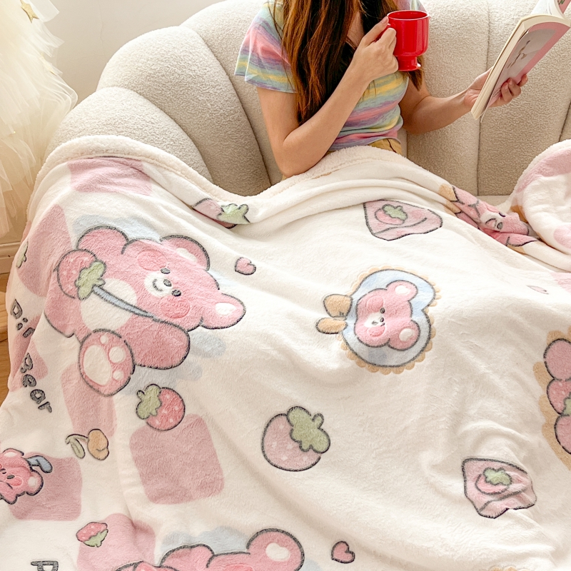 顾里家纺 2023新款ins韩风∙雪花立体羊羔绒毯 草莓熊仔