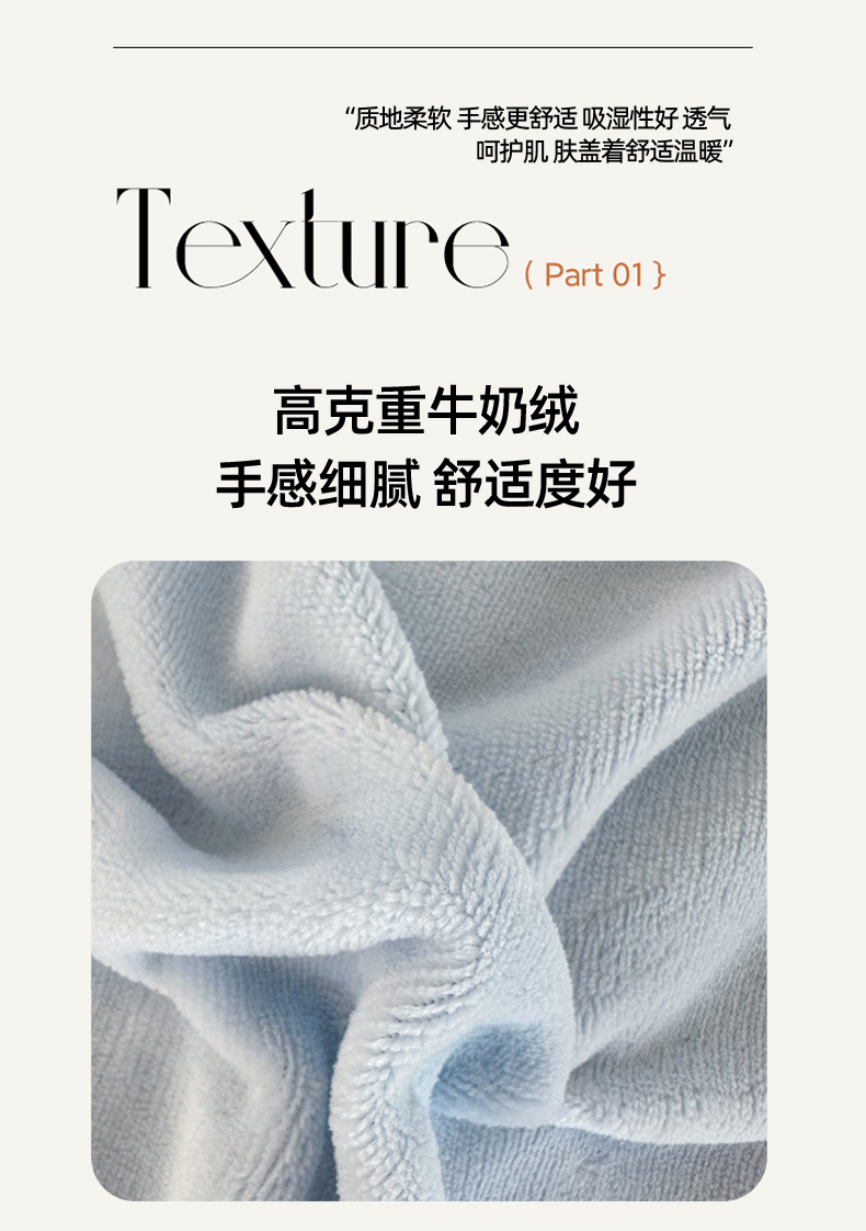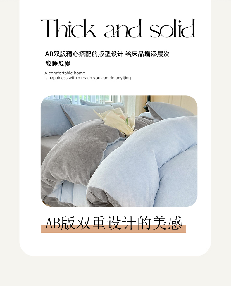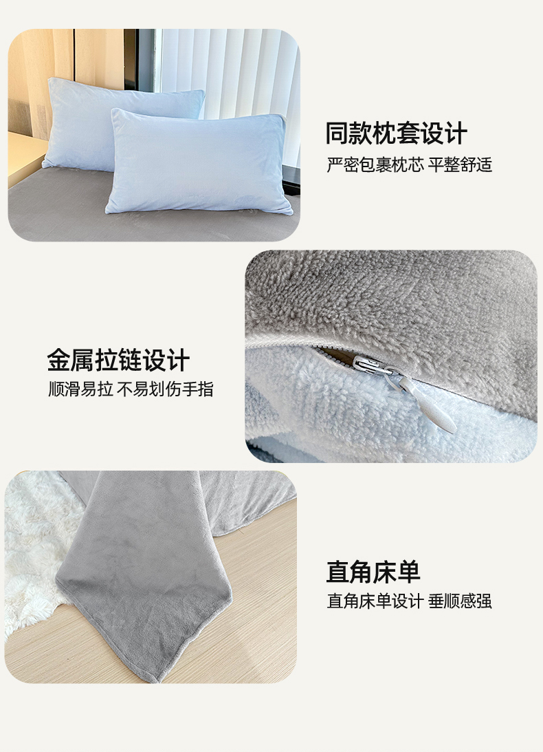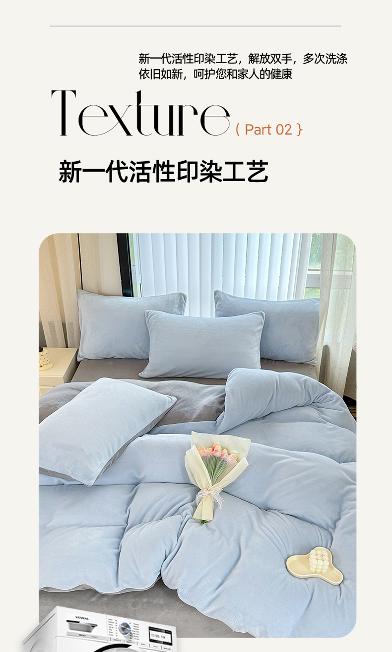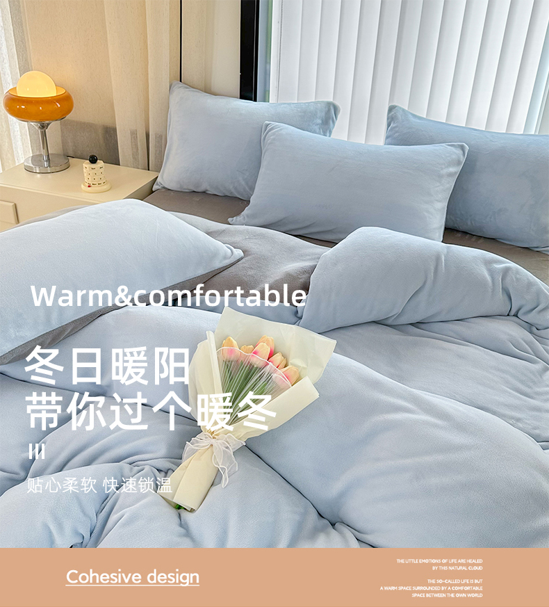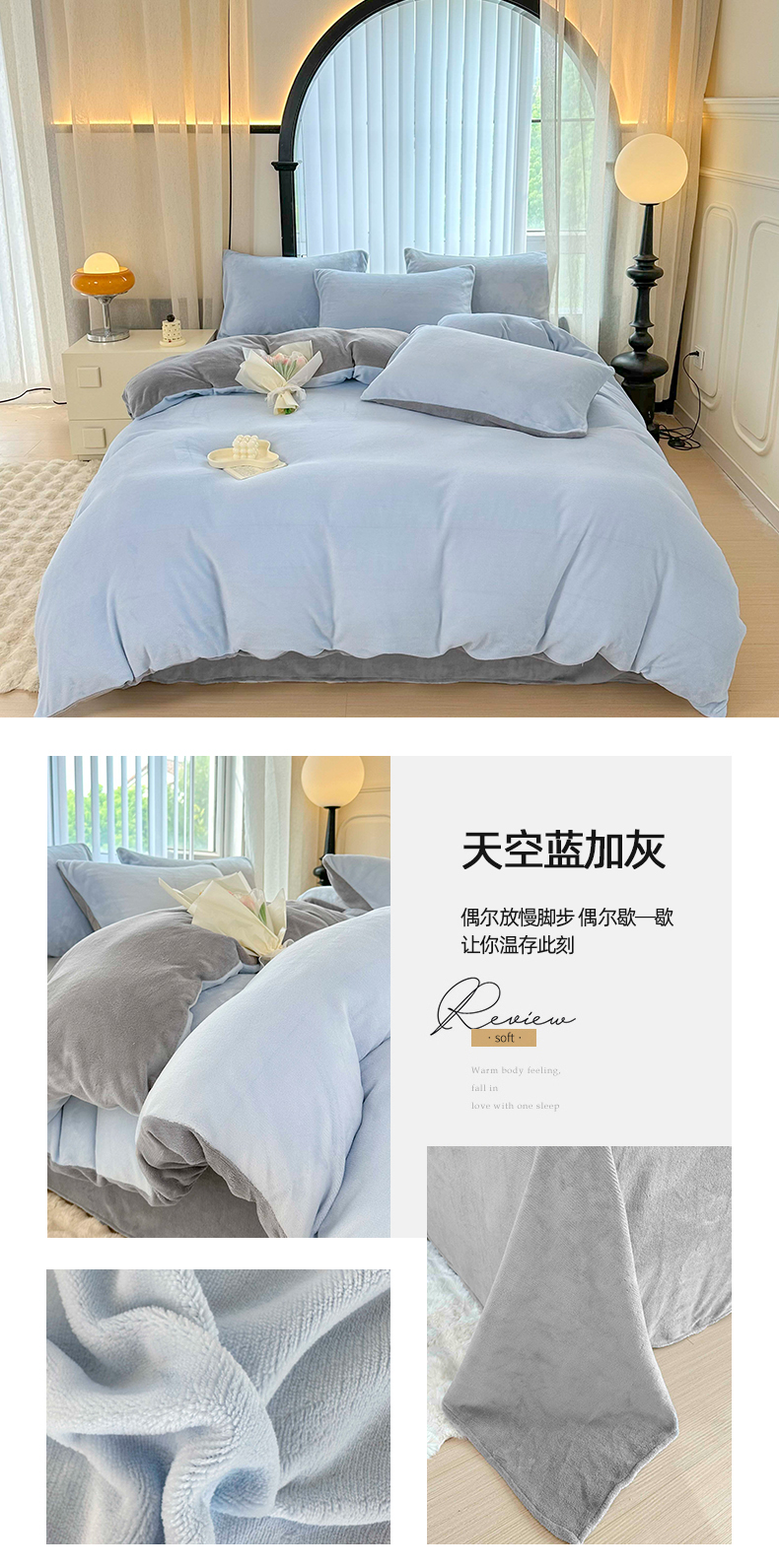 商品名称:迷仙巢家纺 2023新款双拼牛奶绒四件套 天空蓝加灰