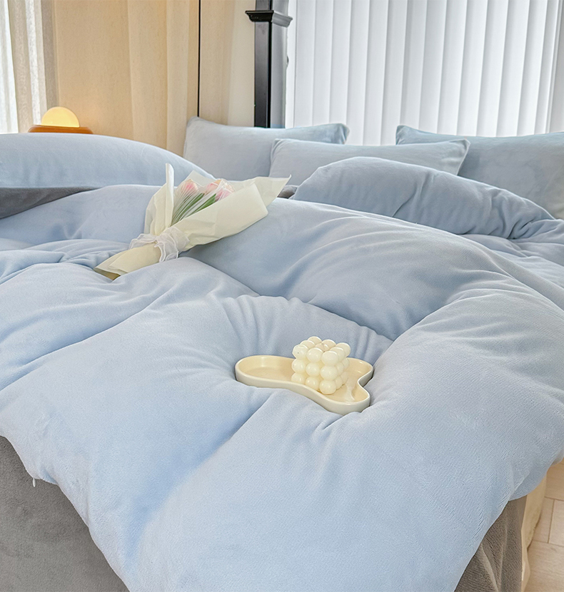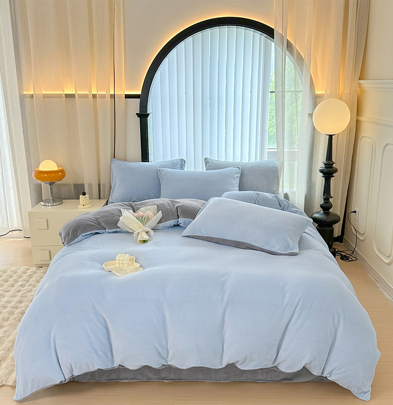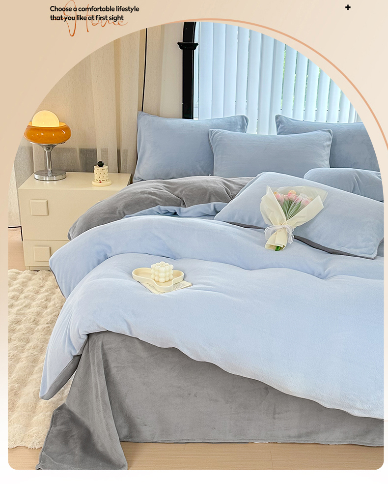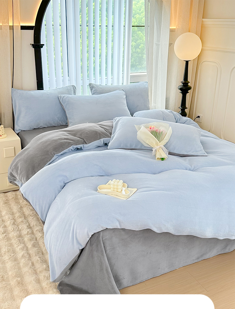 迷仙巢家纺 2023新款双拼牛奶绒四件套 天空蓝加灰