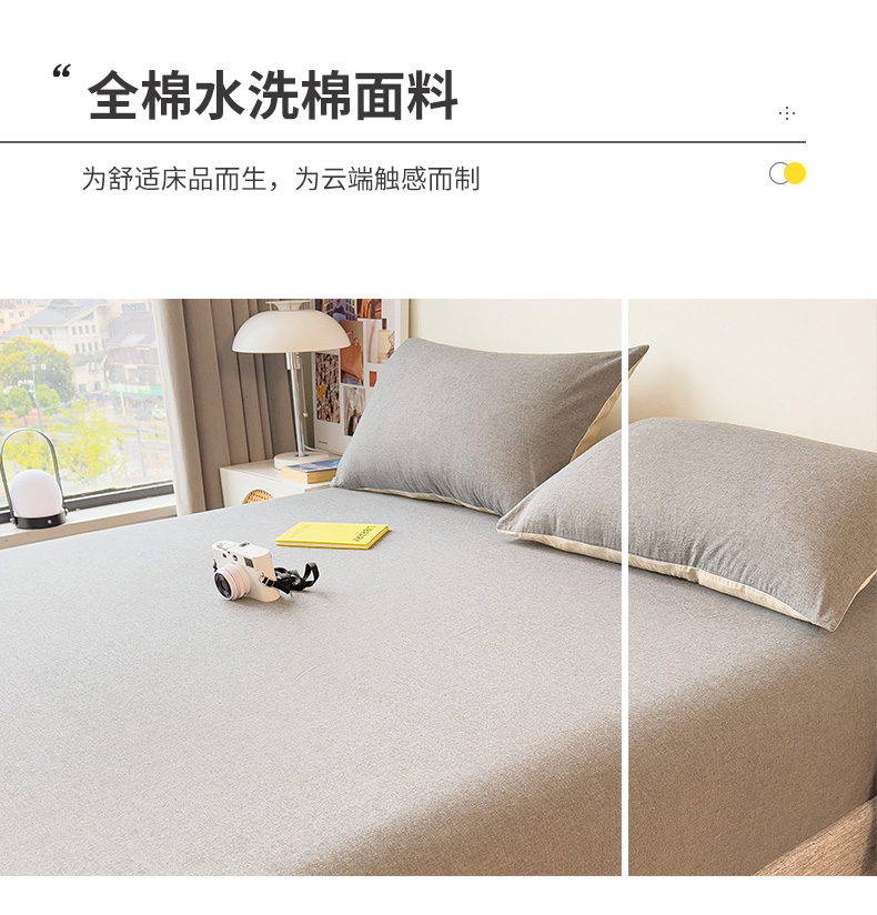 • 91家纺网 家纺一手货源 找家纺 芃成家纺 2023新款全棉水洗棉单床笠 高级灰