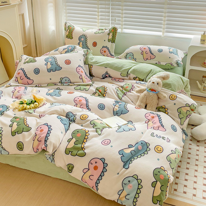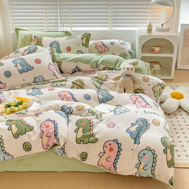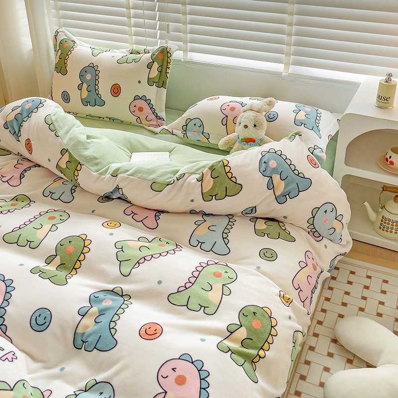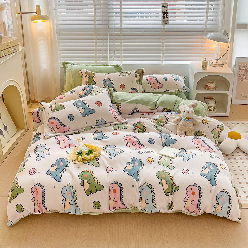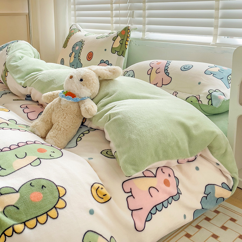 乐童2024新款吊边款牛奶绒四件套 恐龙家族