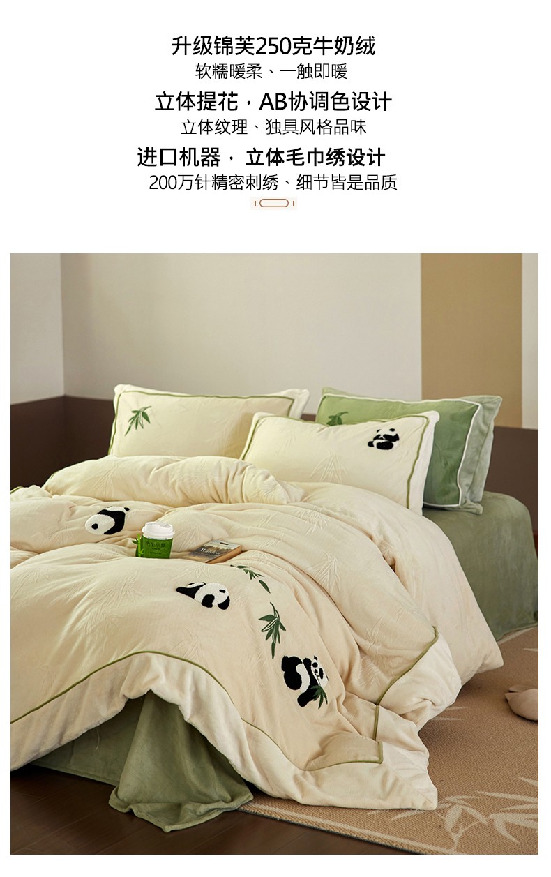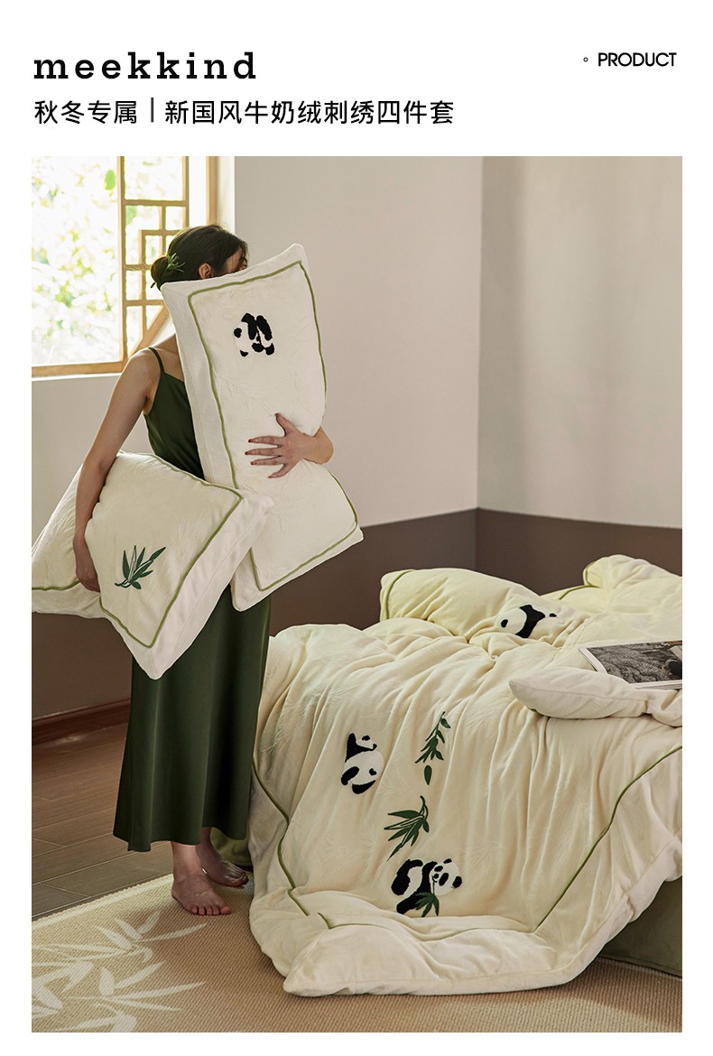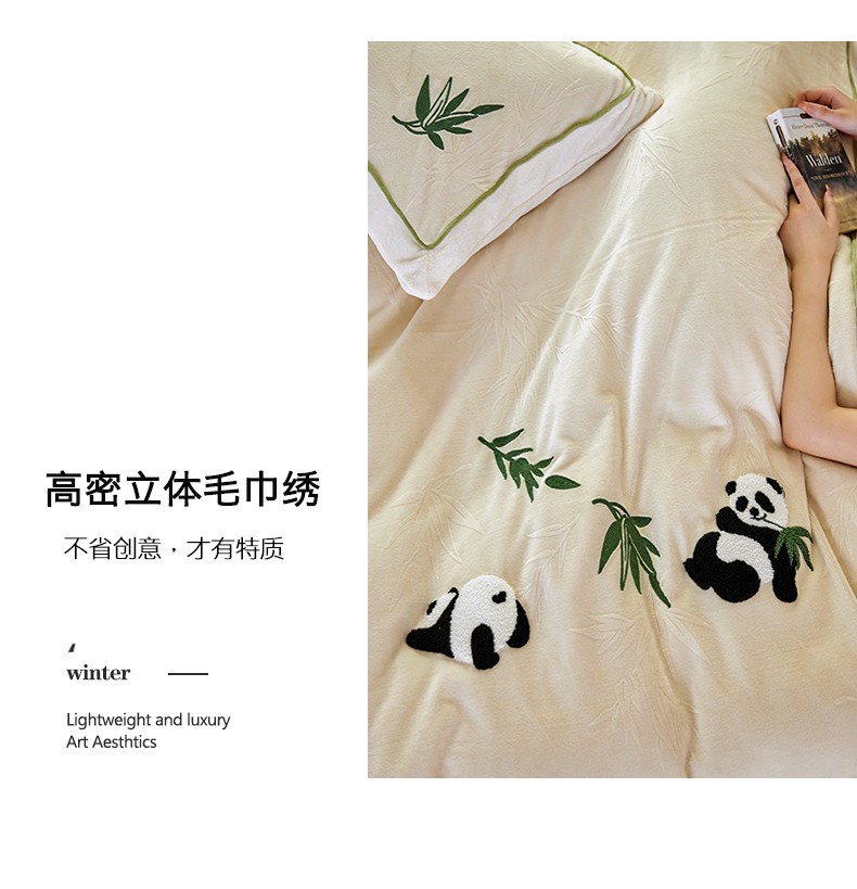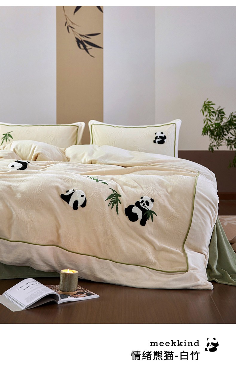 当前位置: 91家纺网 > 商品网购 > 床品套件 > 四件套 > 牛奶绒四件套 > 安莱生活 2023专版锦芙牛奶绒毛巾绣四件套-情绪熊猫款-国风风格图 情绪熊猫-白竹