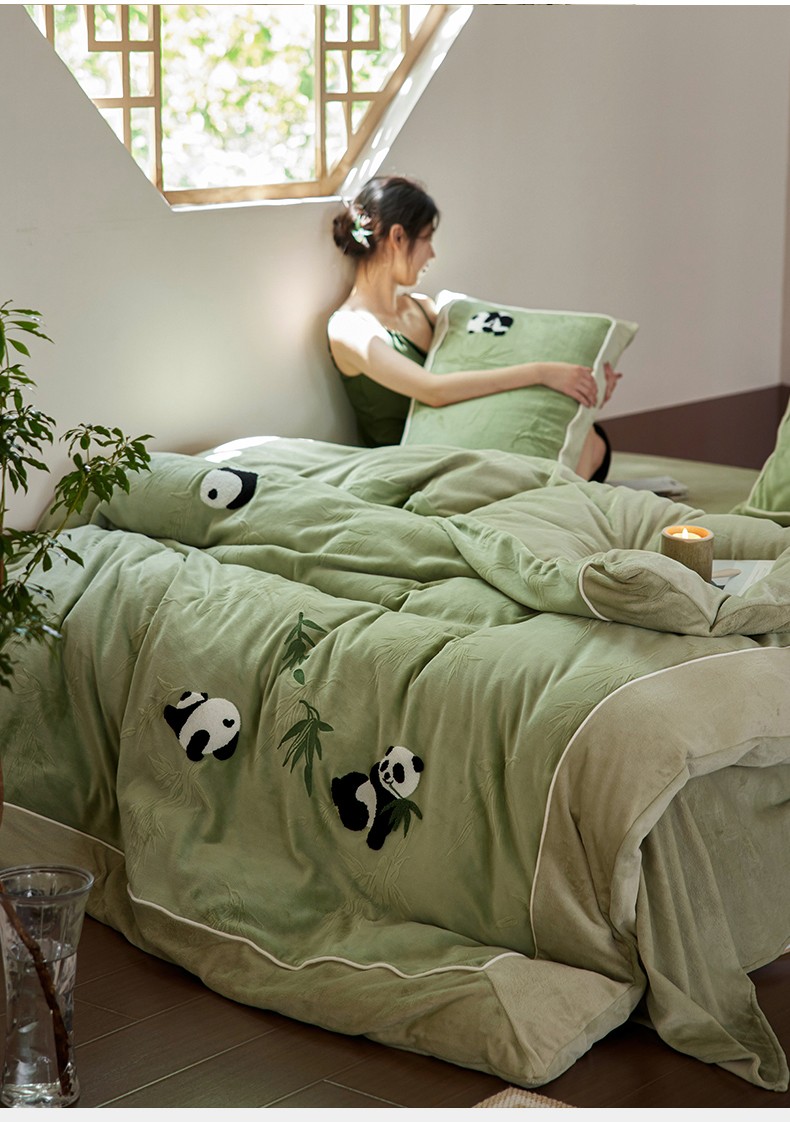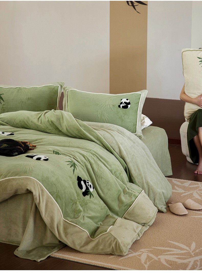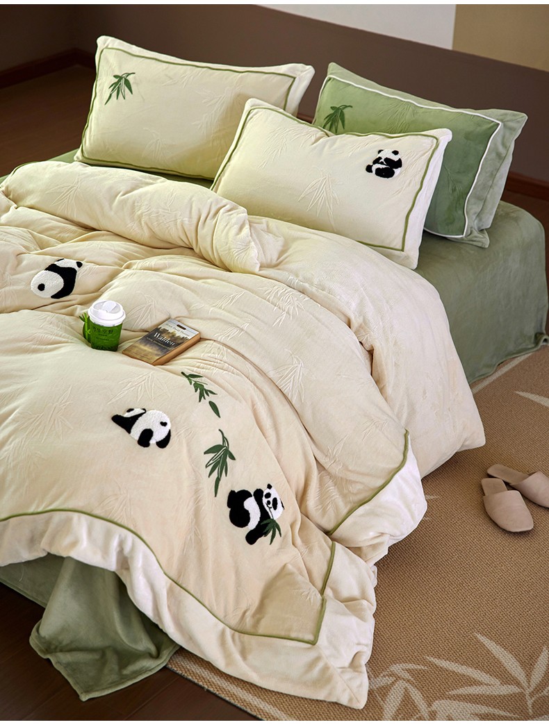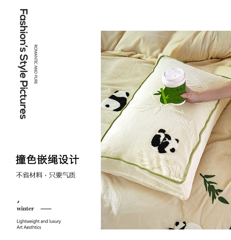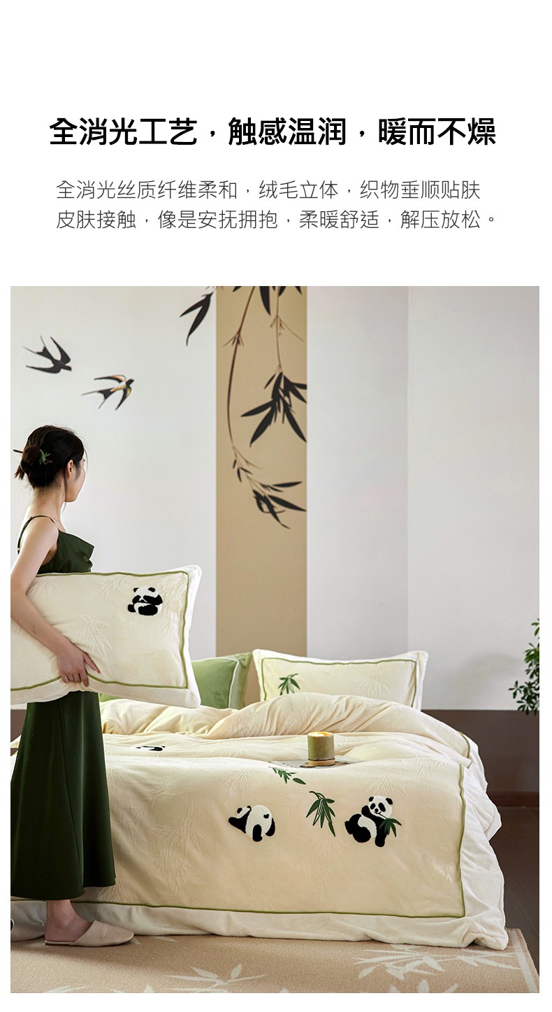 当前位置: 91家纺网 > 商品网购 > 床品套件 > 四件套 > 牛奶绒四件套 > 安莱生活 2023专版锦芙牛奶绒毛巾绣四件套-情绪熊猫款-国风风格图 情绪熊猫-白竹