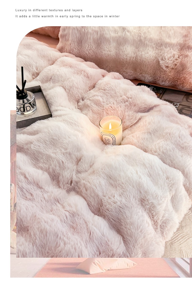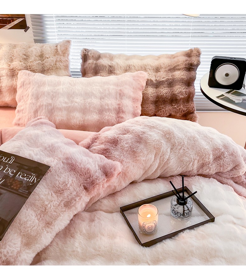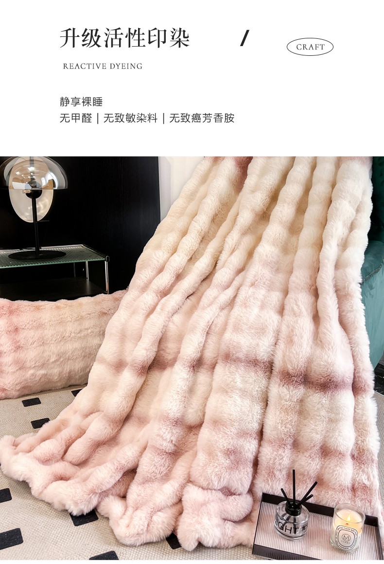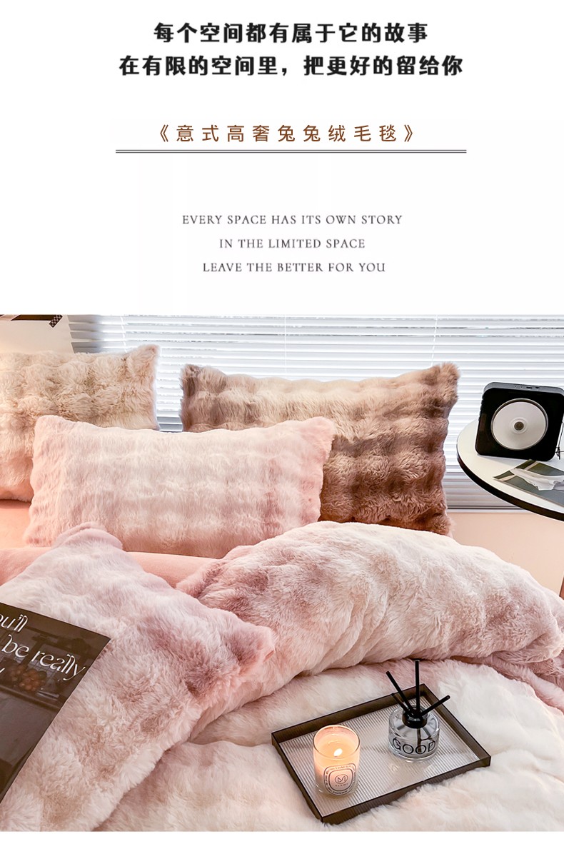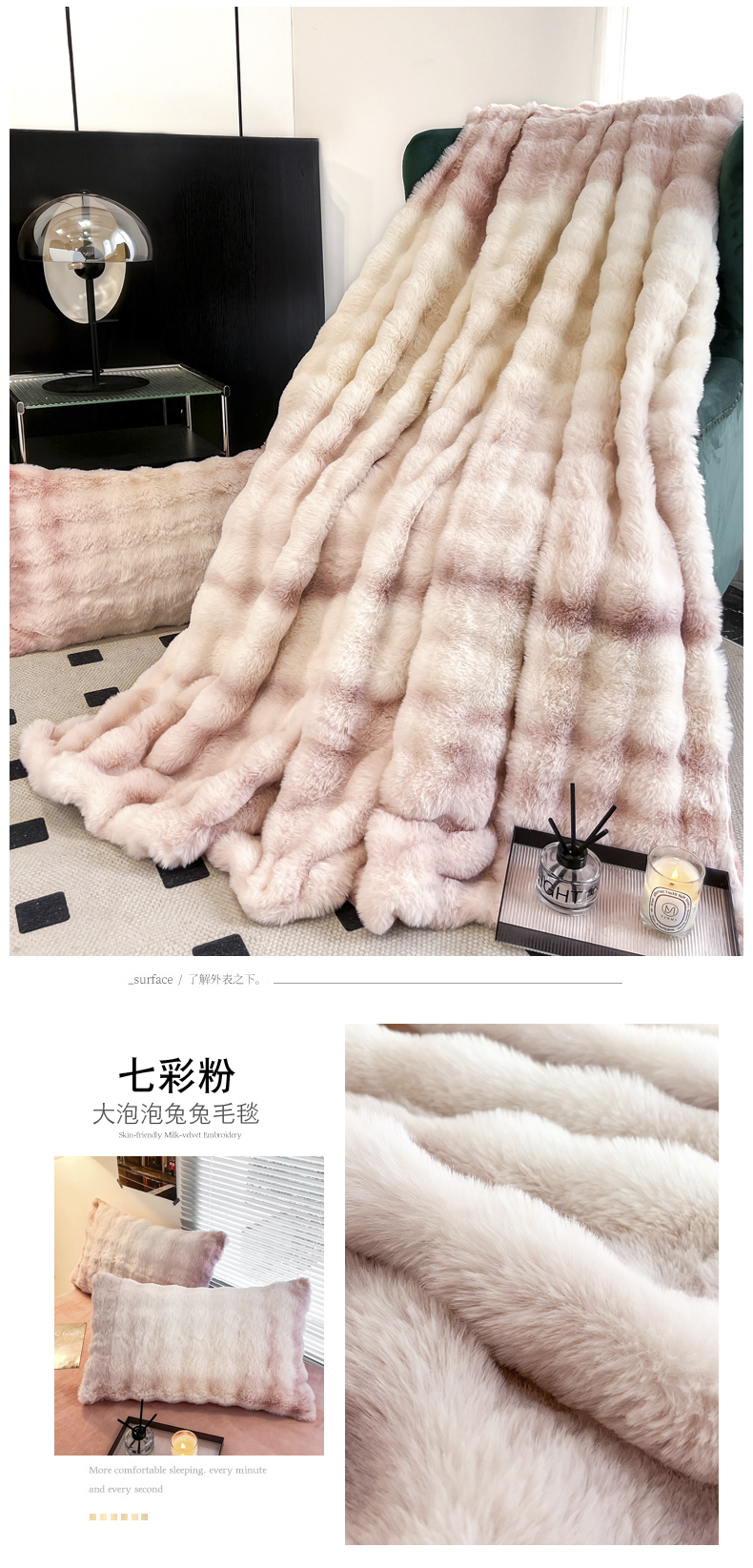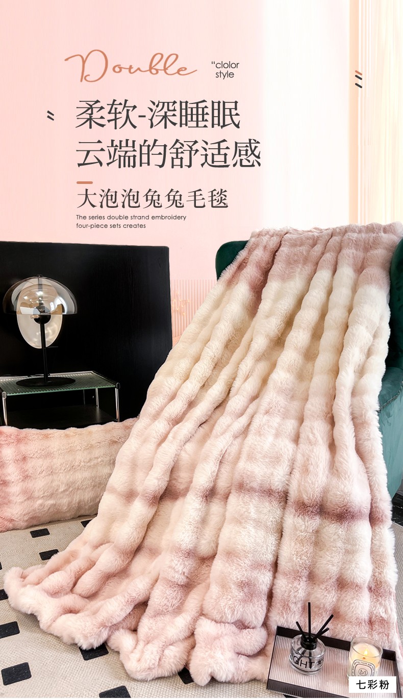 金爱家 2023新款七彩大泡泡兔兔绒兔毛绒毛毯 七彩粉
