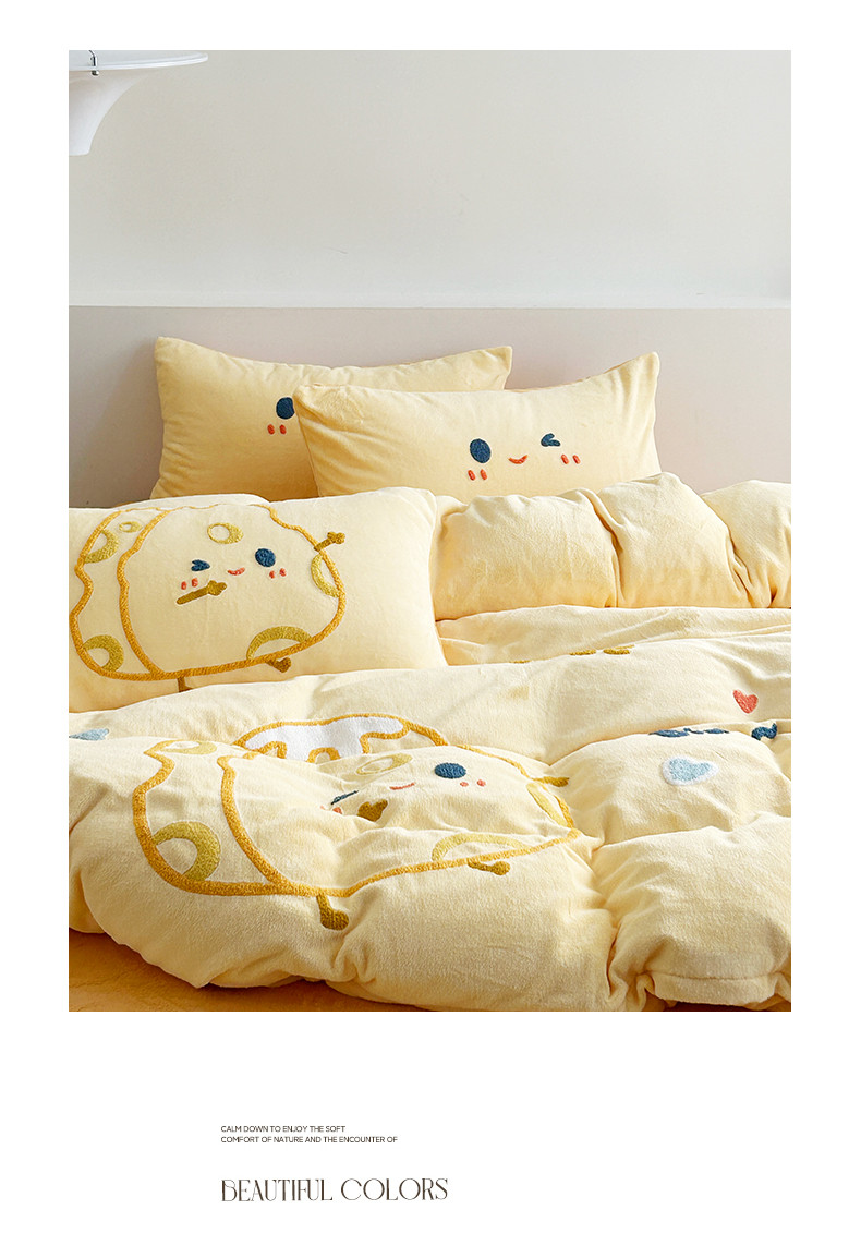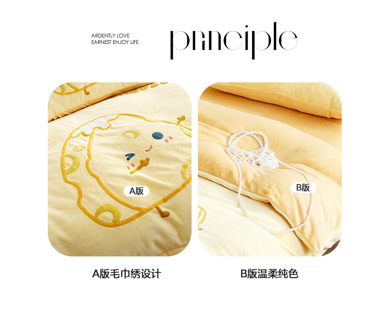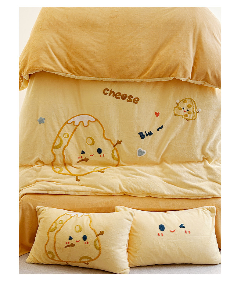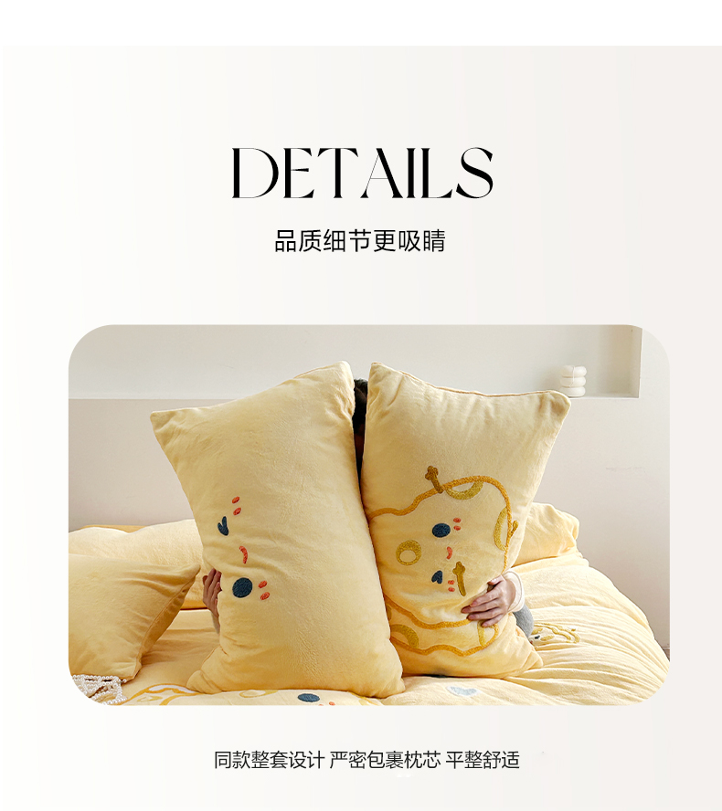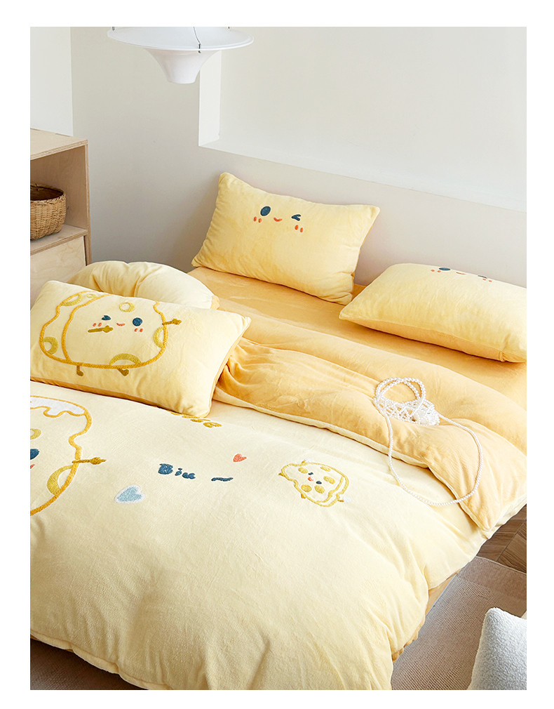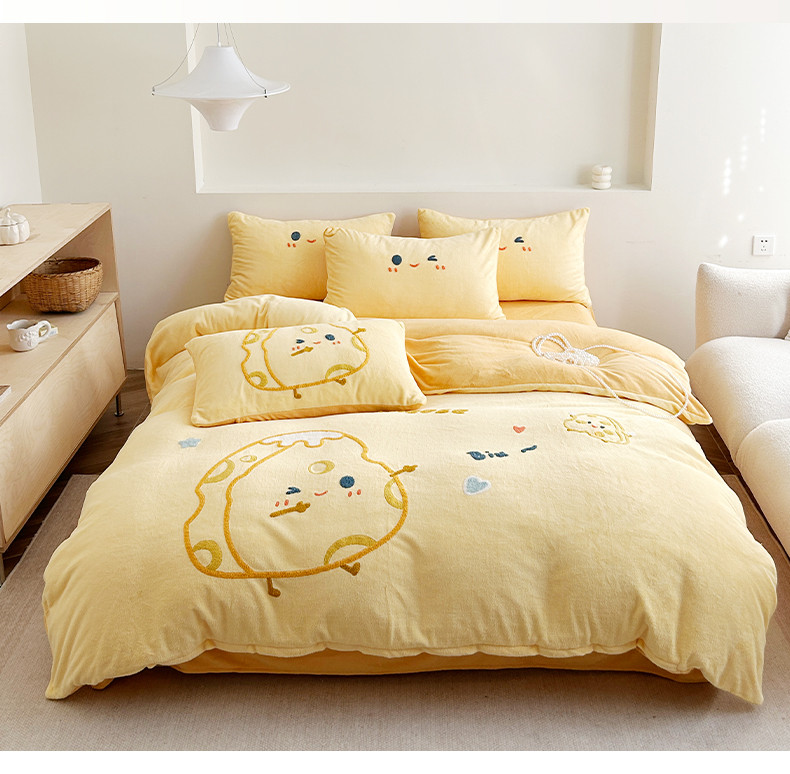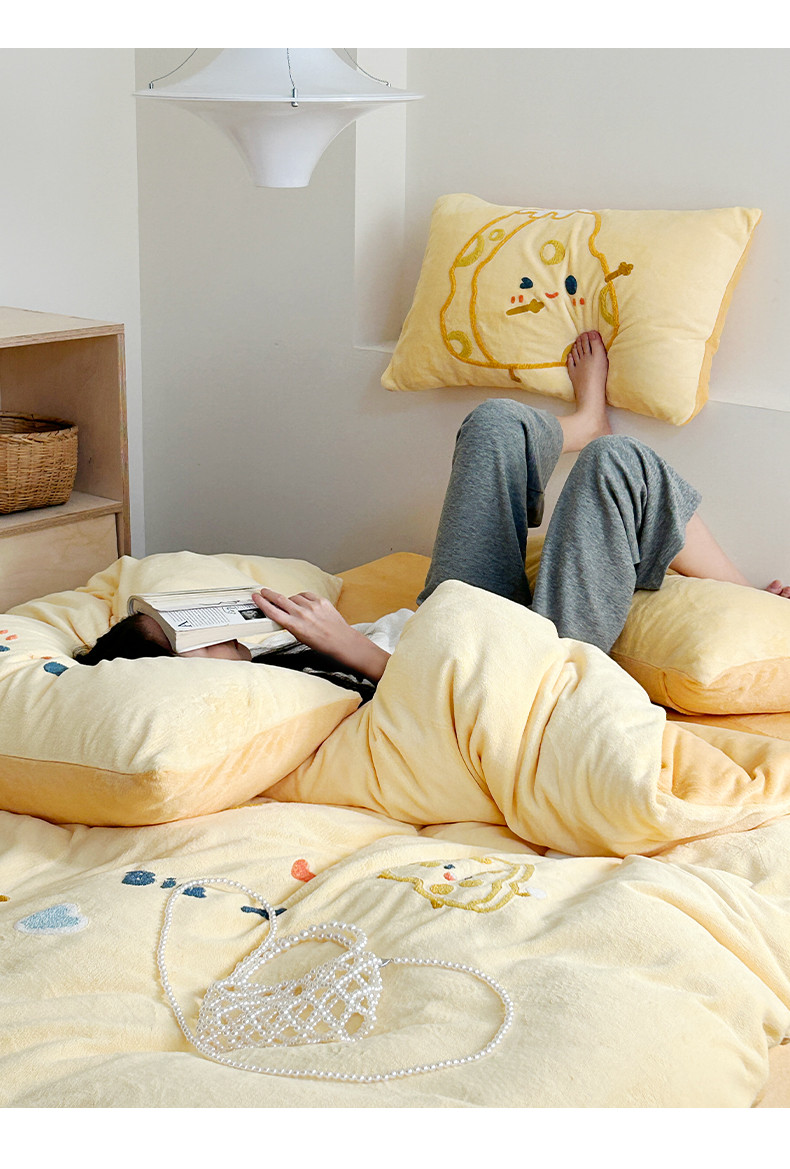当前位置: 91家纺网 > 商品网购 > 床品套件 > 四件套 > 牛奶绒四件套 > 眠屿家纺 2023新款加厚高克重牛奶绒单边四件套 调皮芝士