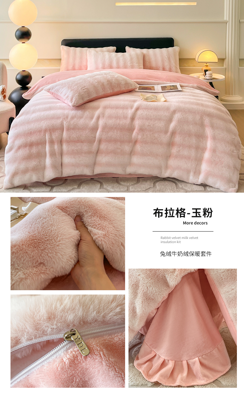 (总)慕晨 2023新款高克重兔兔绒大泡泡兔毛绒牛奶绒四件套直播爆款