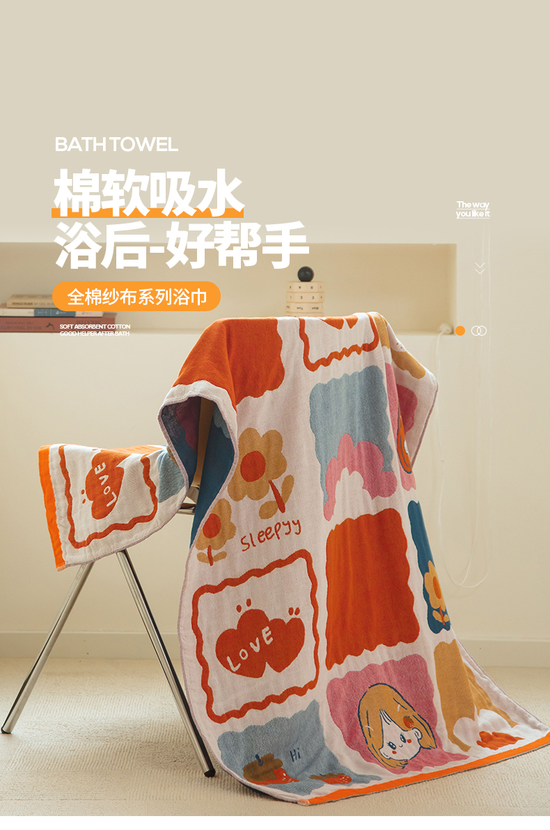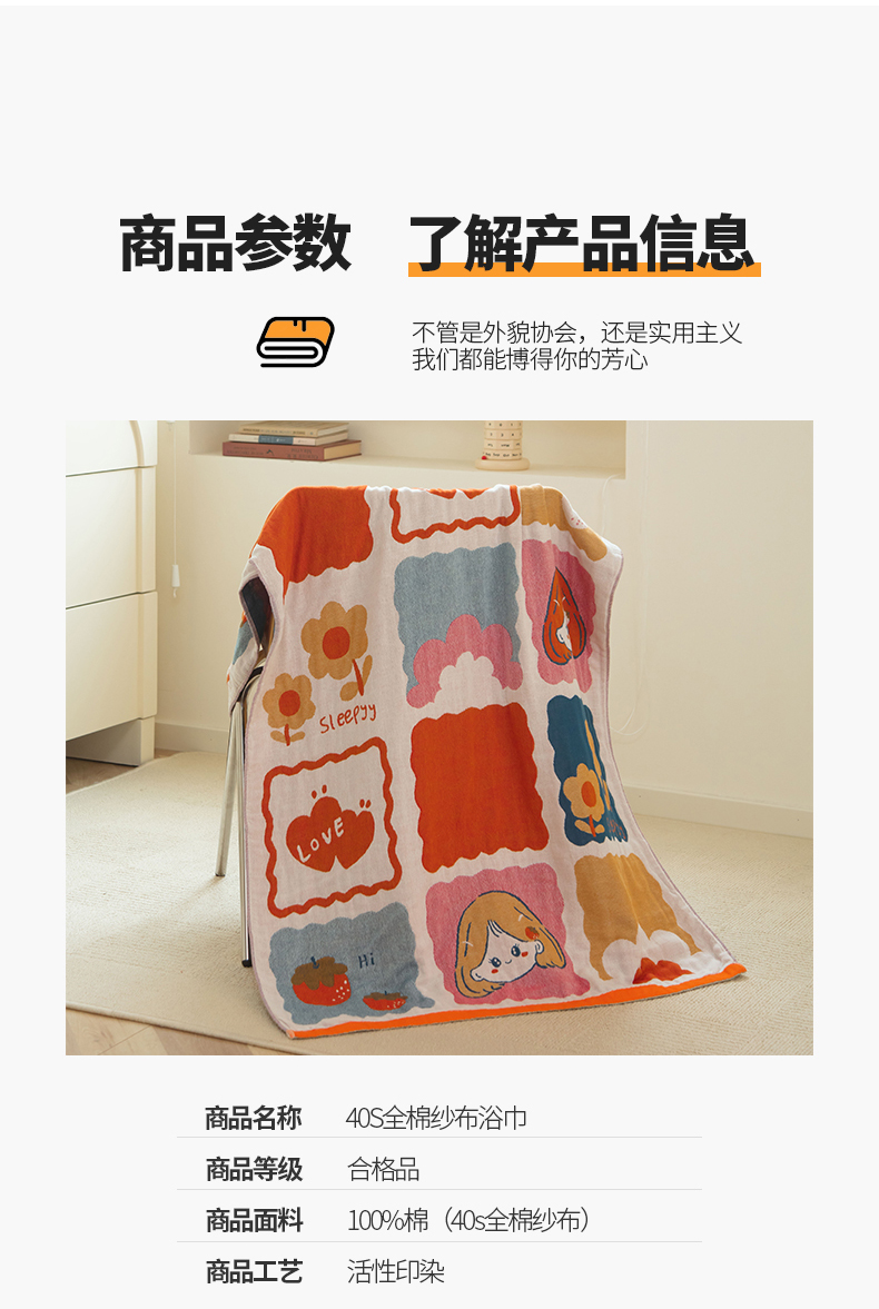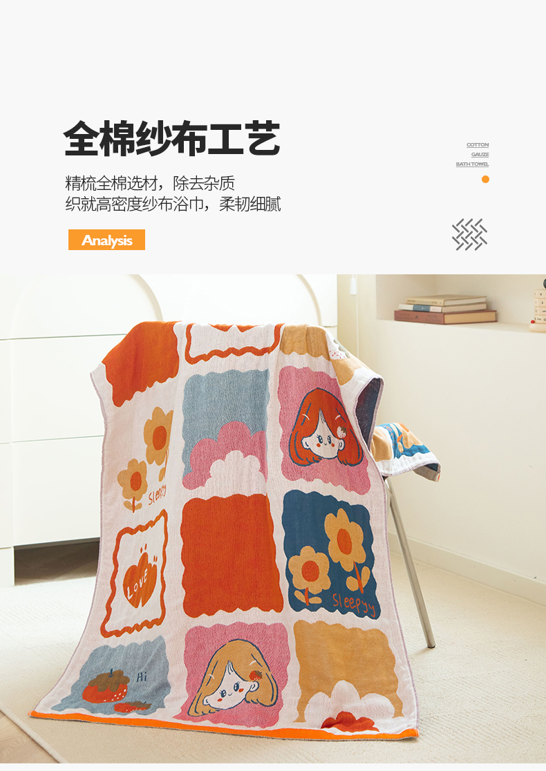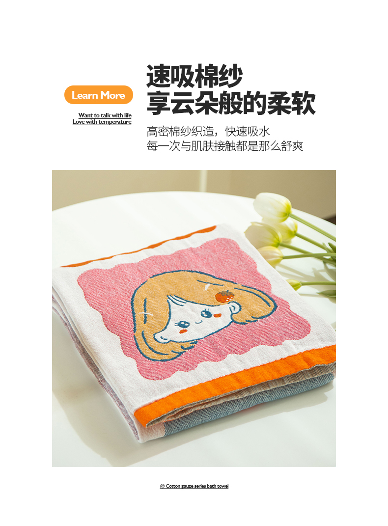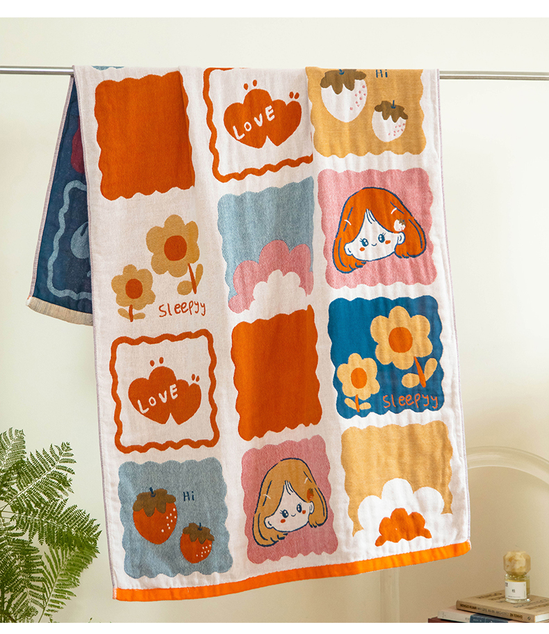 当前位置: 91家纺网 > 商品网购 > 居家日用 > 毛巾/浴巾/浴袍 > 浴巾 > 雯雨家纺 2023新款全棉卡通系列纱布浴巾 草莓女孩