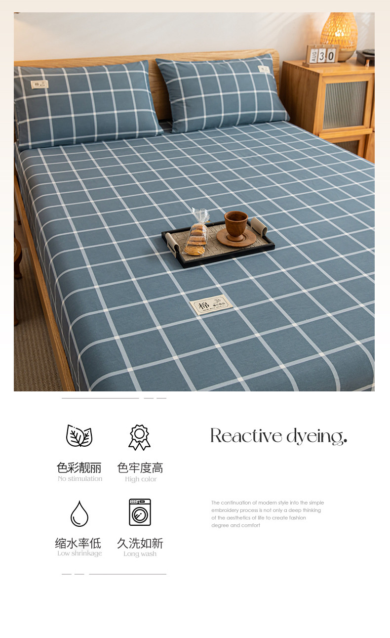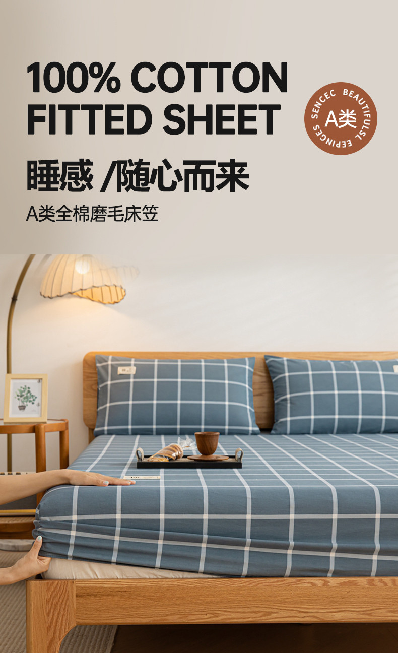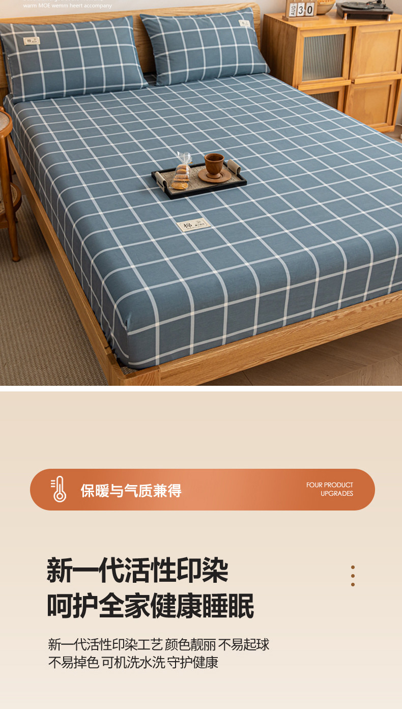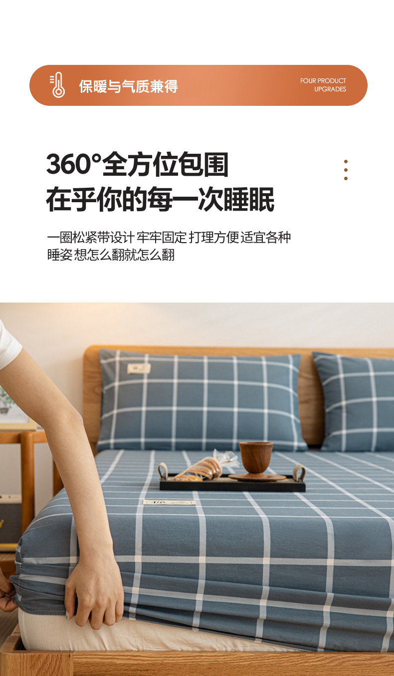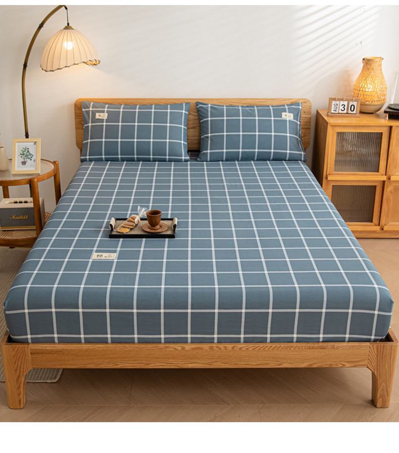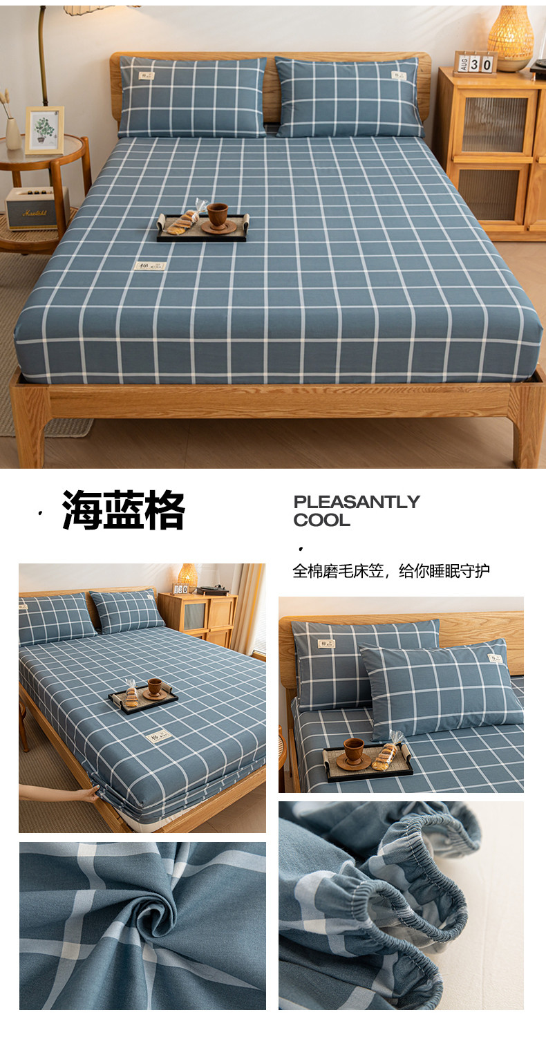 (总)恋人优选 2025新款A类全棉磨毛加厚床笠,宾利蓝,卡其,果绿,海蓝格,蓝大格,魅力黄,浅灰,浅蓝,浅蓝小格,少女粉