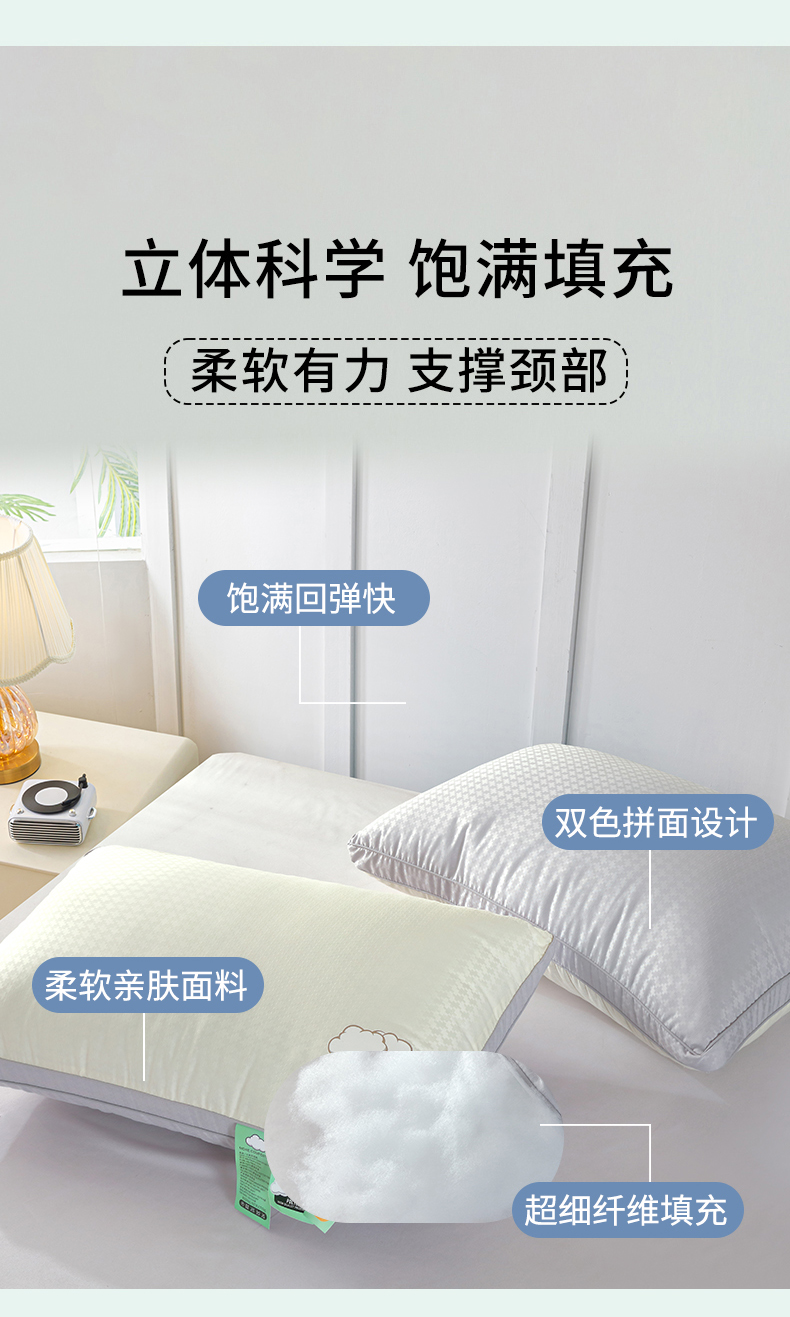 (总)大熊枕芯 2025新款A类云柔舒适value枕头枕芯,立体高枕,组合图仅供展示,单边中枕,决明子护颈枕,立体护颈枕