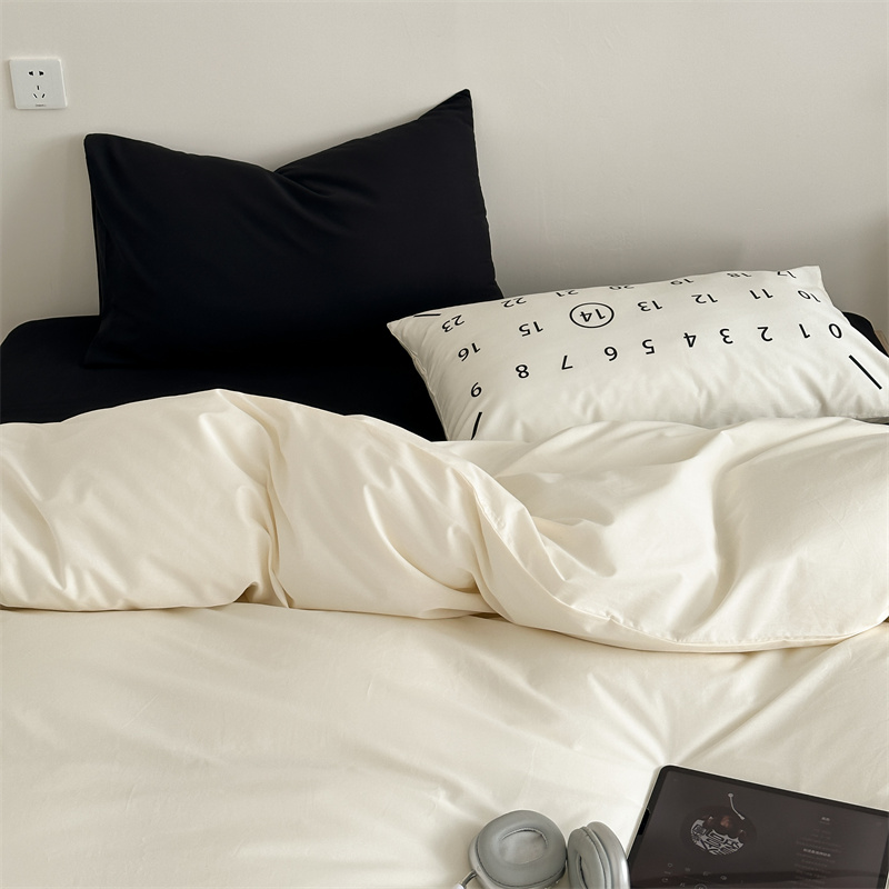 商品名称:桃喜 2024新款水洗棉纯色混搭四件套系列 黑白数字-棉