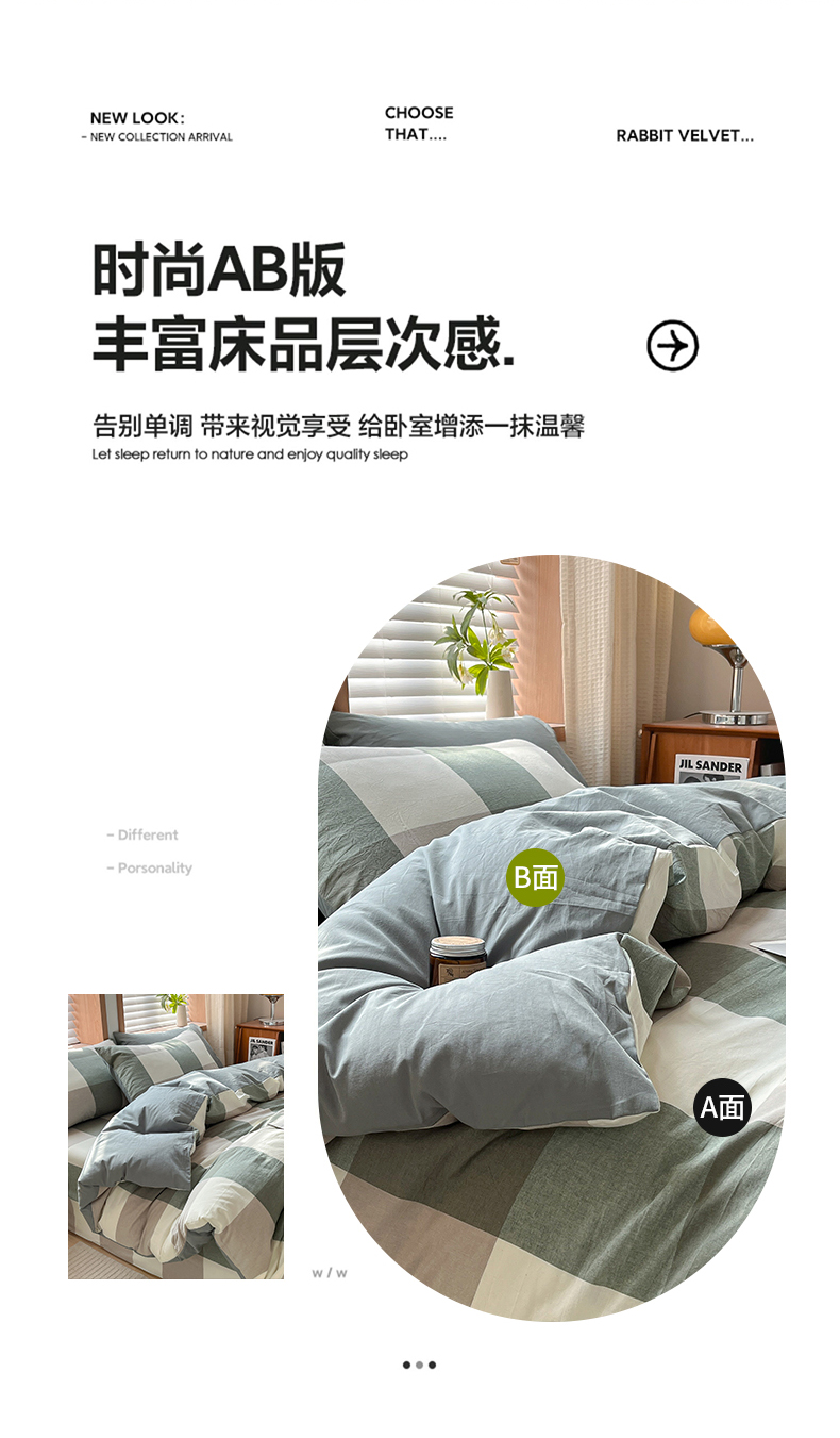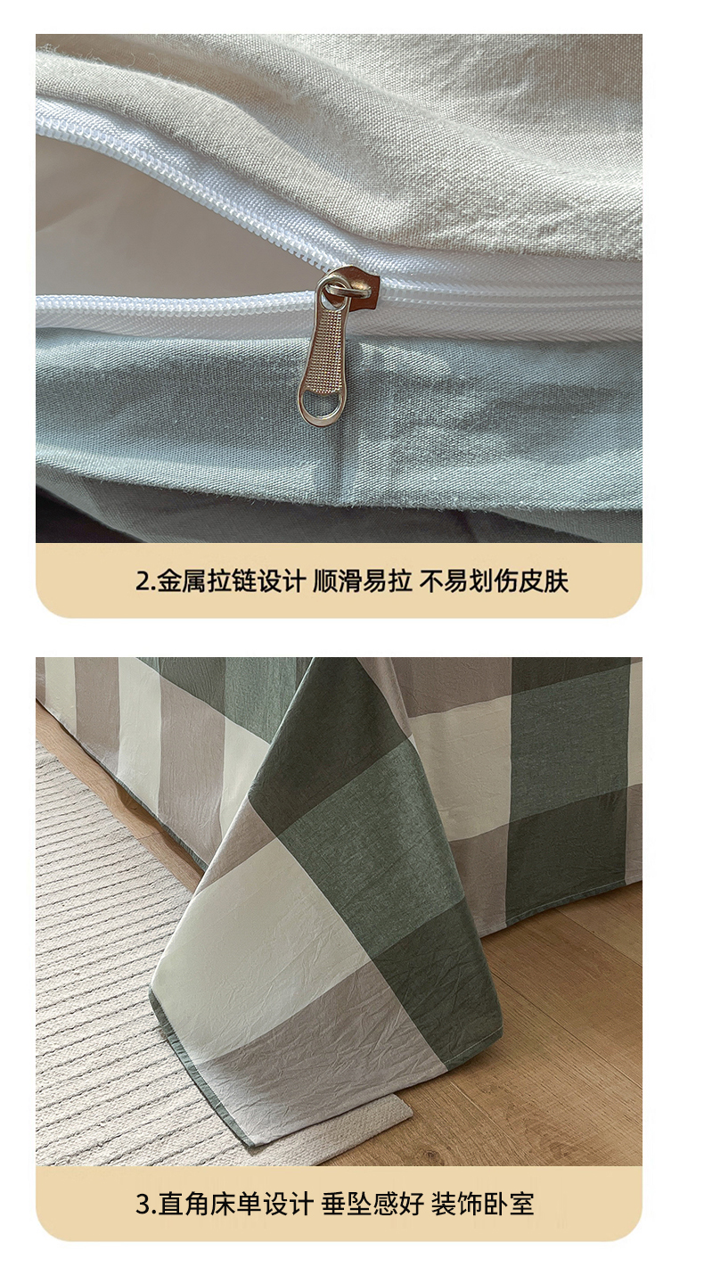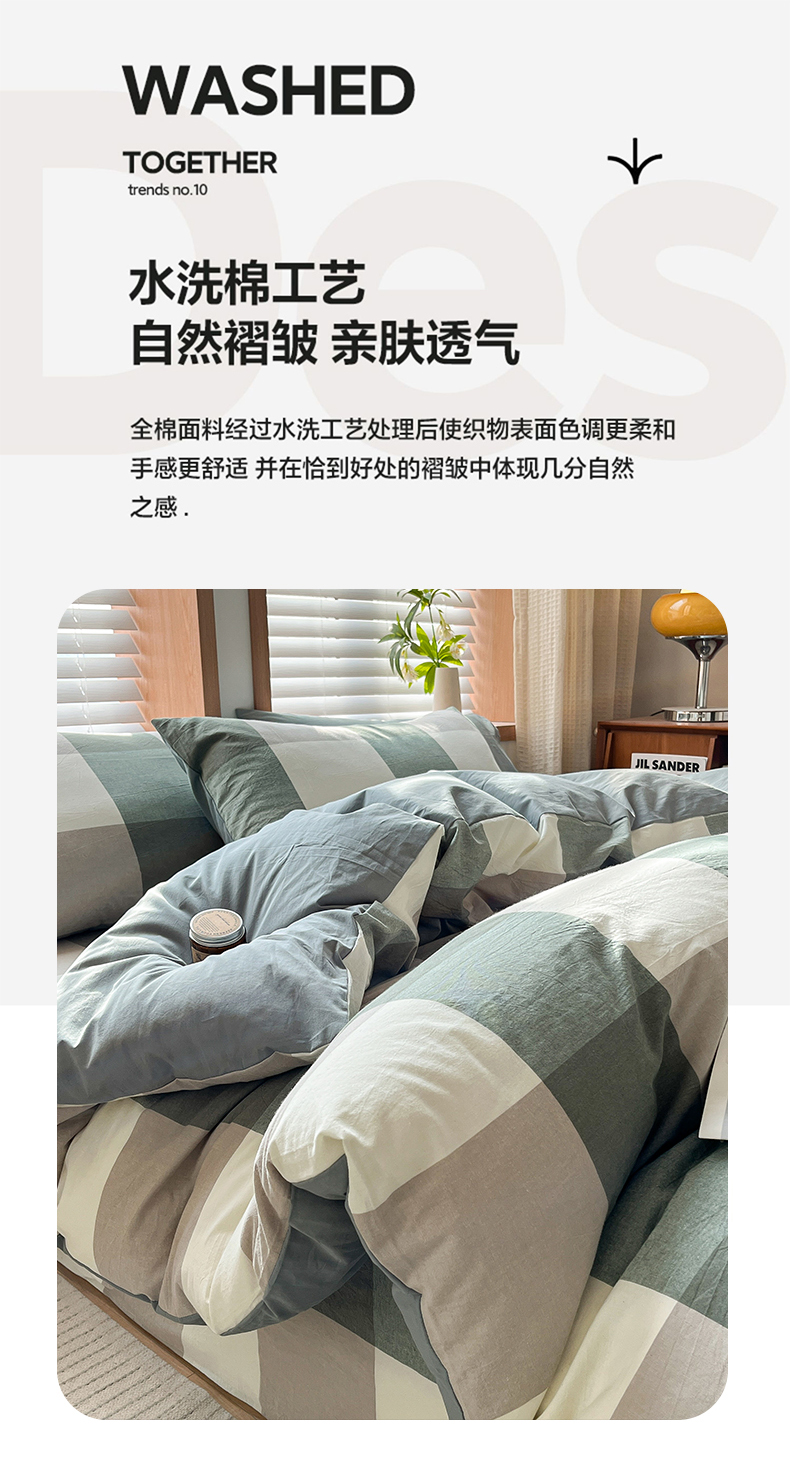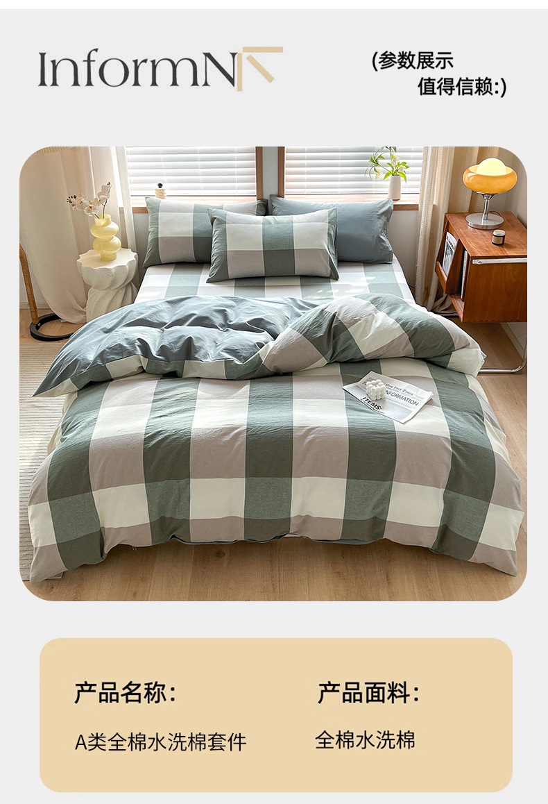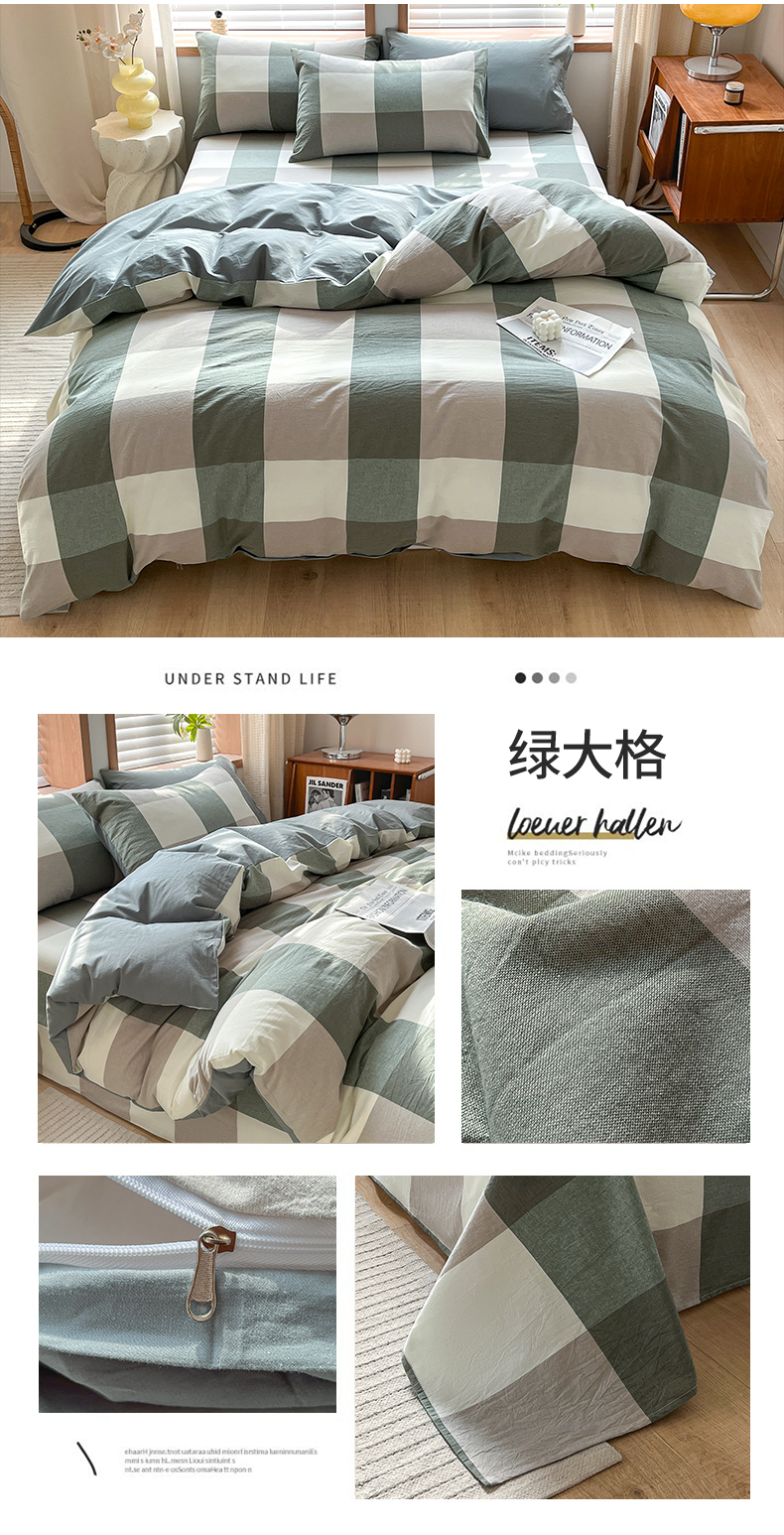 商品名称:启程家纺 2026新款全棉A类水洗棉多规格四件套单品-四件套 绿大格
