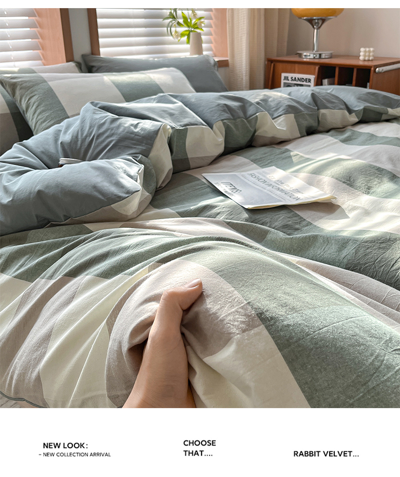 启程家纺 2026新款全棉A类水洗棉多规格四件套单品-四件套 绿大格